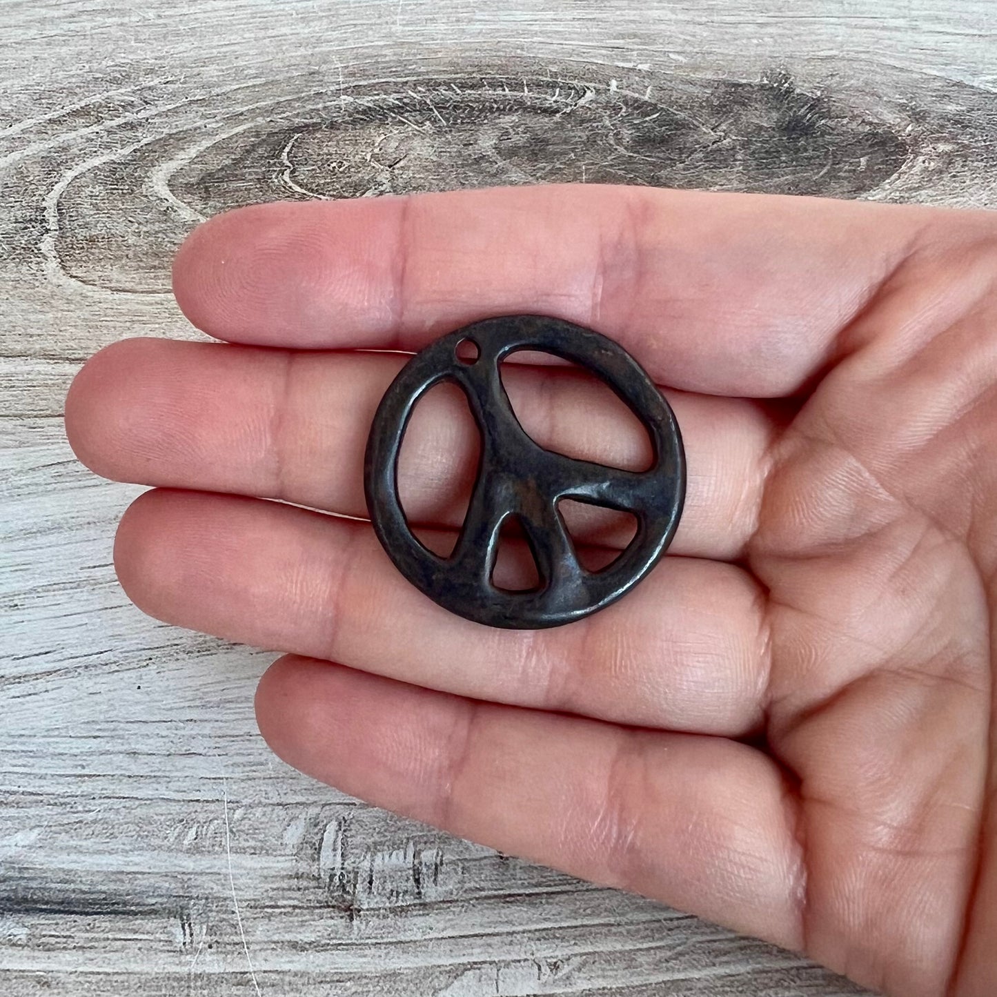 Spread love and positivity with this peace sign pendant. It's a fun and thoughtful touch for any jewelry creation, making it a great choice for earrings, necklaces, or bracelets.