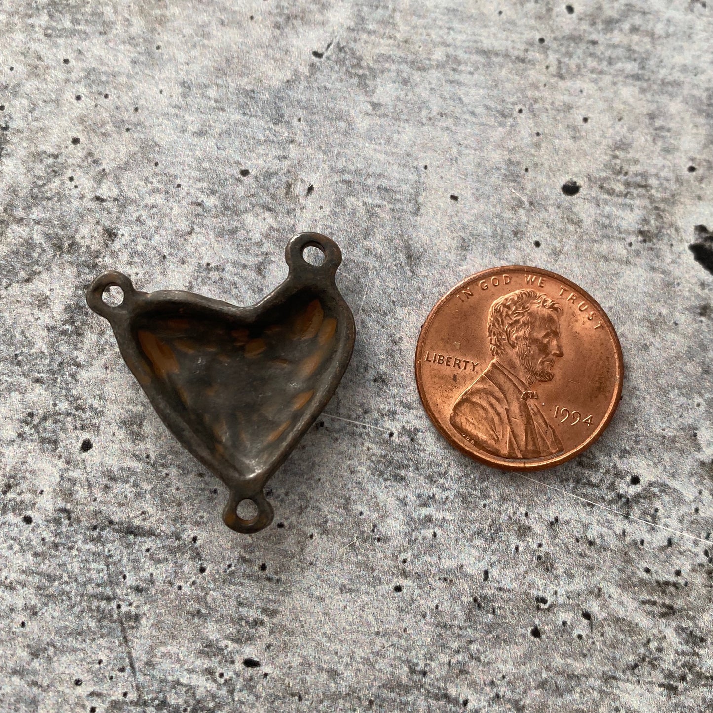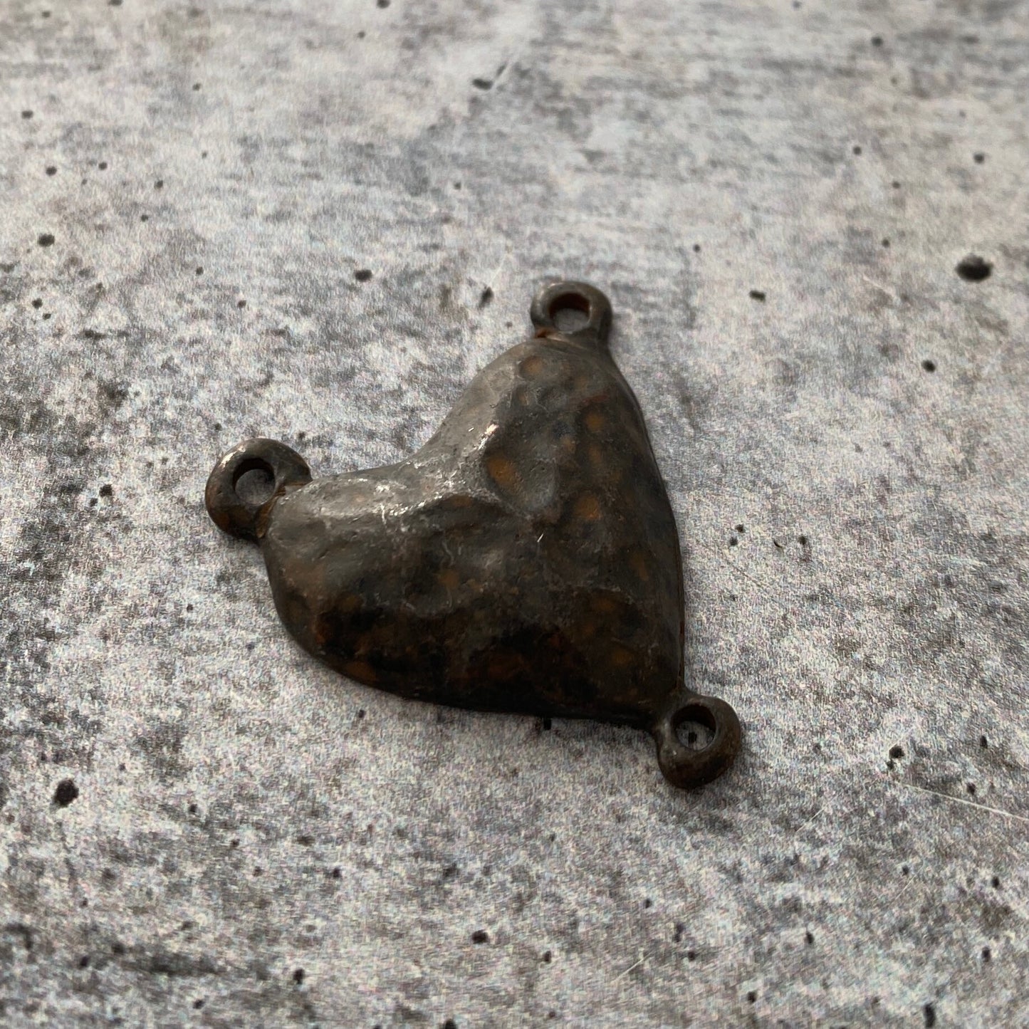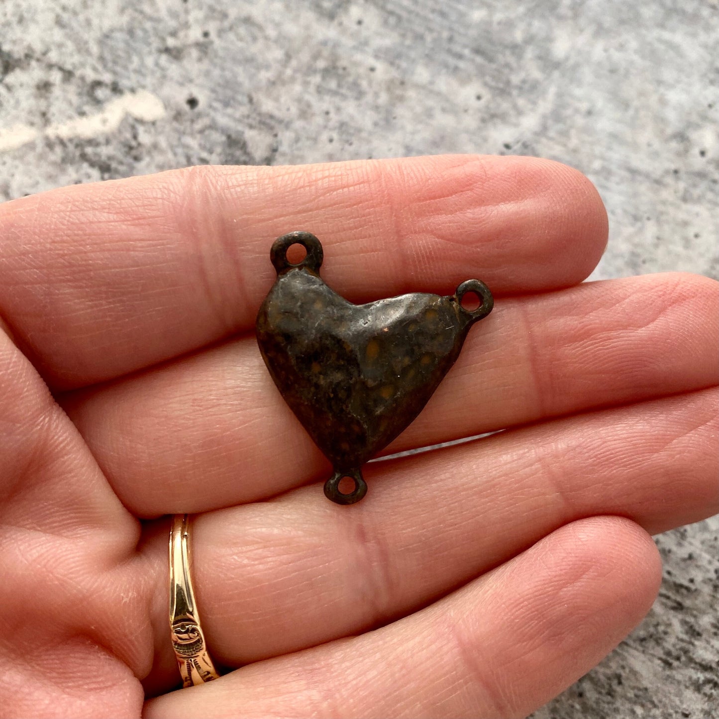 Puffy Hammered Heart Connector, Rustic Brown, Rosary Centerpiece, Heart Pendant, 3 Way Connector, BR-6147