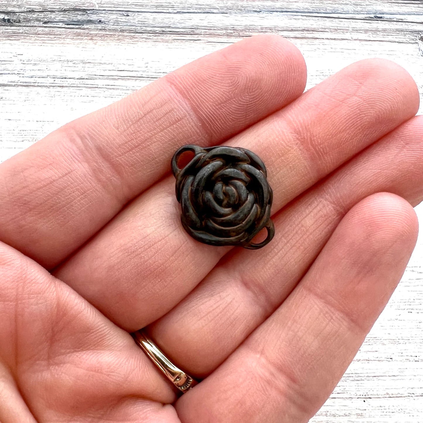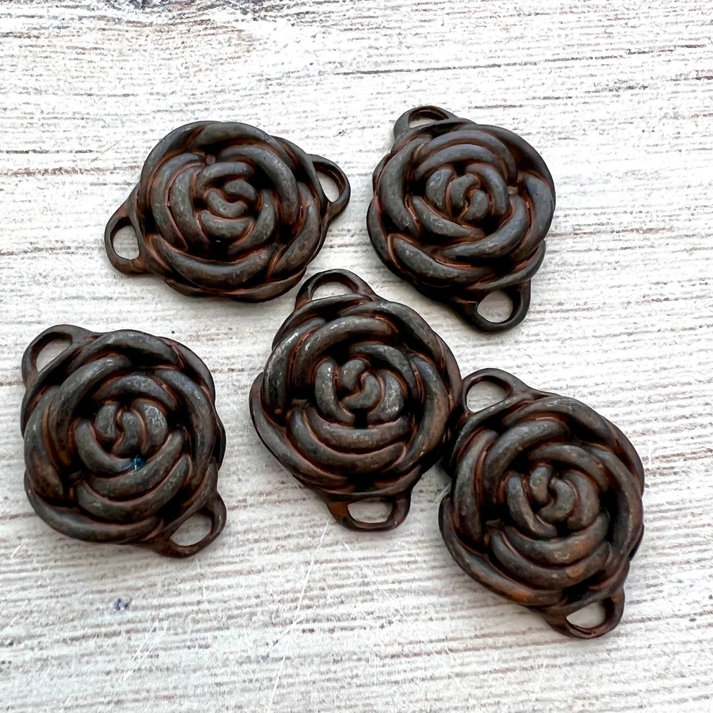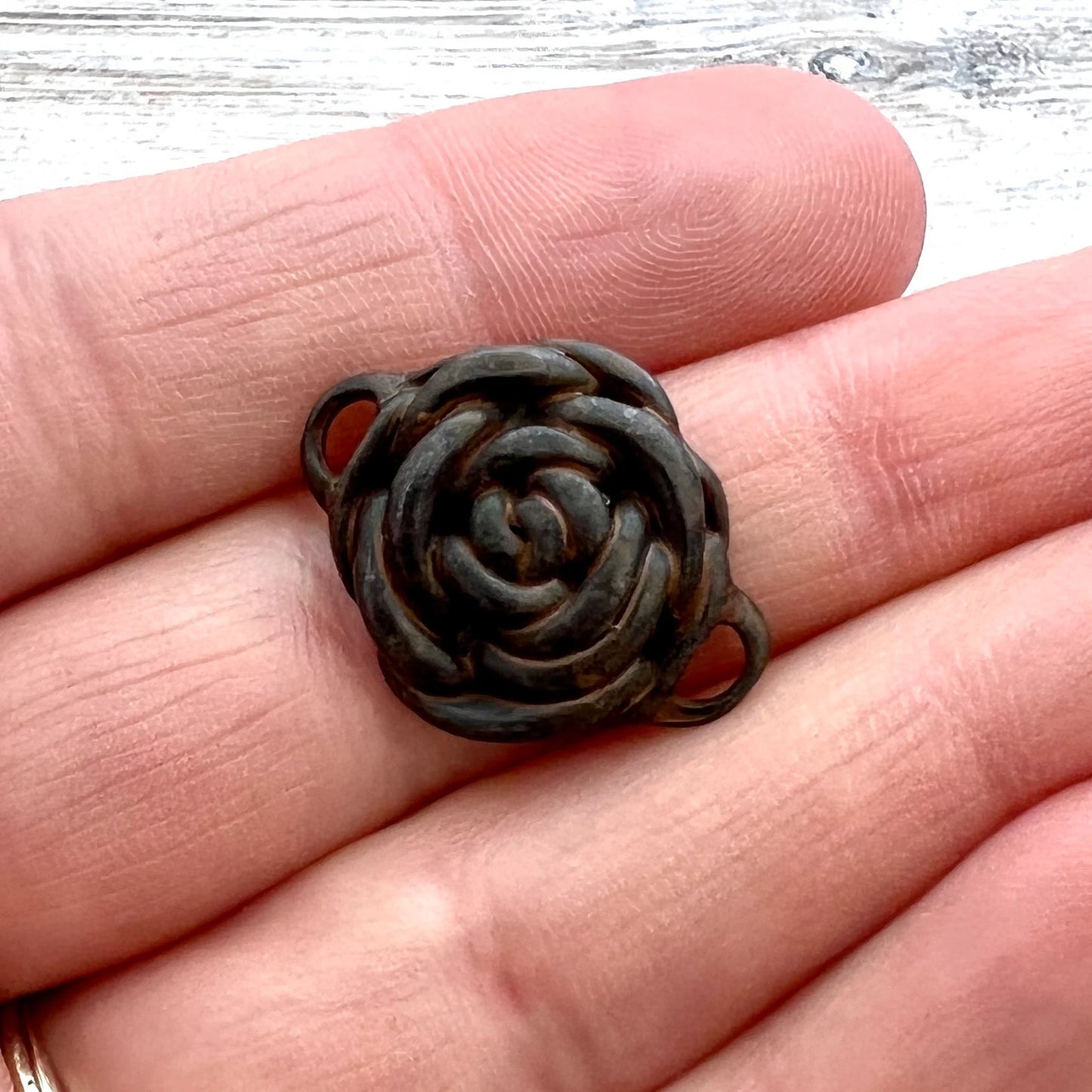 This large rose connector makes a statement in your designs. These have a nice weight to them but are not too heavy for larger earrings.