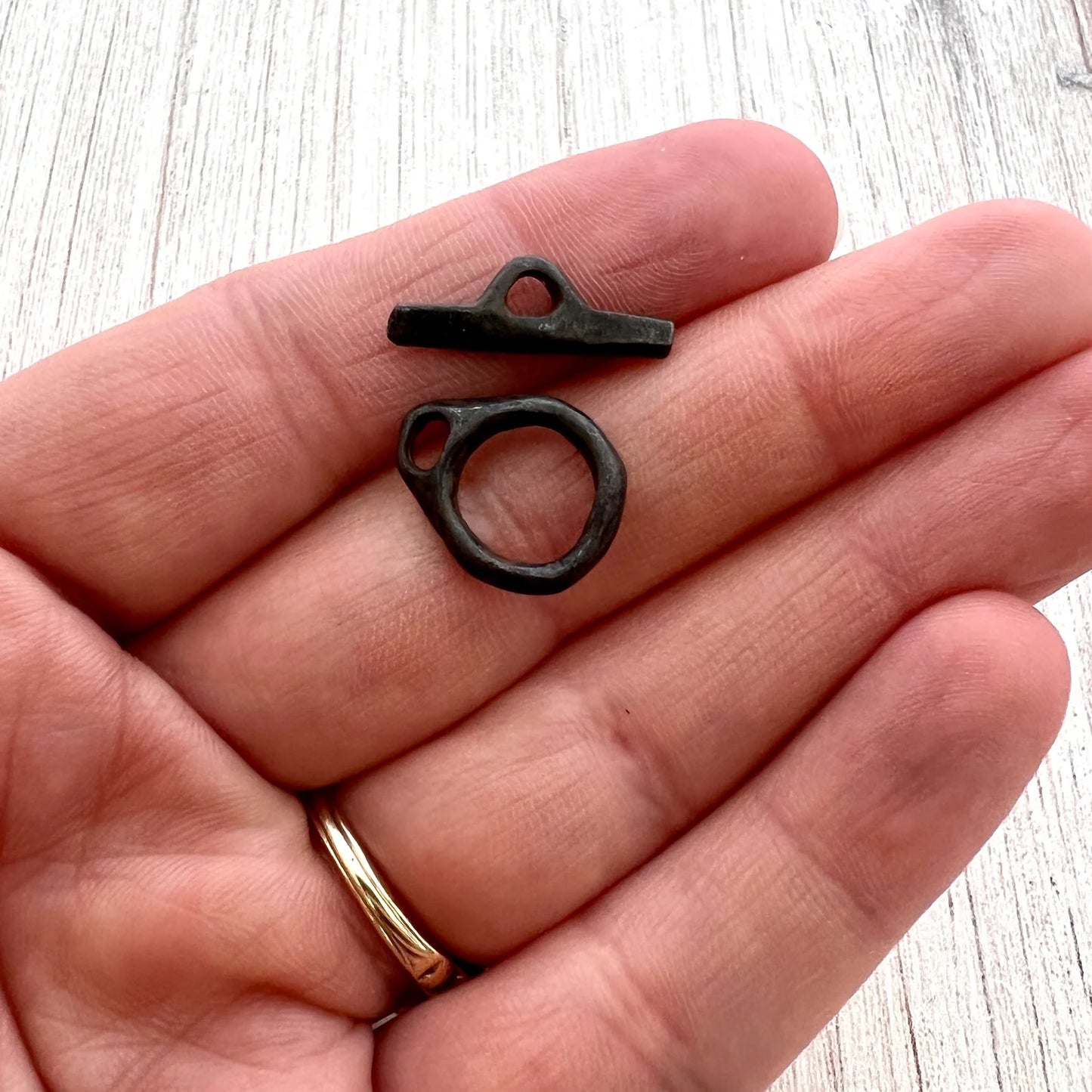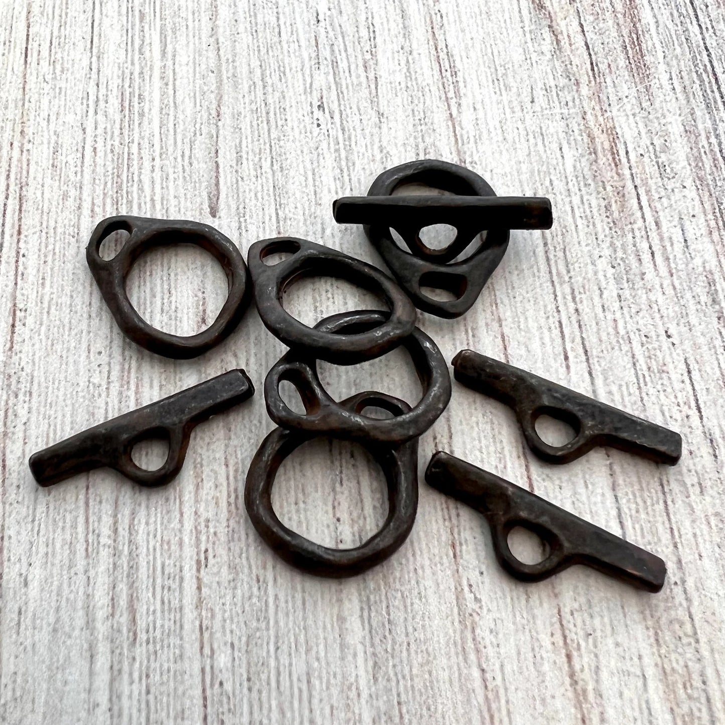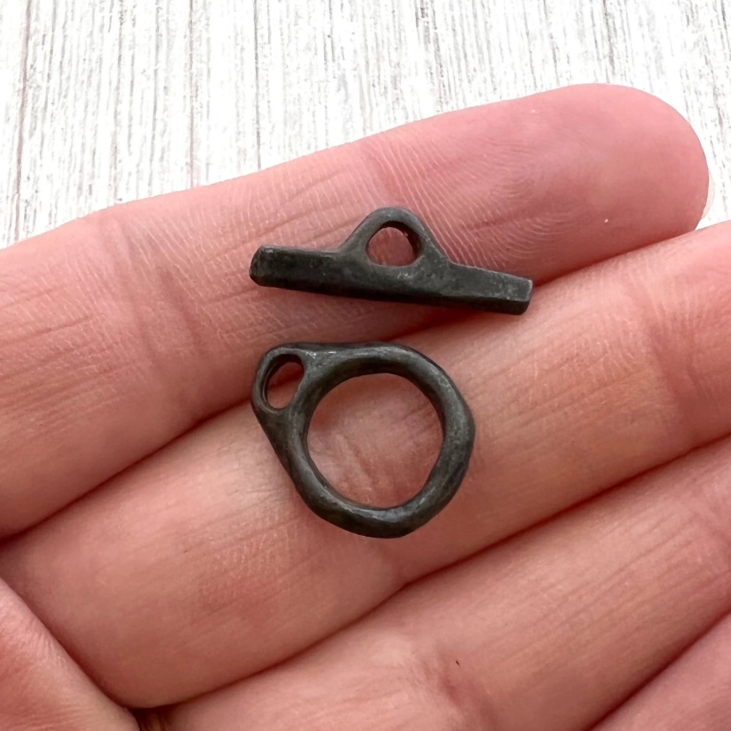 Small Organic Artisan Toggle Clasp, Antiqued Rustic Brown Clasp, Necklace Closure, BR-6228