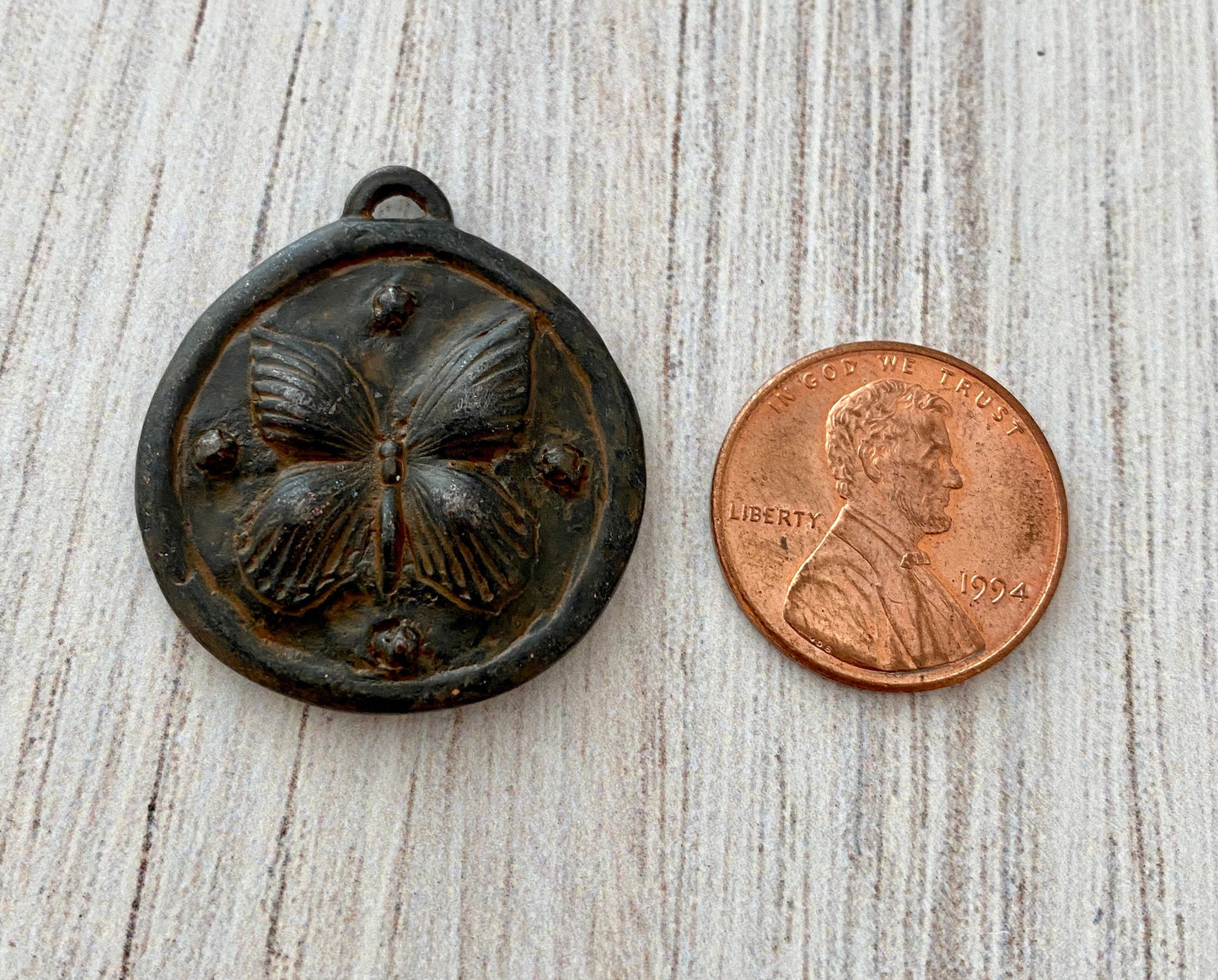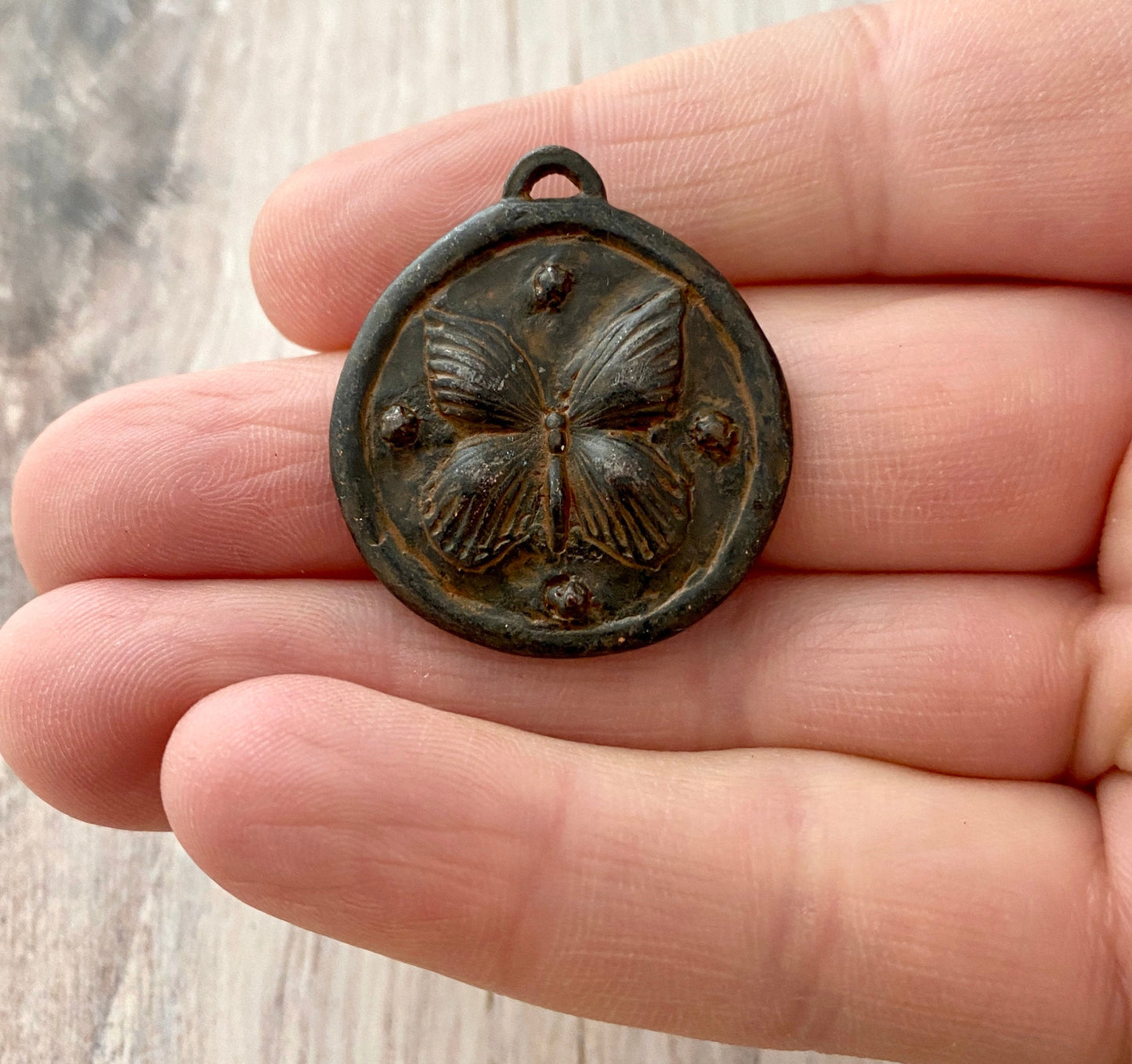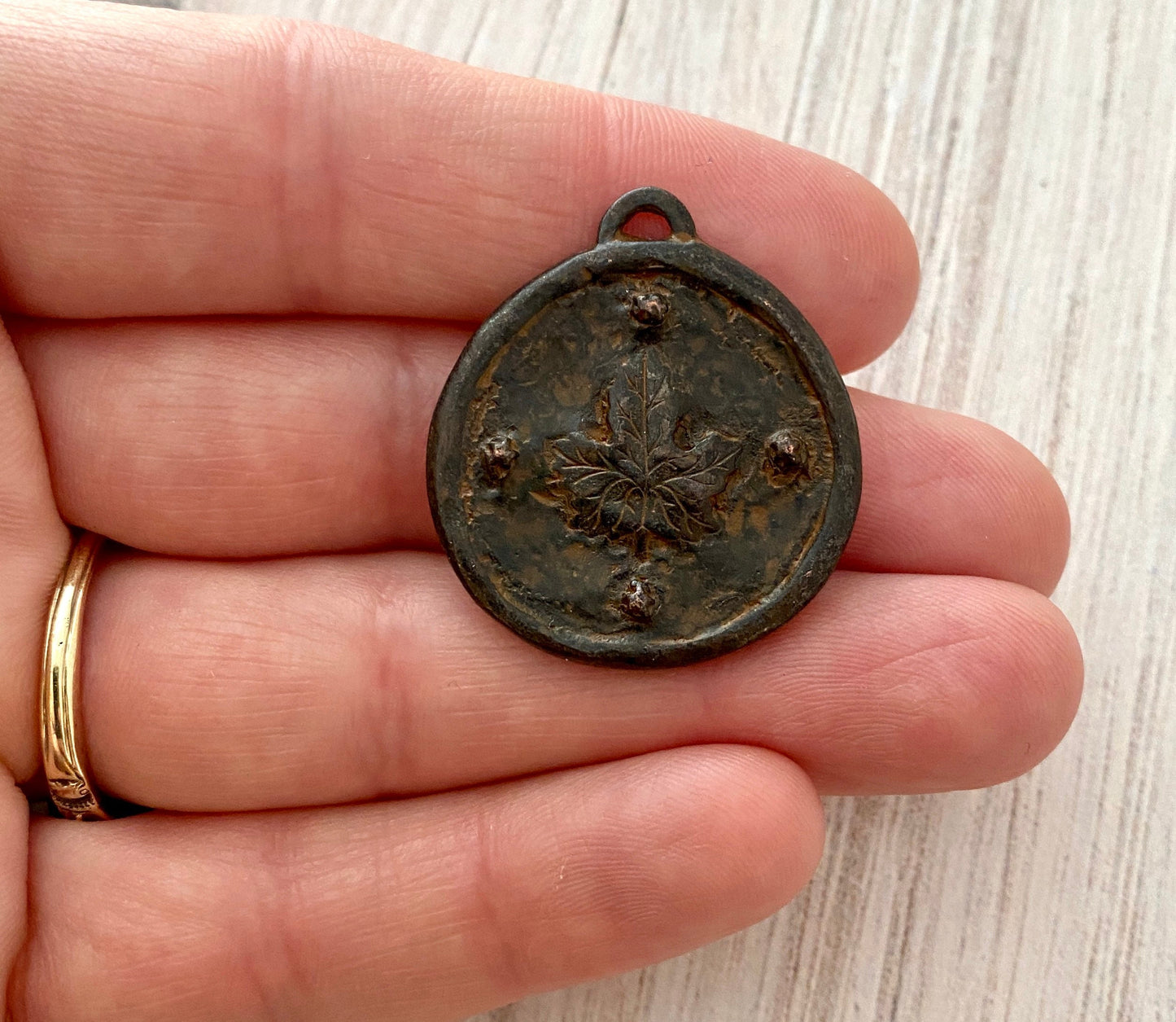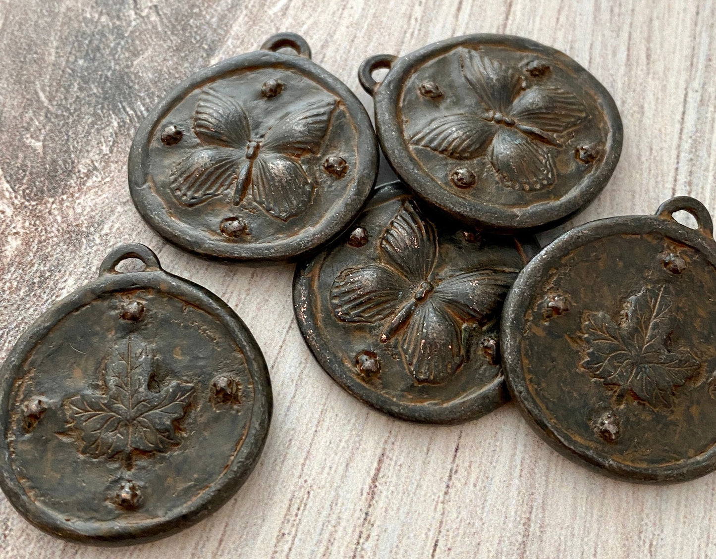 I designed this pendant to capture the whimsical feelings of nature. It features a butterfly on one side and a maple leaf on the other. This piece is quite weighty, and it feels wonderful to the touch. This makes a wonderful component for a necklace or bracelet.