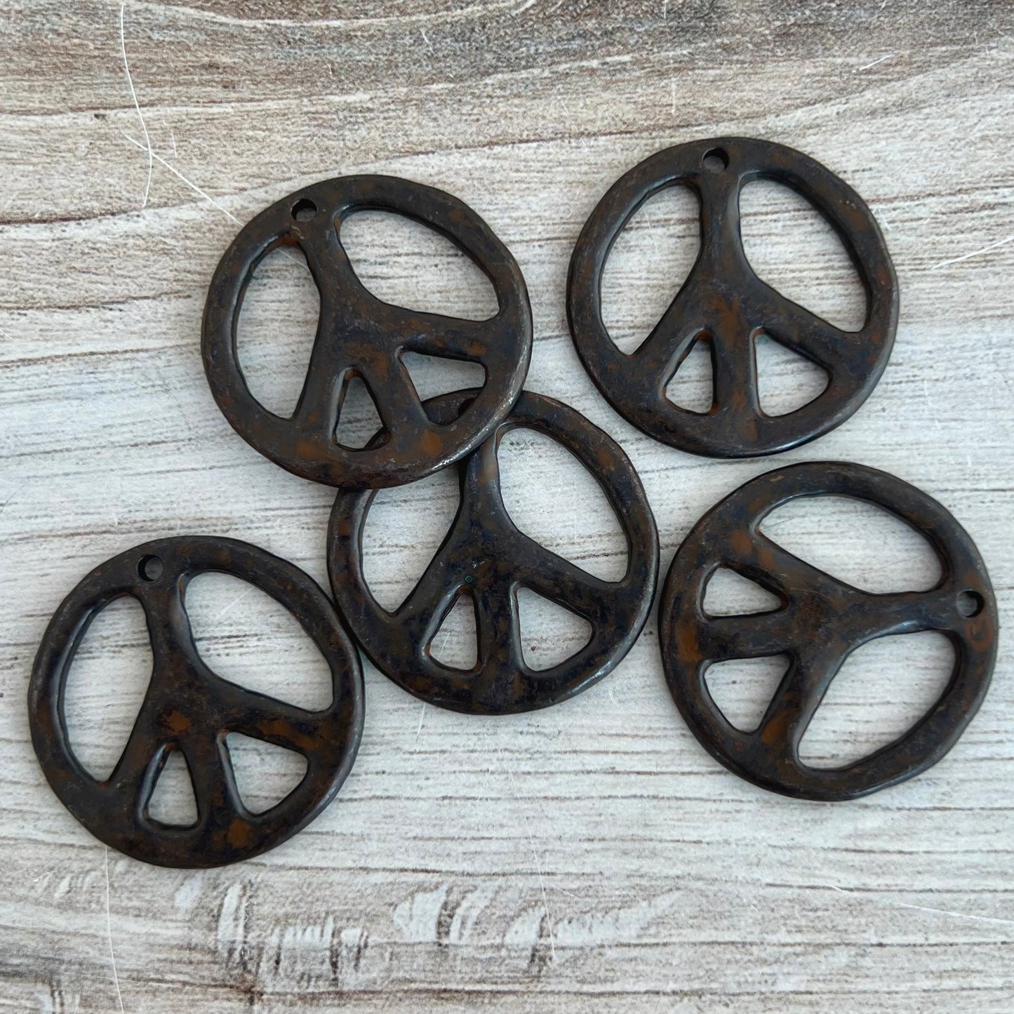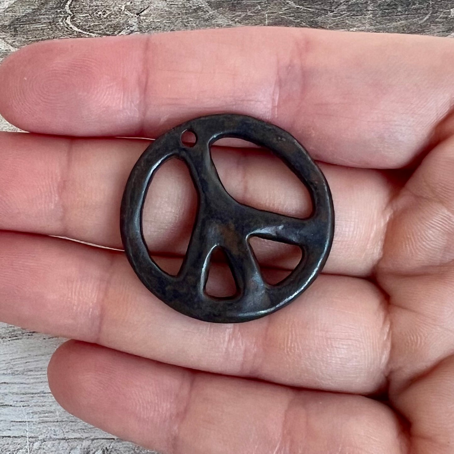 Peace Sign Pendant, Rustic Brown Smooth Symbol Charm, Artisan Jewelry Findings, BR-6305
