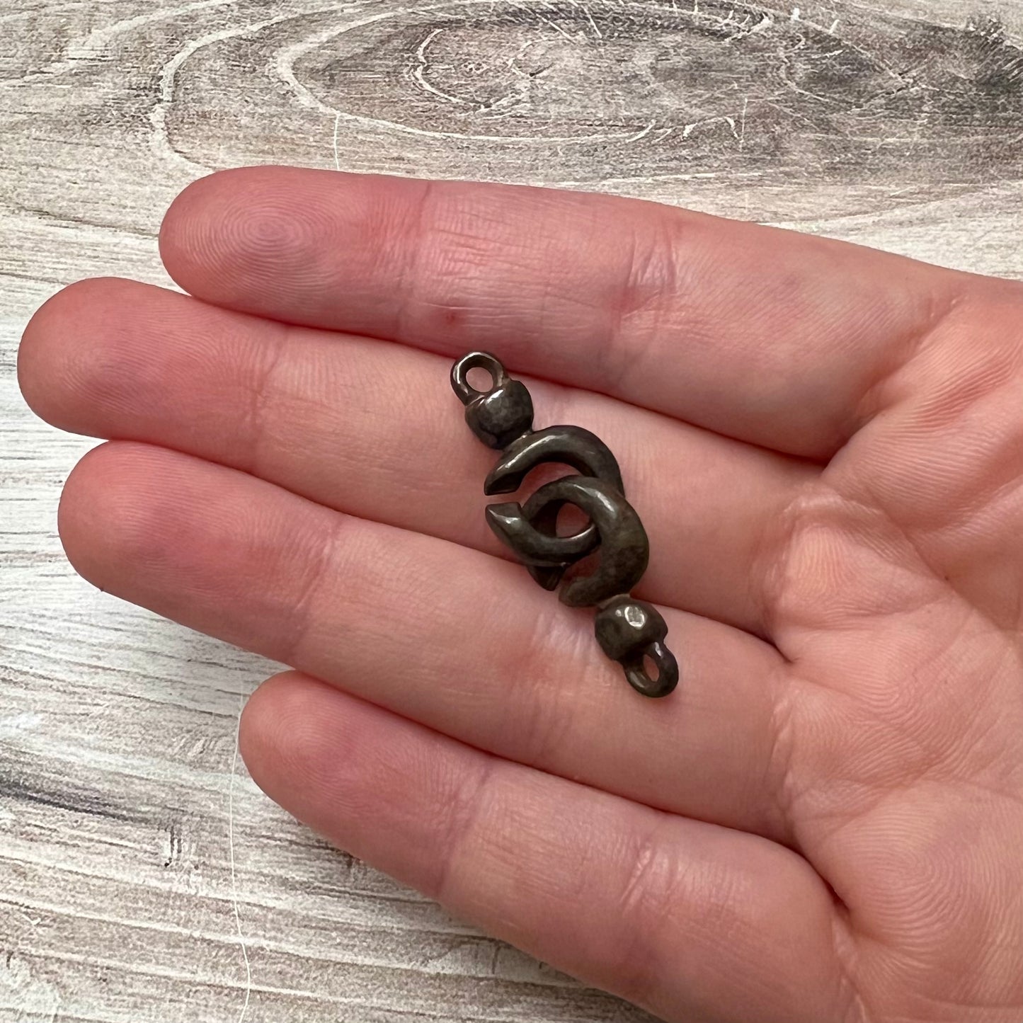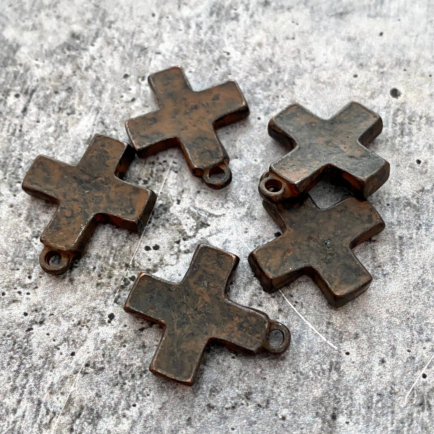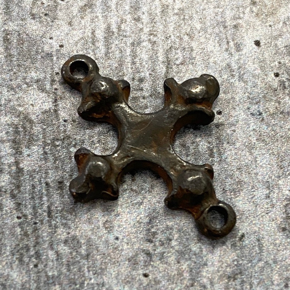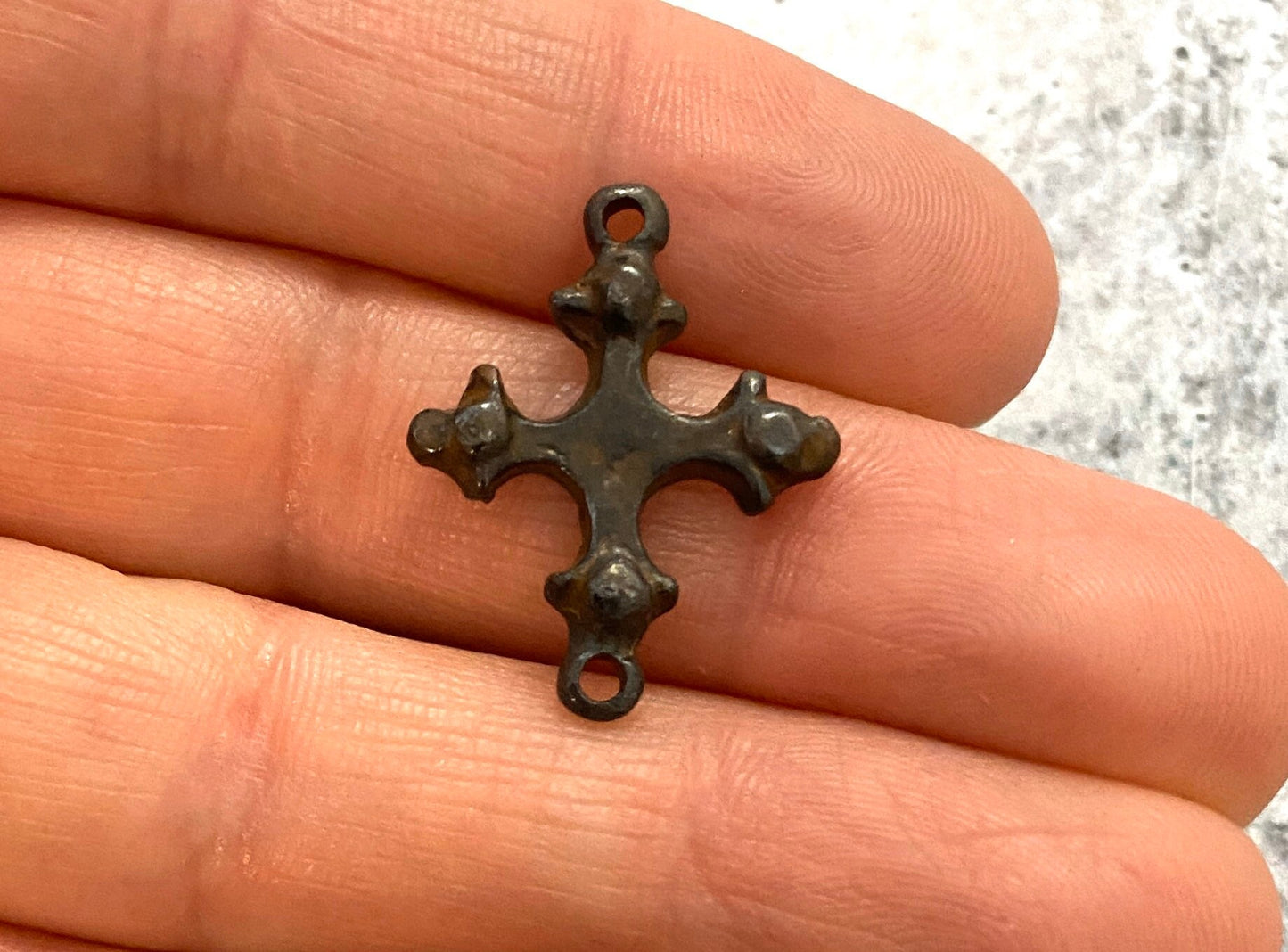 Dotted Cross Connector, Antiqued Rustic Brown Artisan Charm, Jewelry Making Supplies, BR-6097