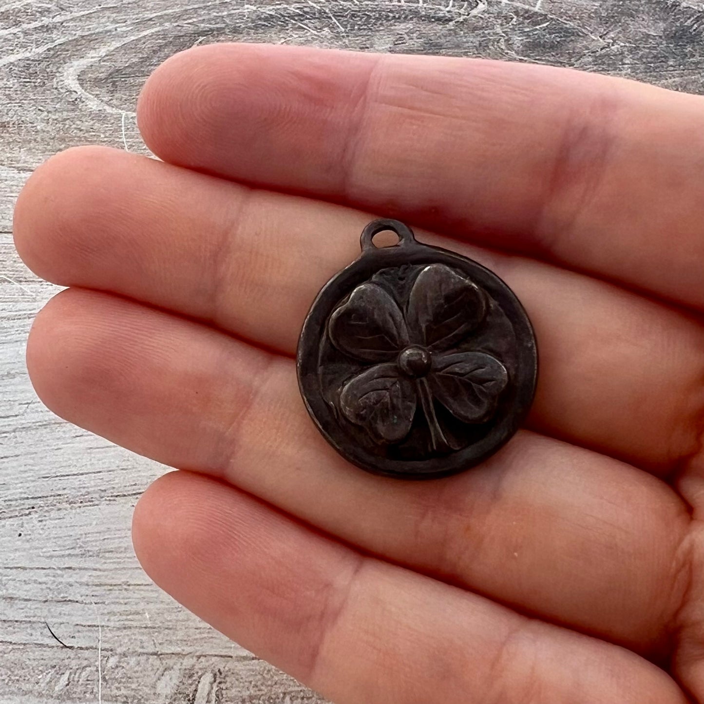 Soldered Shamrock Pendant, Irish Claddagh Charm, Four Leaf Clover Antiqued Brown, Jewelry Making Supplies, BR-6283