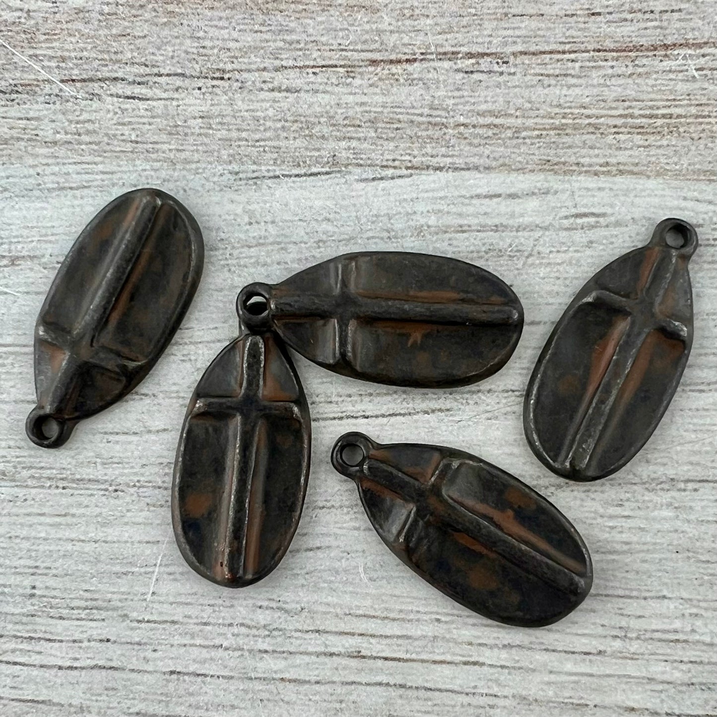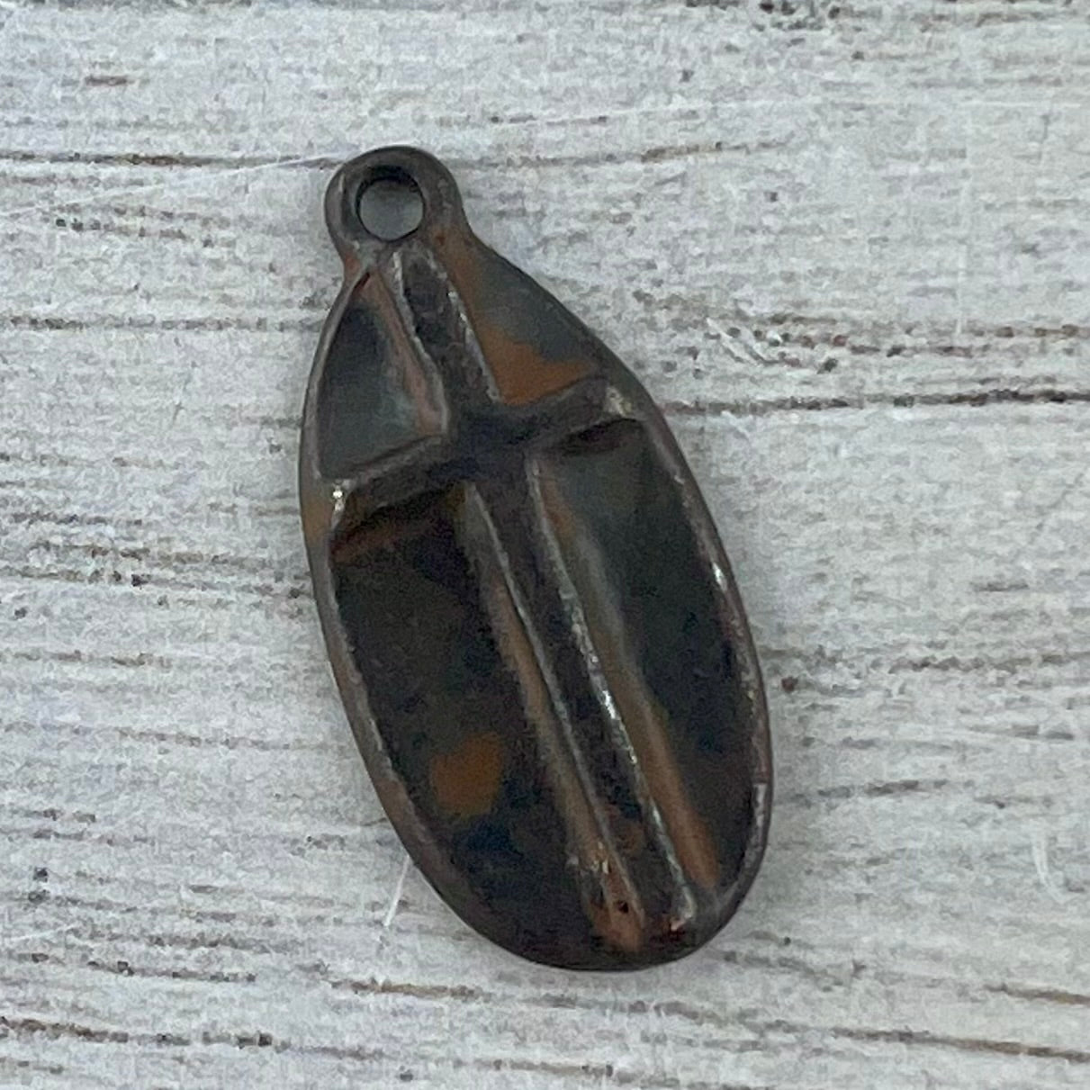 Oval Cross Charm, Rustic Brown Pendant, Jewelry Findings, BR-6309