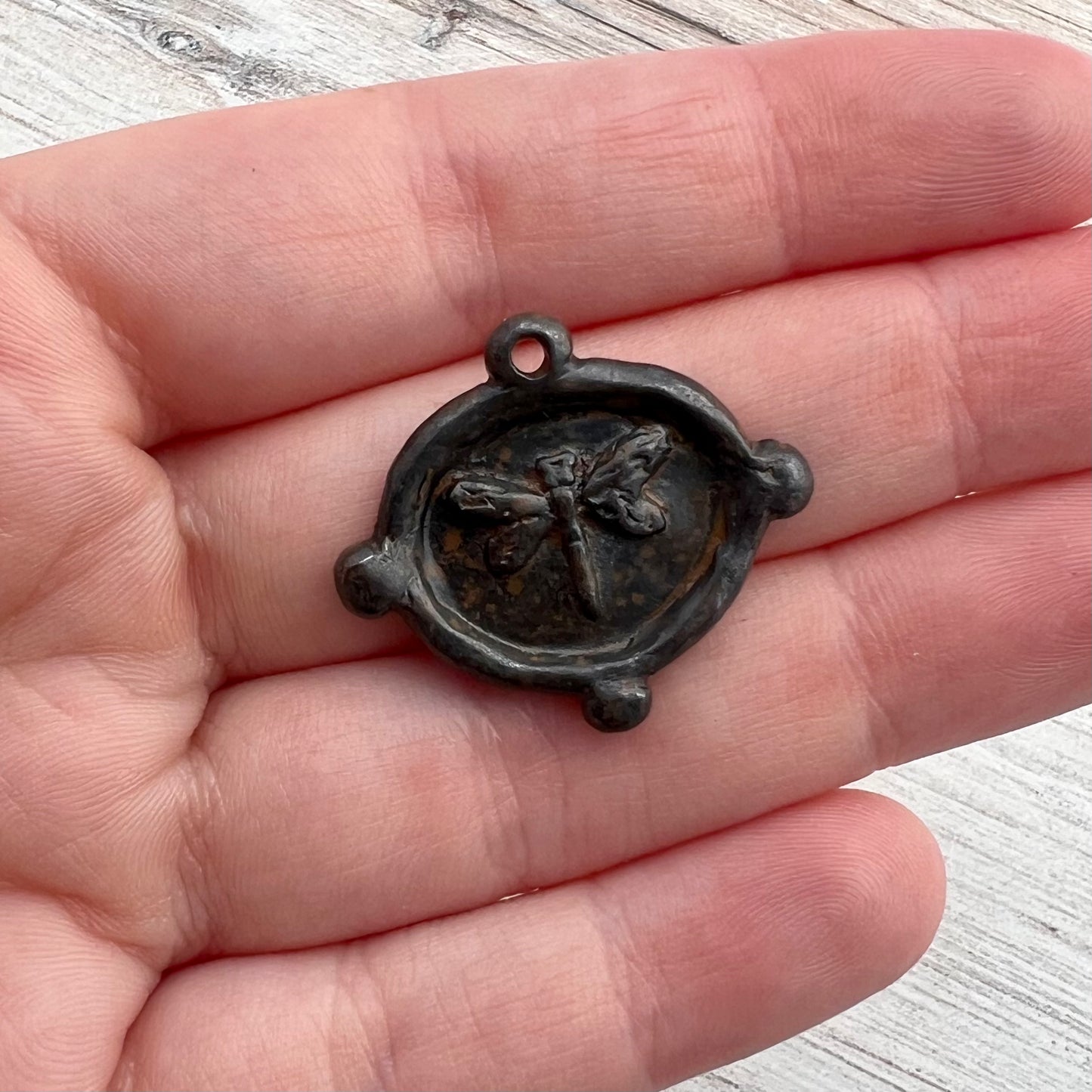 Add Soldered Dragonfly Pendant, Rustic Brown Artisan Charm, Jewelry Supplies, BR-6262 to the cart
