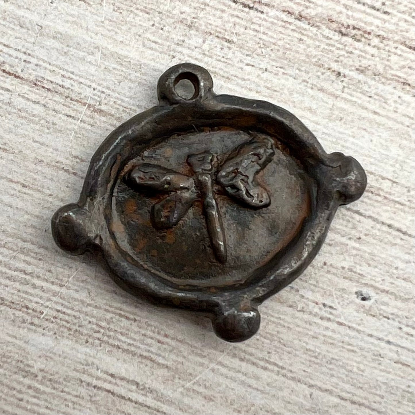 Soldered Dragonfly Pendant, Rustic Brown Artisan Charm, Jewelry Supplies, BR-6262