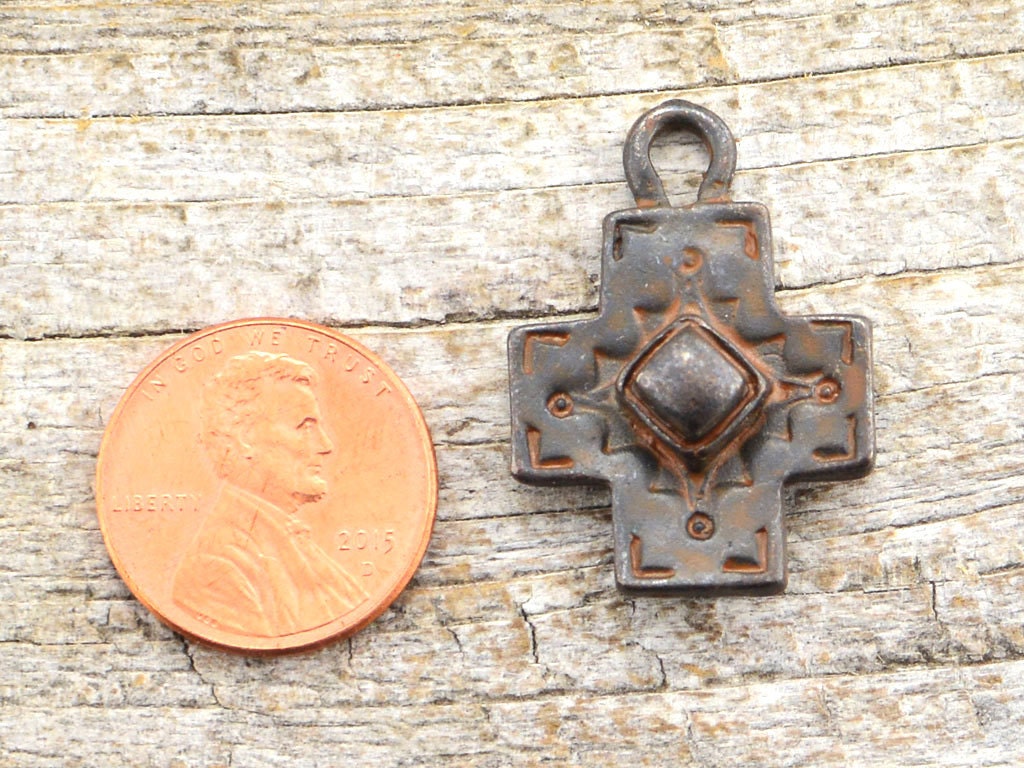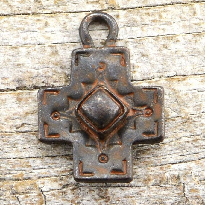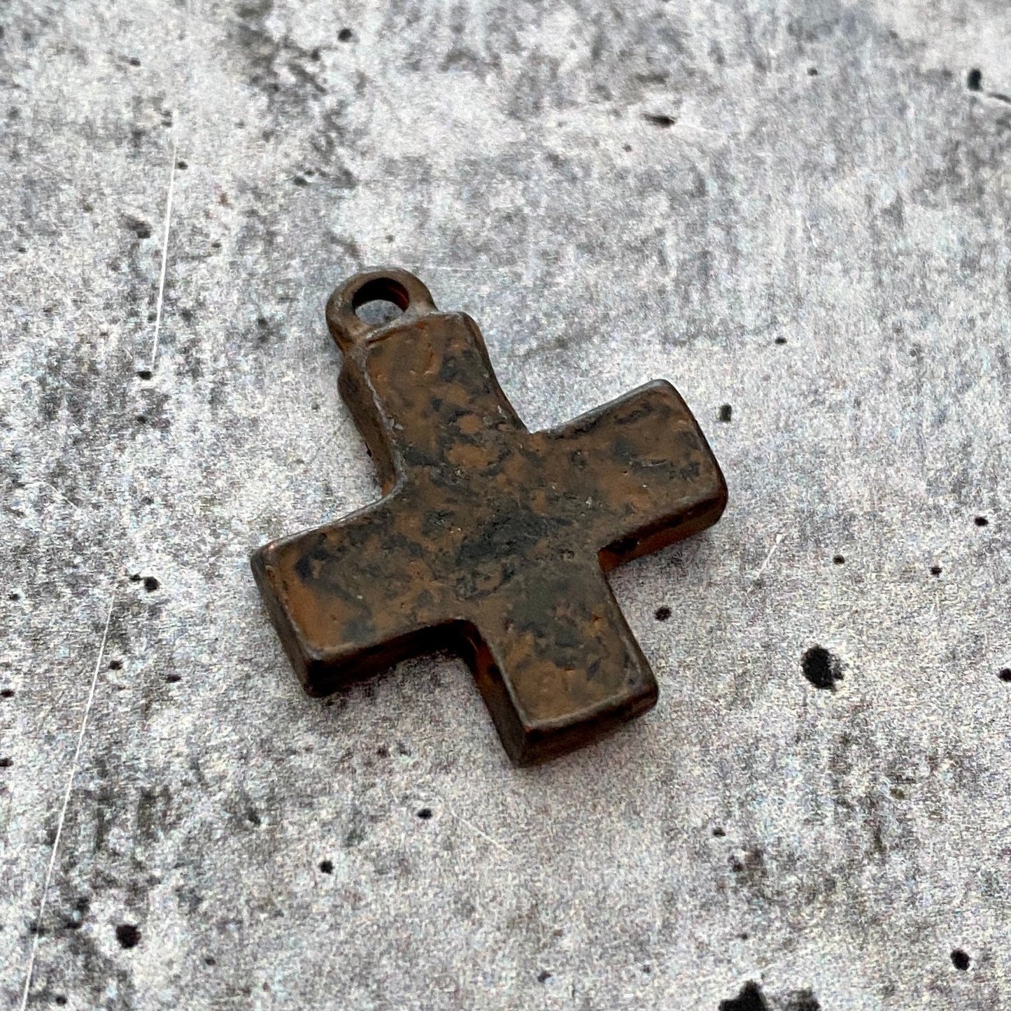 Rustic Cross Pendant, Antiqued Cross, Artisan Cross, Religious Cross, Cross Charm, Patina Cross, Southwest, Brown Cross, BR-6026