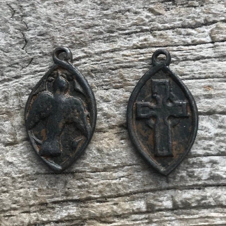 2 Cross Charm, Dove Charm, Holy Spirit Medal, Bird Charm, Religious Jewelry, Saint Esprit, Rustic Brown Cross, Jewelry Making, BR-6037
