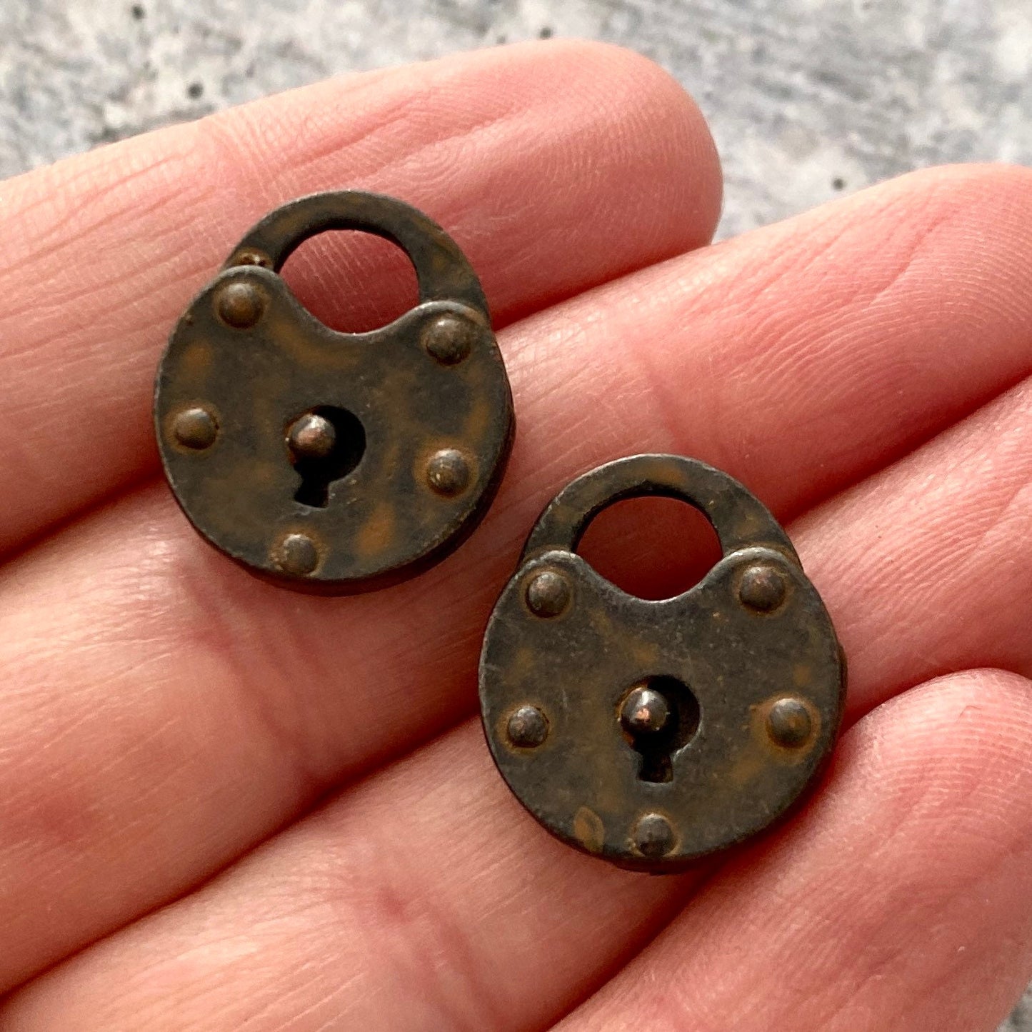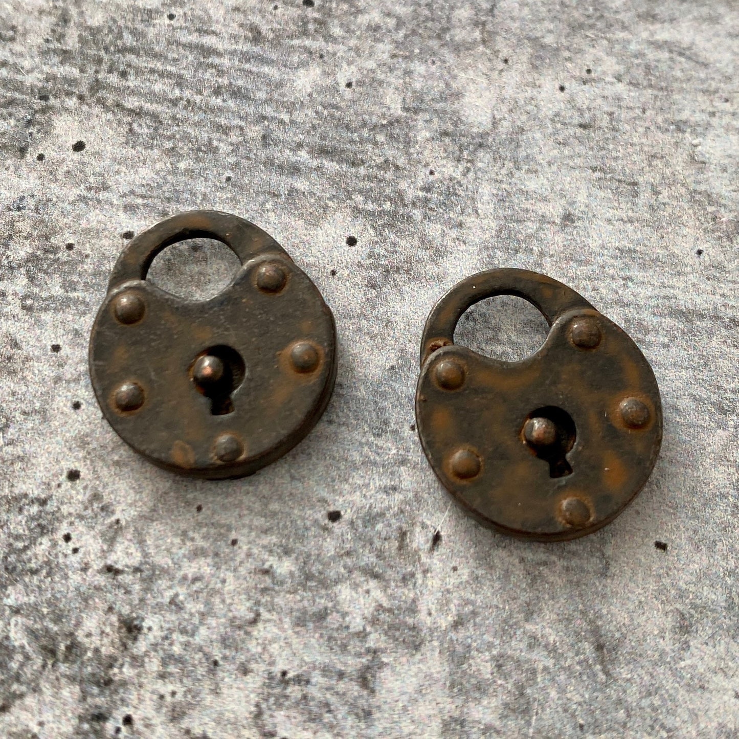 2 Lock Charm, Small Antiqued Rustic Brown Key Lock, Artisan Jewelry Supplies, Carson's Cove, BR-6144