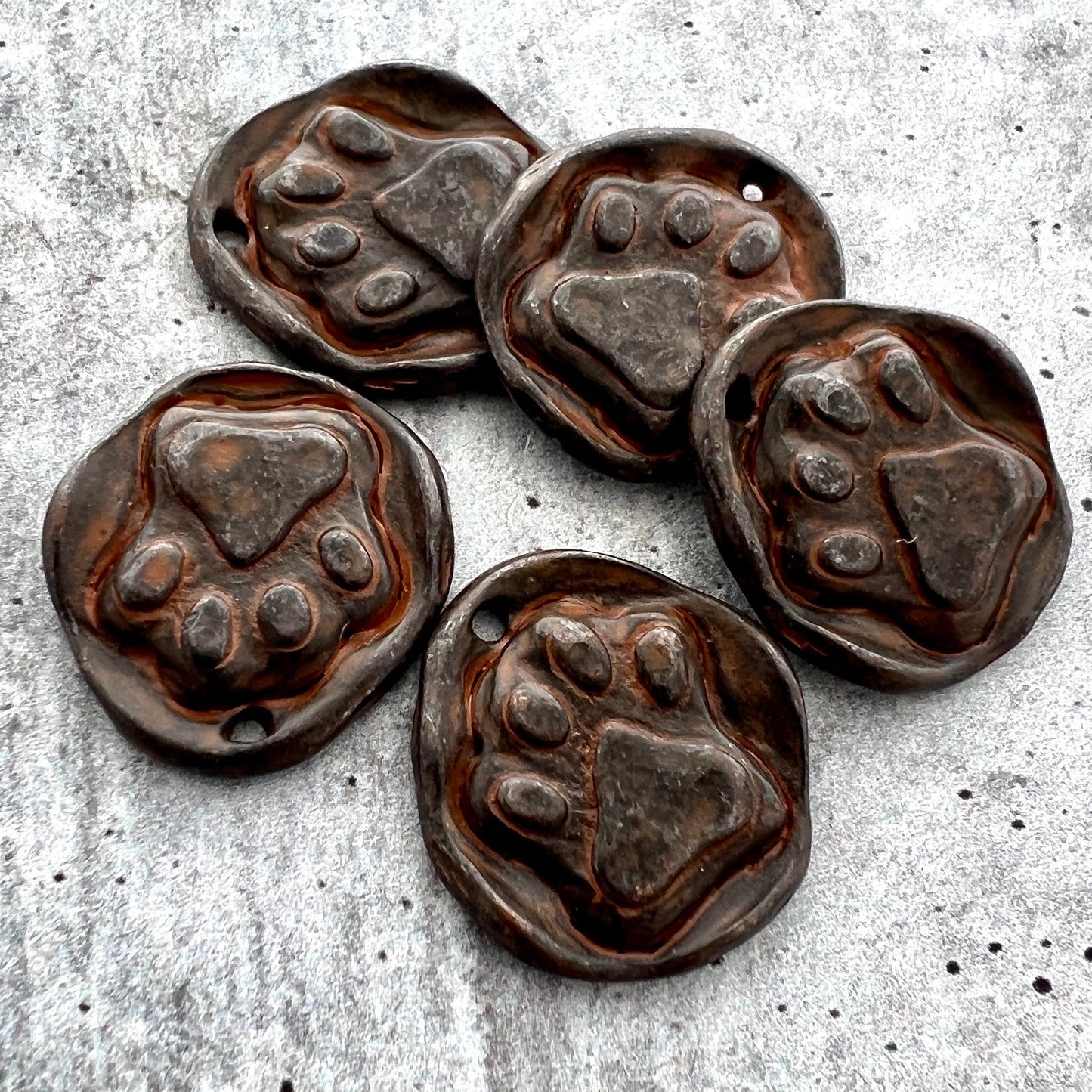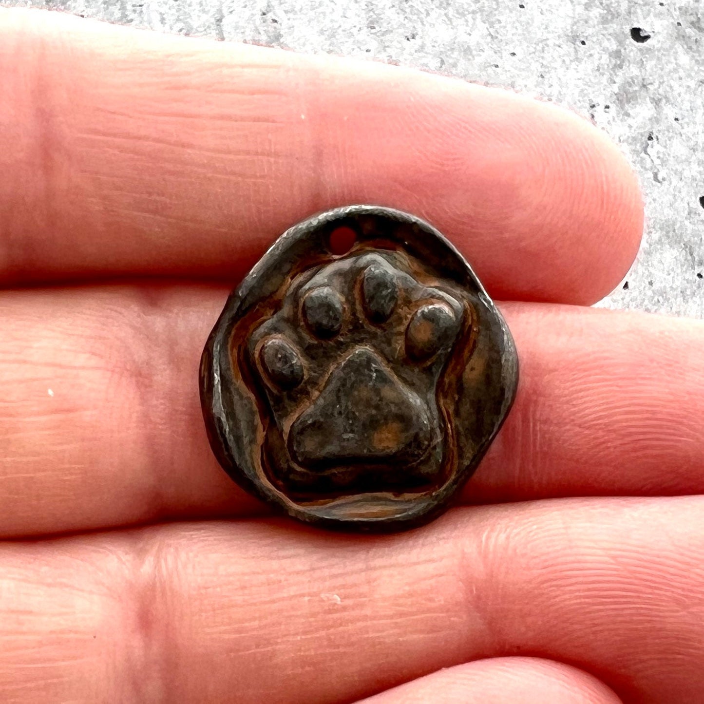 Dog Paw Charm, Cat Paw, Antiqued Rustic Brown Wax Seal Pendant, Pet Jewelry, BR-6215