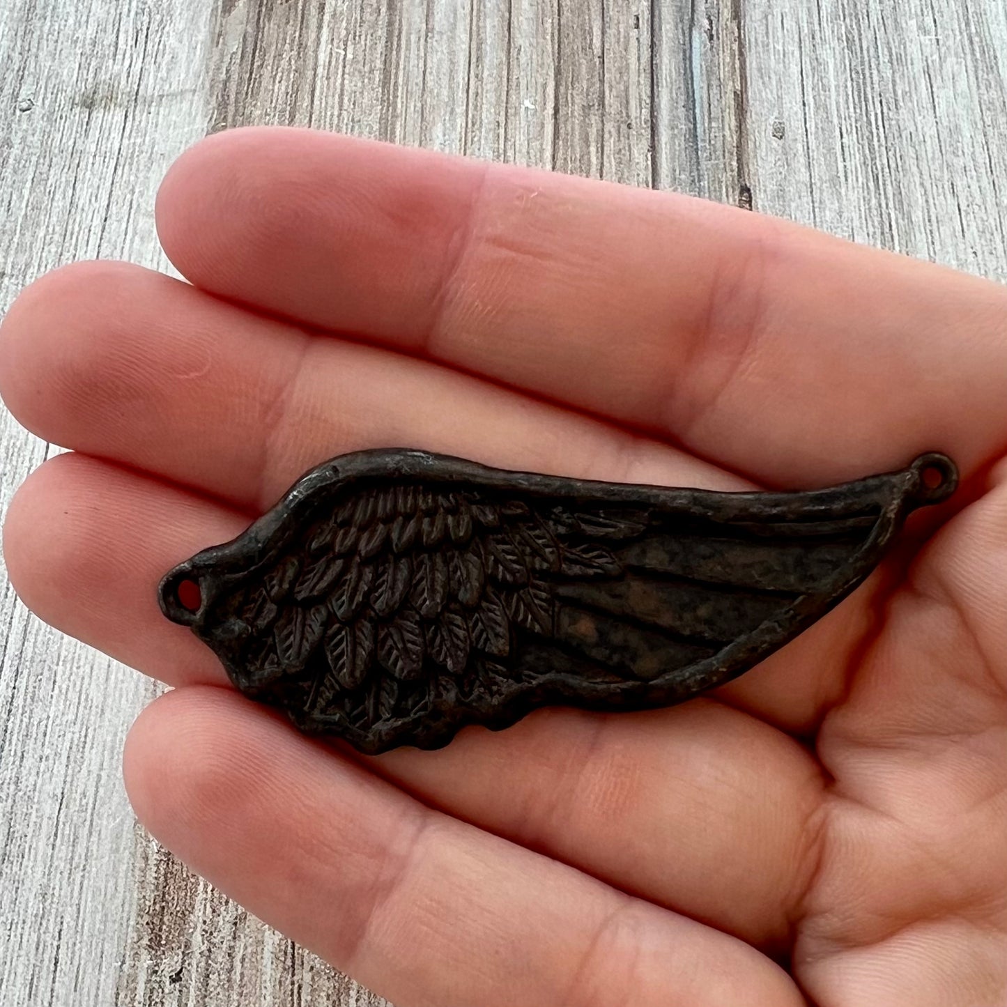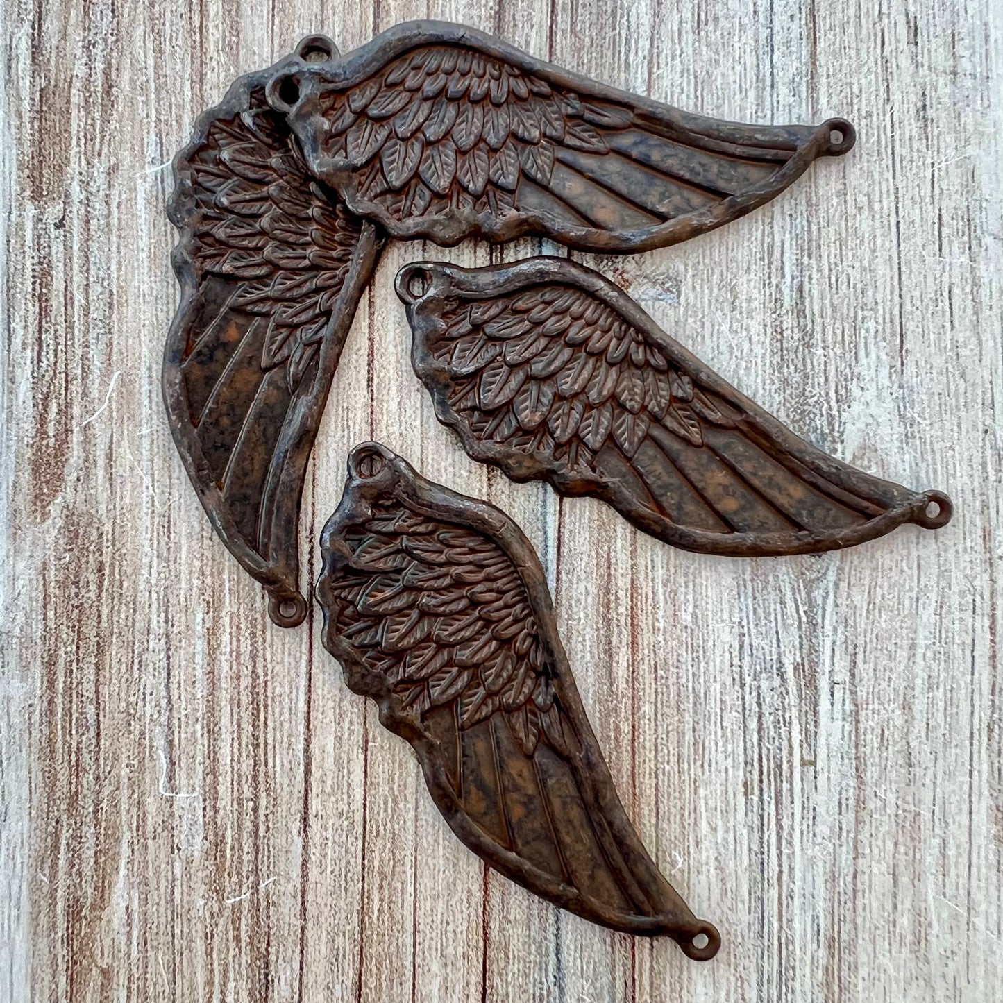 Add Soldered Angel Wing Connector, Rustic Brown Pendant, Jewelry Making, BR-6271 to the cart