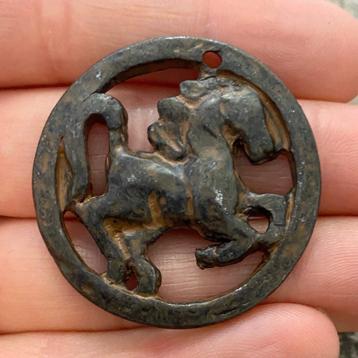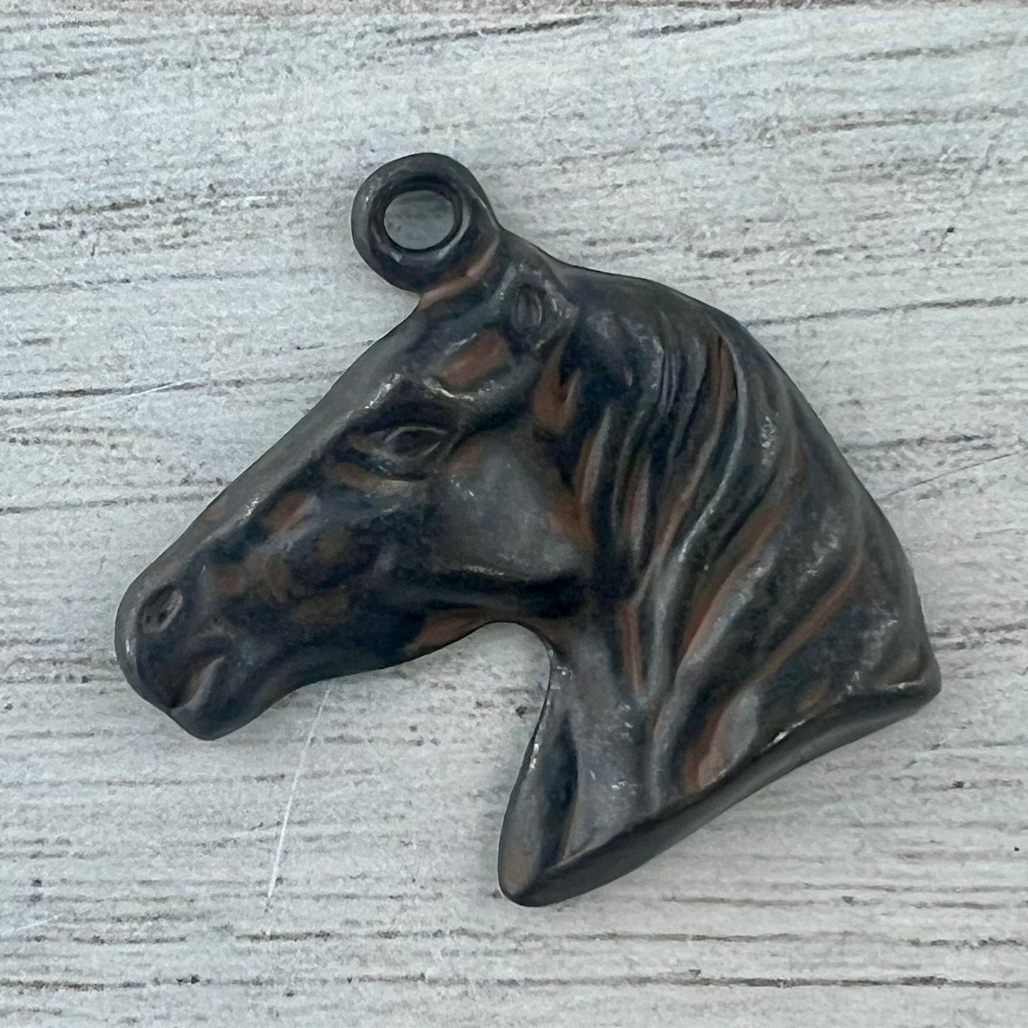 Large Artisan Horse Pendant, Antiqued Rustic Brown Equestrian Charm, Jewelry Making, BR-6105