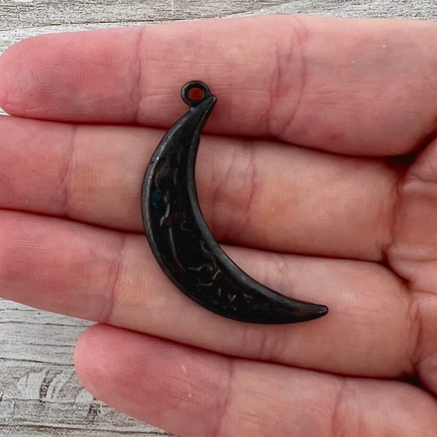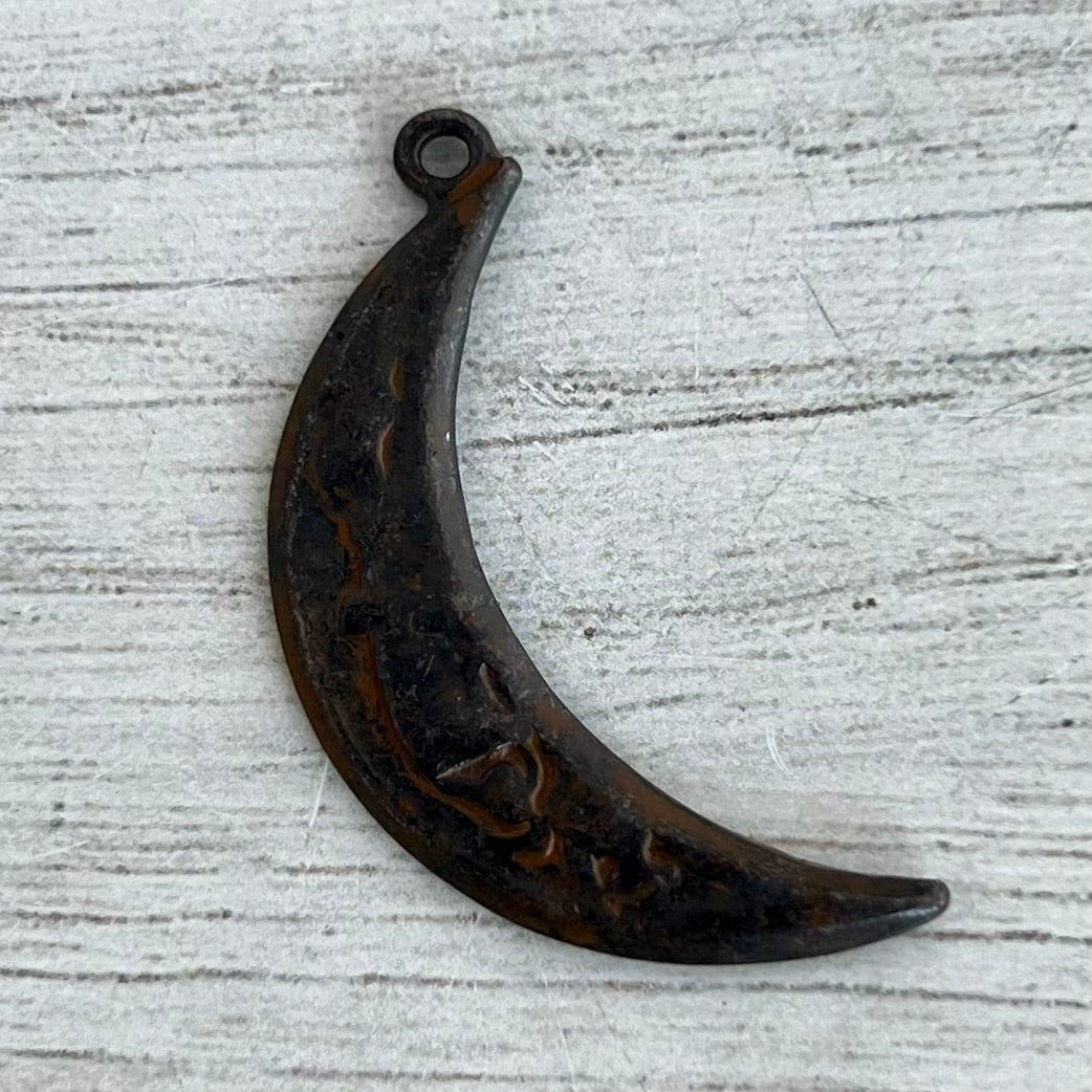 Textured Crescent Moon Pendant, Rustic Brown Celestial Charm, Jewelry Findings, BR-6306