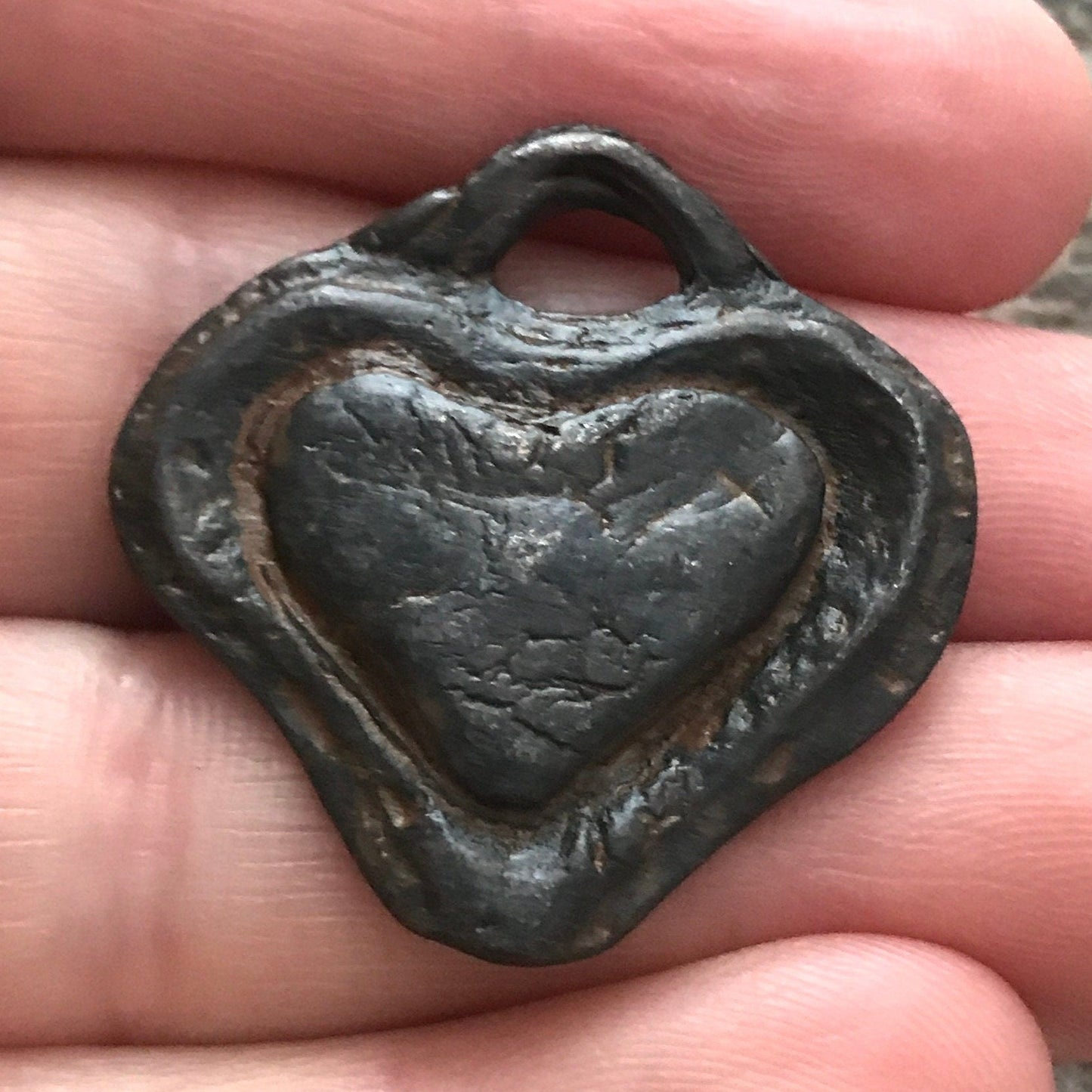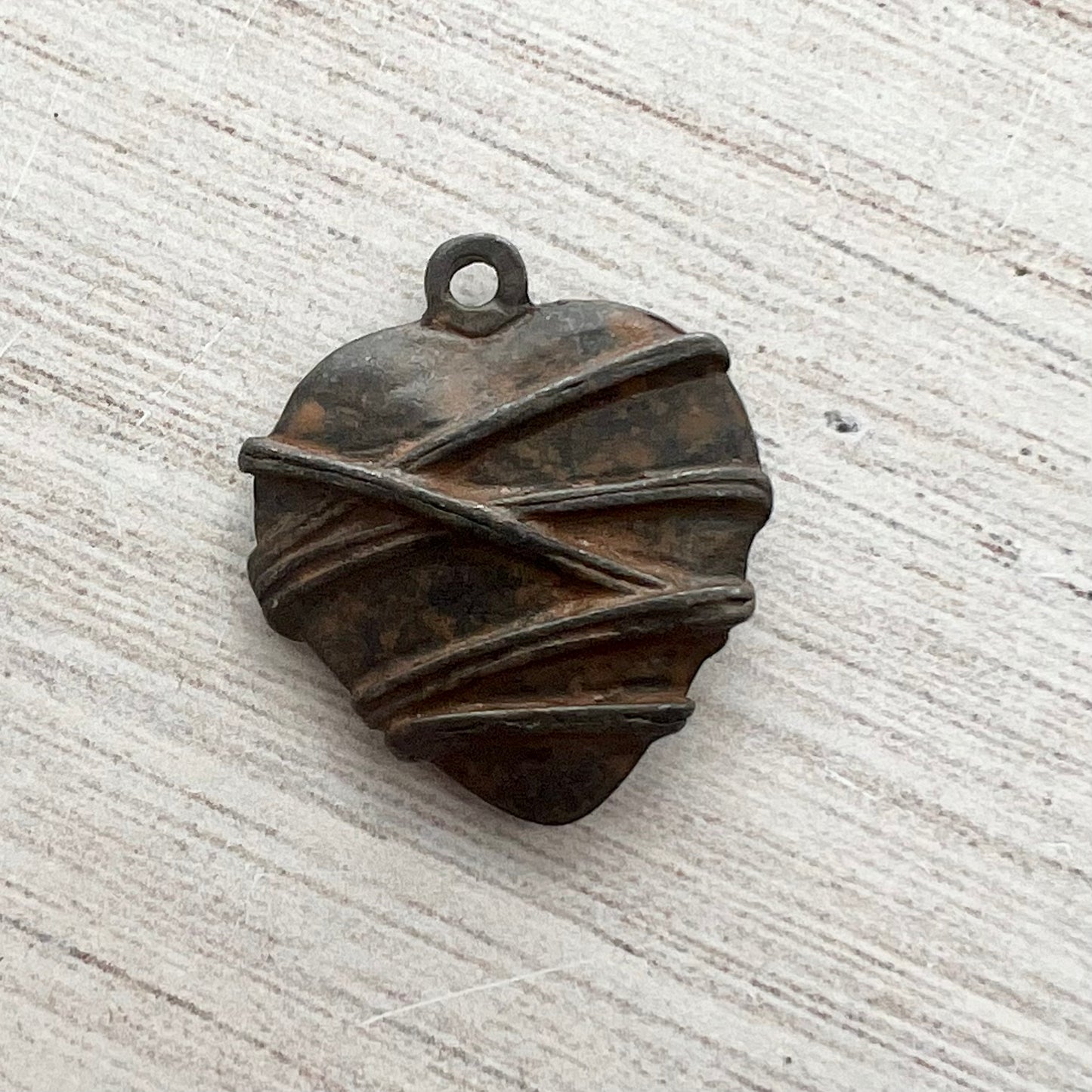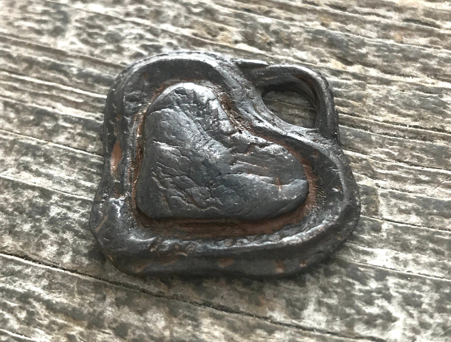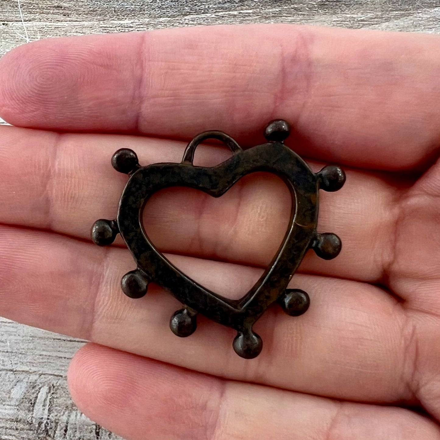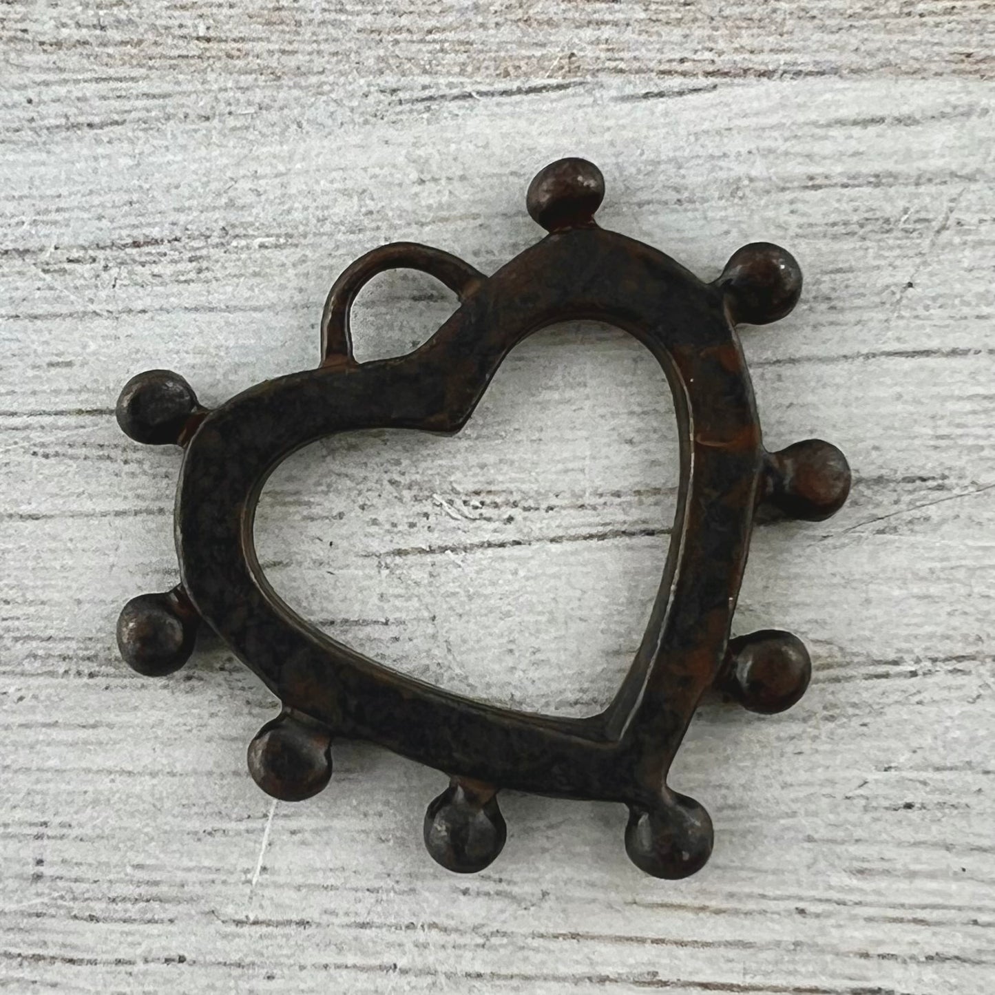 Add Dotted Heart Charm, Bumpy Rustic Brown Artisan Pendant, Jewelry Making, BR-6303 to the cart