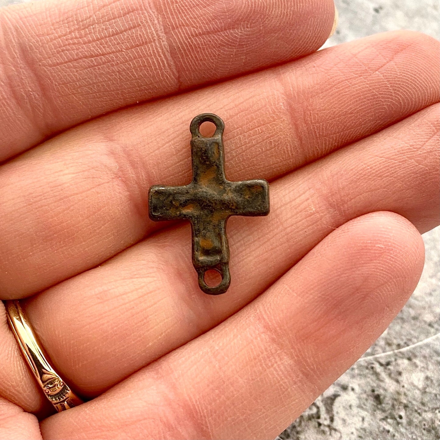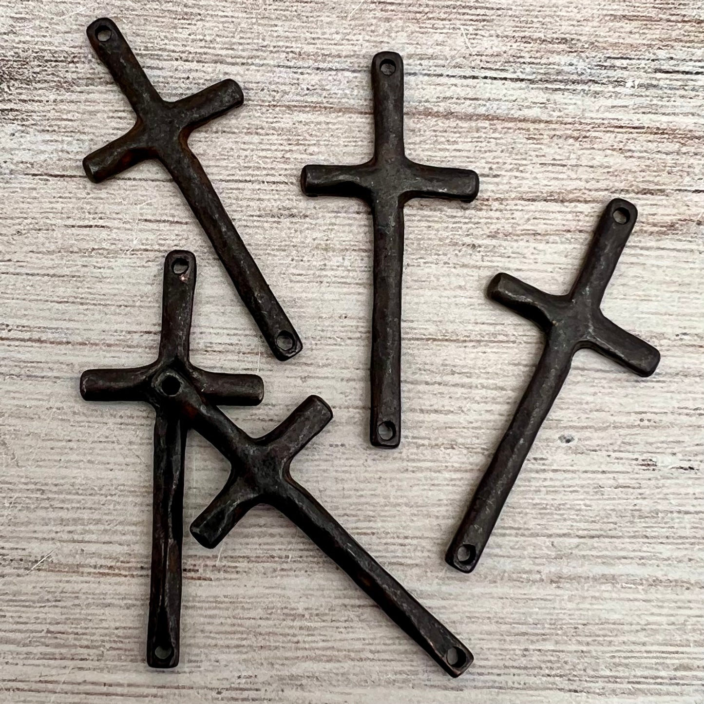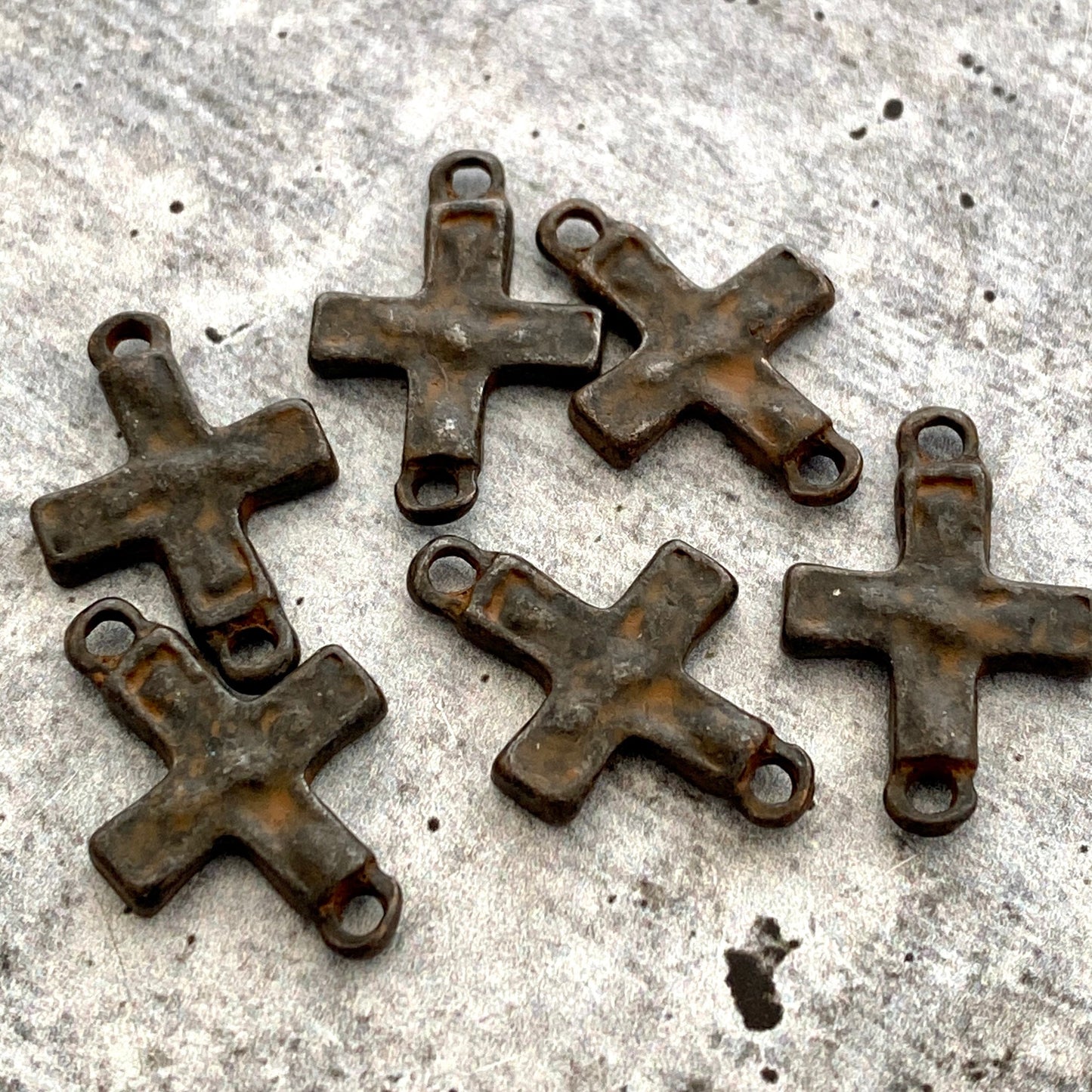 2 Hammered Small Cross Charm, Rustic Brown Artisan Cross, Religious, Spiritual Jewelry Making, BR-6226