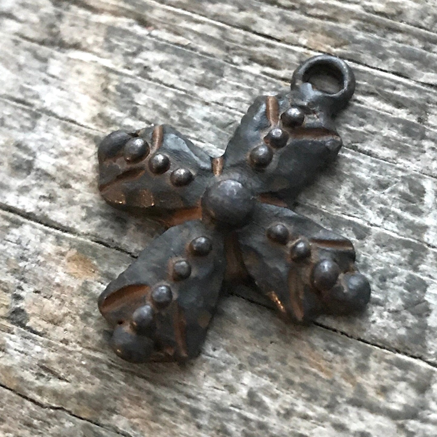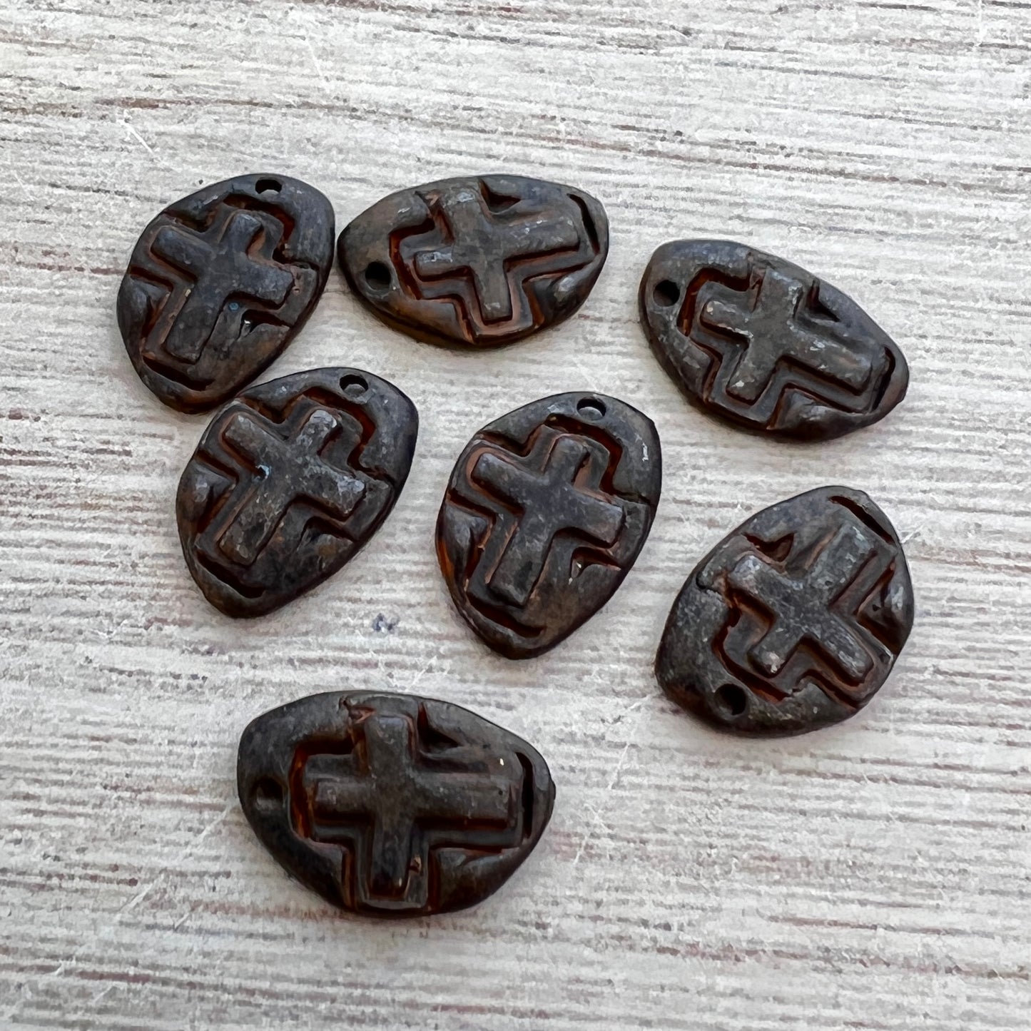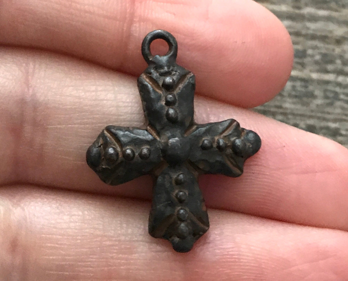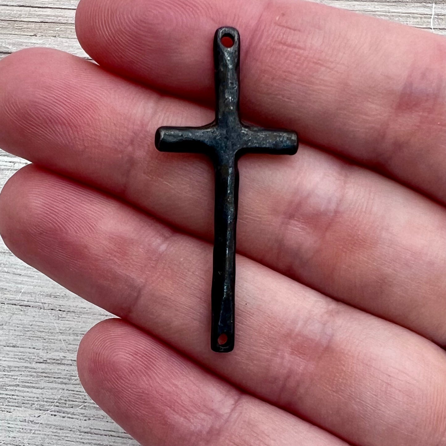 2 Hammered Small Cross Charm, Rustic Brown Artisan Cross, Religious, Spiritual Jewelry Making, BR-6226
