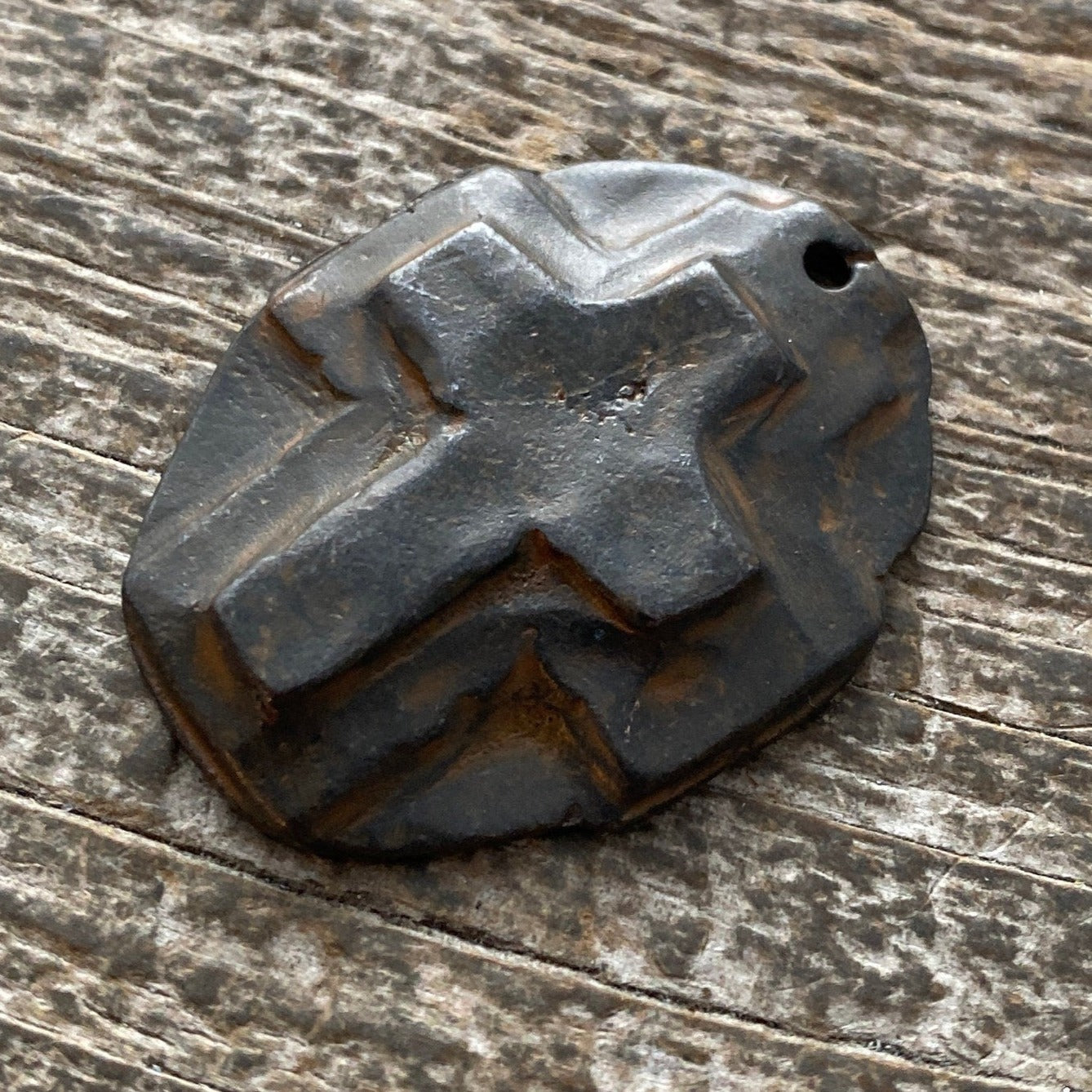 Bumpy Dotted Cross, Rustic Brown, Artisan Pendant Charm, BR-6071