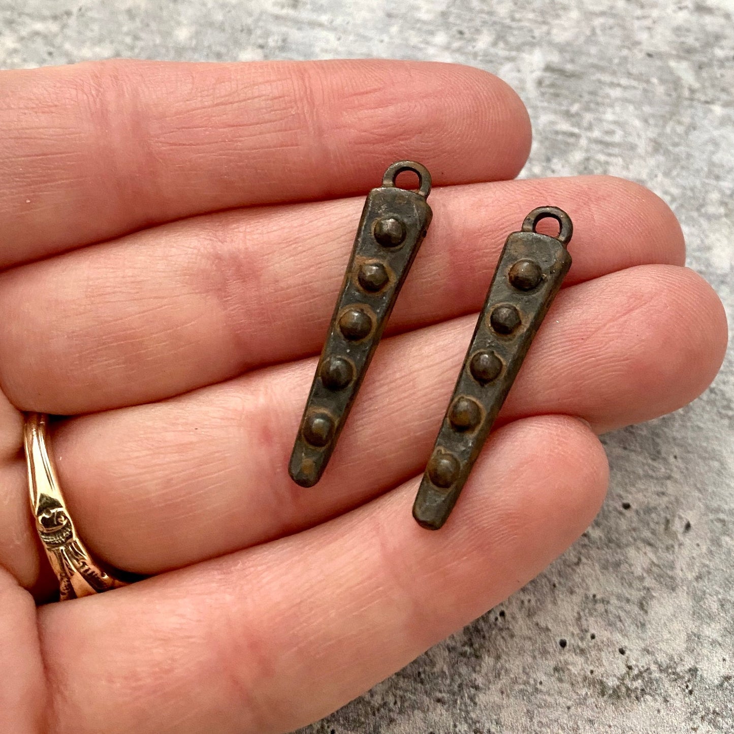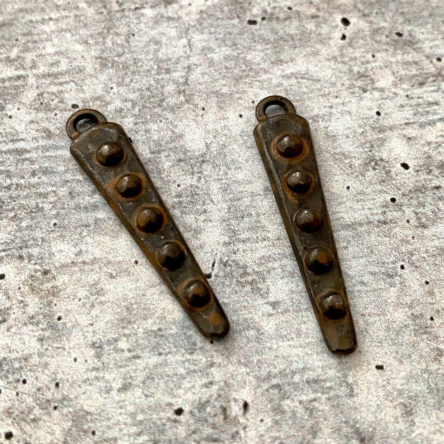 2 Dotted Dangles, Antiqued Rustic Brown Spike Charms, Jewelry Making Components Supplies, BR-6146