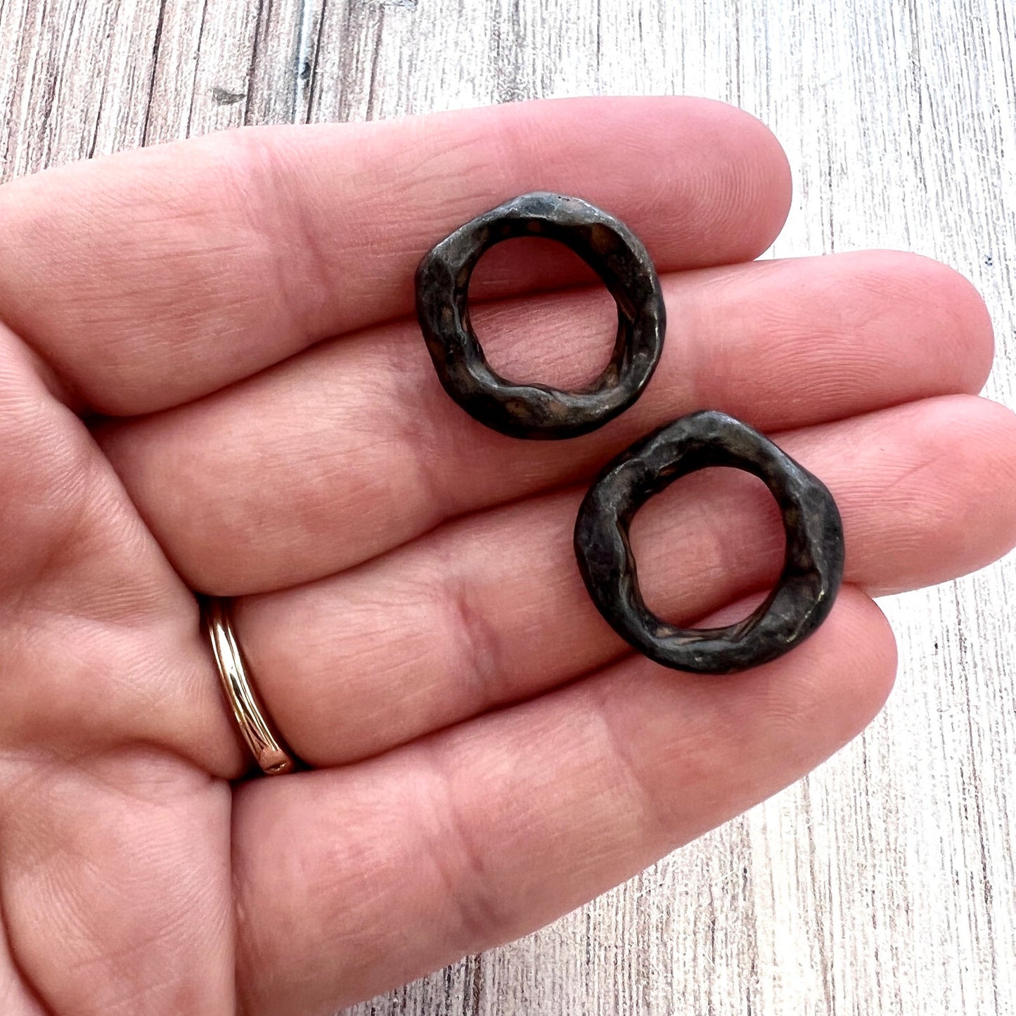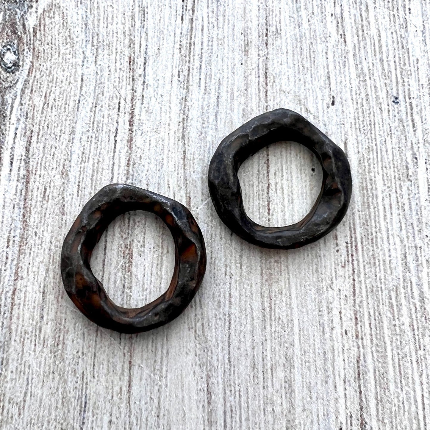 2 Organic Ring Links, Eternity Connector, Rustic Brown Pewter Oval Hoop, Circle Jewelry Supply, BR-6218