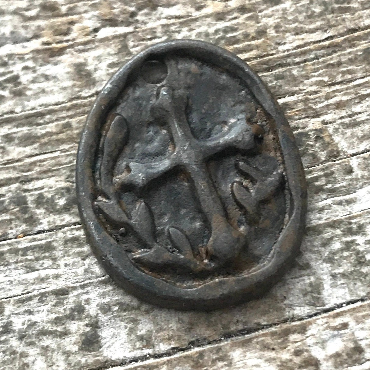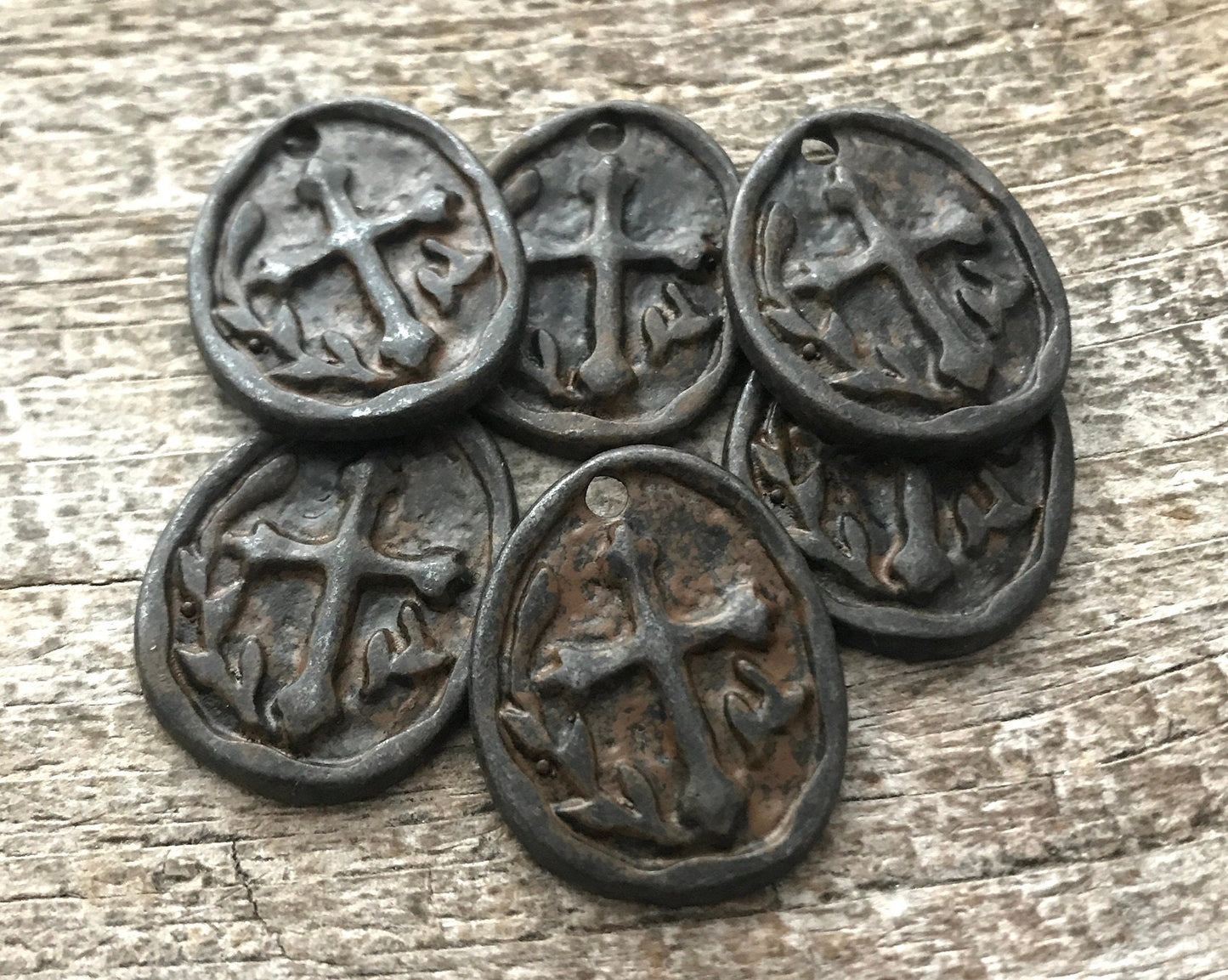 Cross Charm, Rustic Brown Pocket Cross, Circle Cross Coin Token, Religious Cross, Antiqued Charm, Christian Jewelry, Men's Jewelry BR-6040
