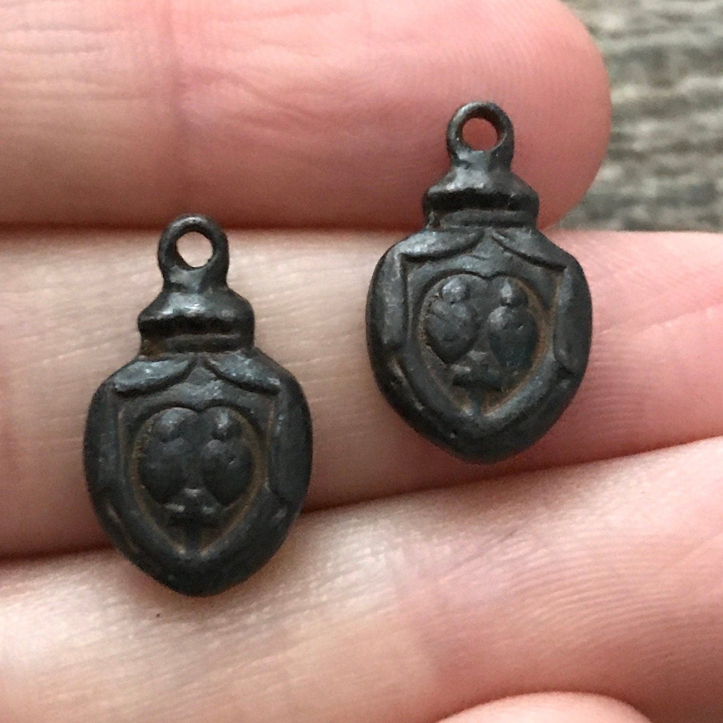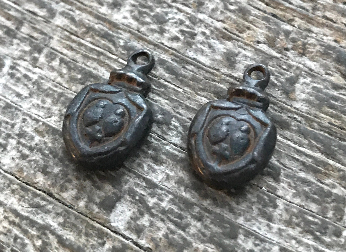 2 Sacred Heart Cross Medals, Rustic Brown, Jewelry Making Charms, Ex Voto, Milagro, Talisman, BR-6075