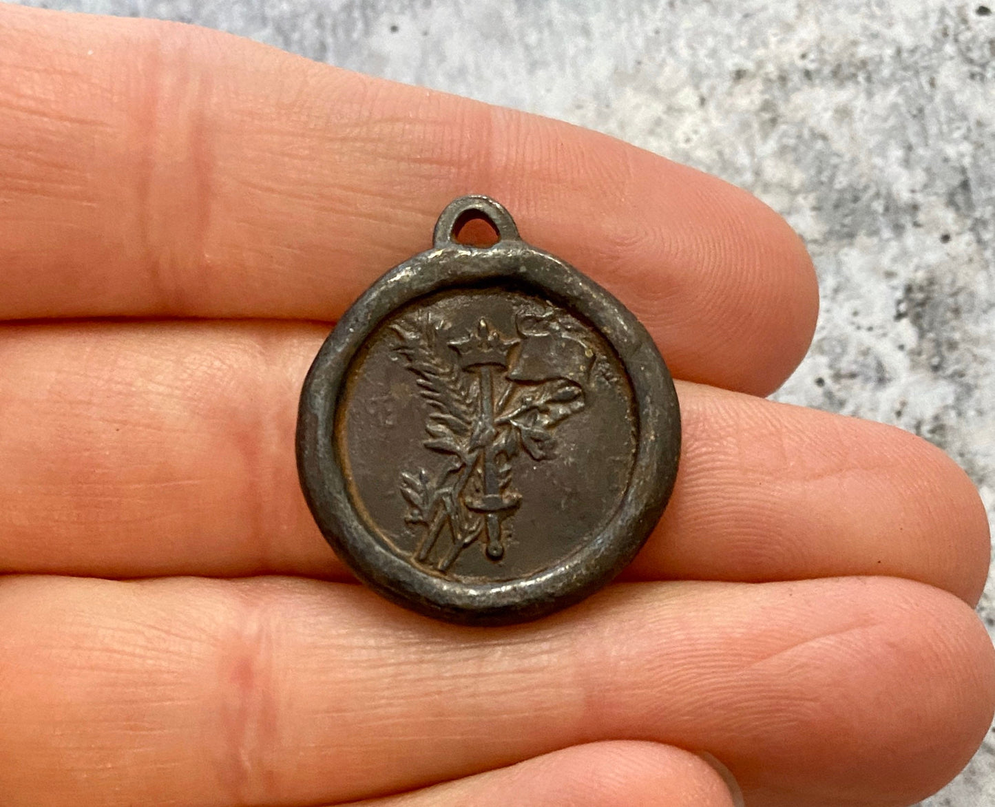 Add Soldered Joan of Arc Medal, Antiqued Rustic Brown Charm Pendant, Brave Woman, Saint of Soldiers, Religious Catholic Jewelry Supply, BR-6098 to the cart