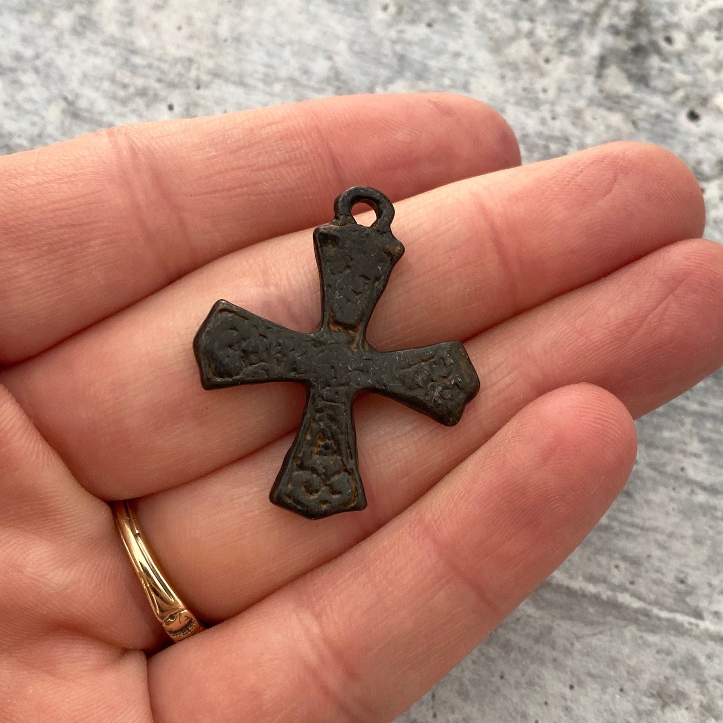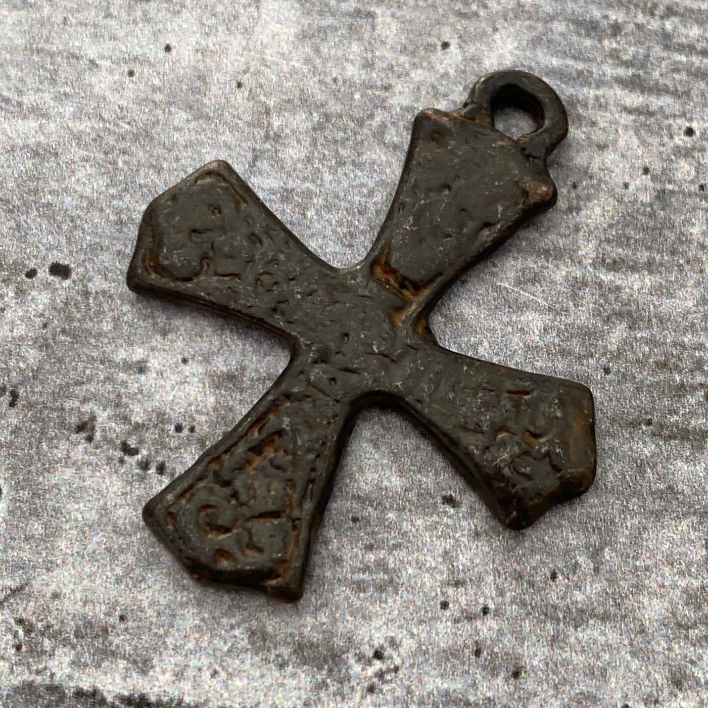 Ancient Maltese Cross Pendant, Antiqued Rustic Brown Textured Religious Pendant Charm, Carson's Cove, BR-6119