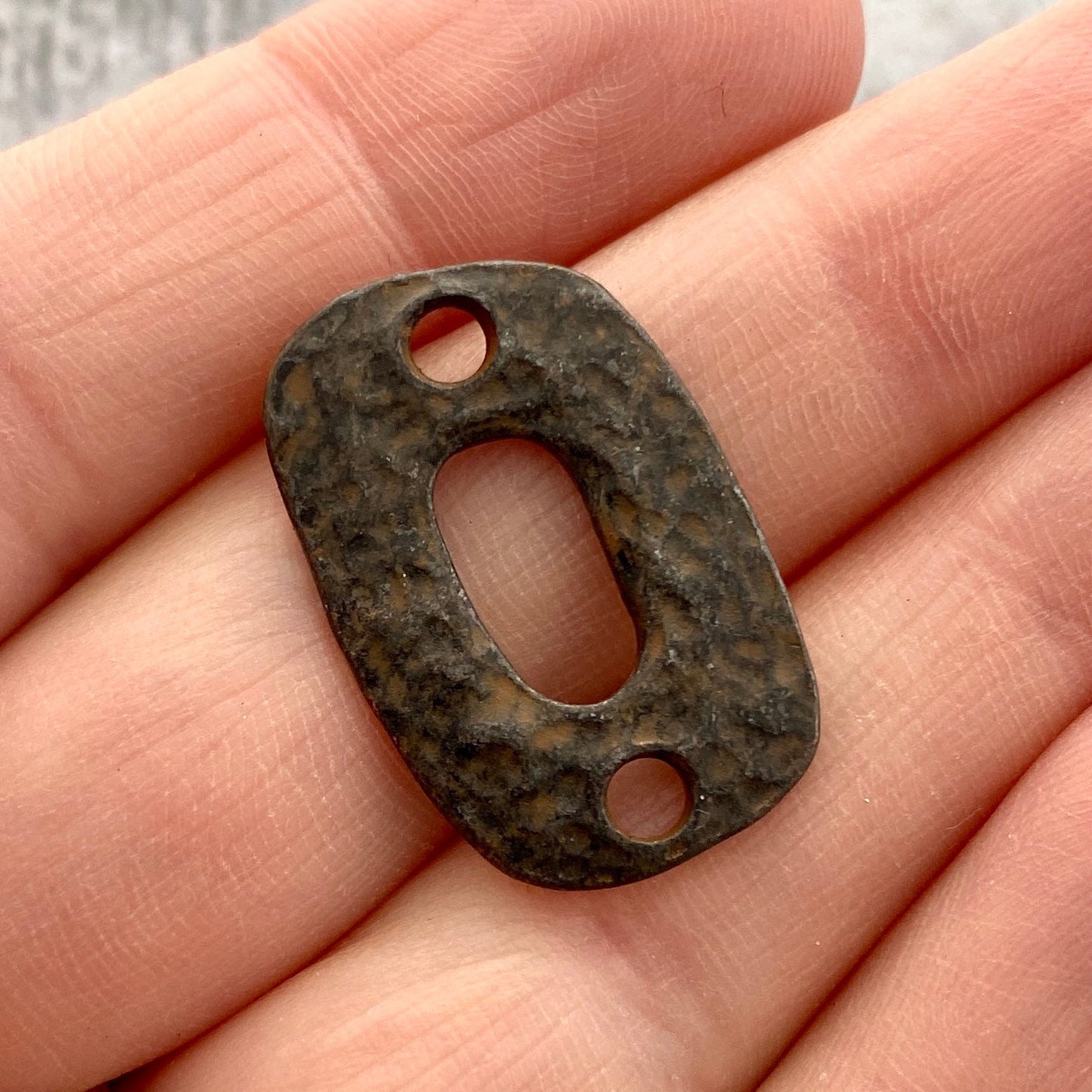 Hammered Oval Connector, Textured Rectangle Link, Antiqued Rustic Brown Jewelry Supply, BR-6206