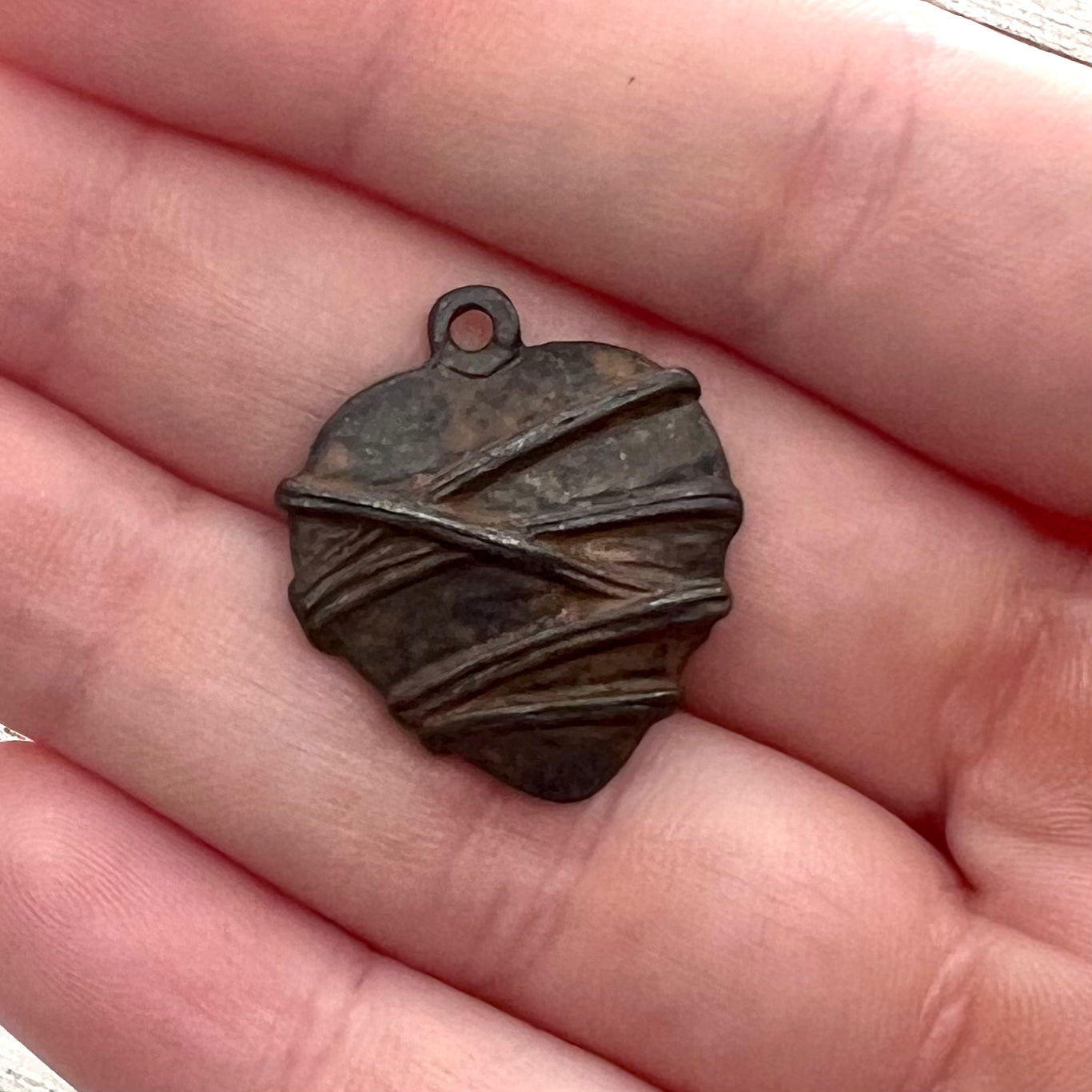 Dotted Heart Charm, Bumpy Rustic Brown Artisan Pendant, Jewelry Making, BR-6303