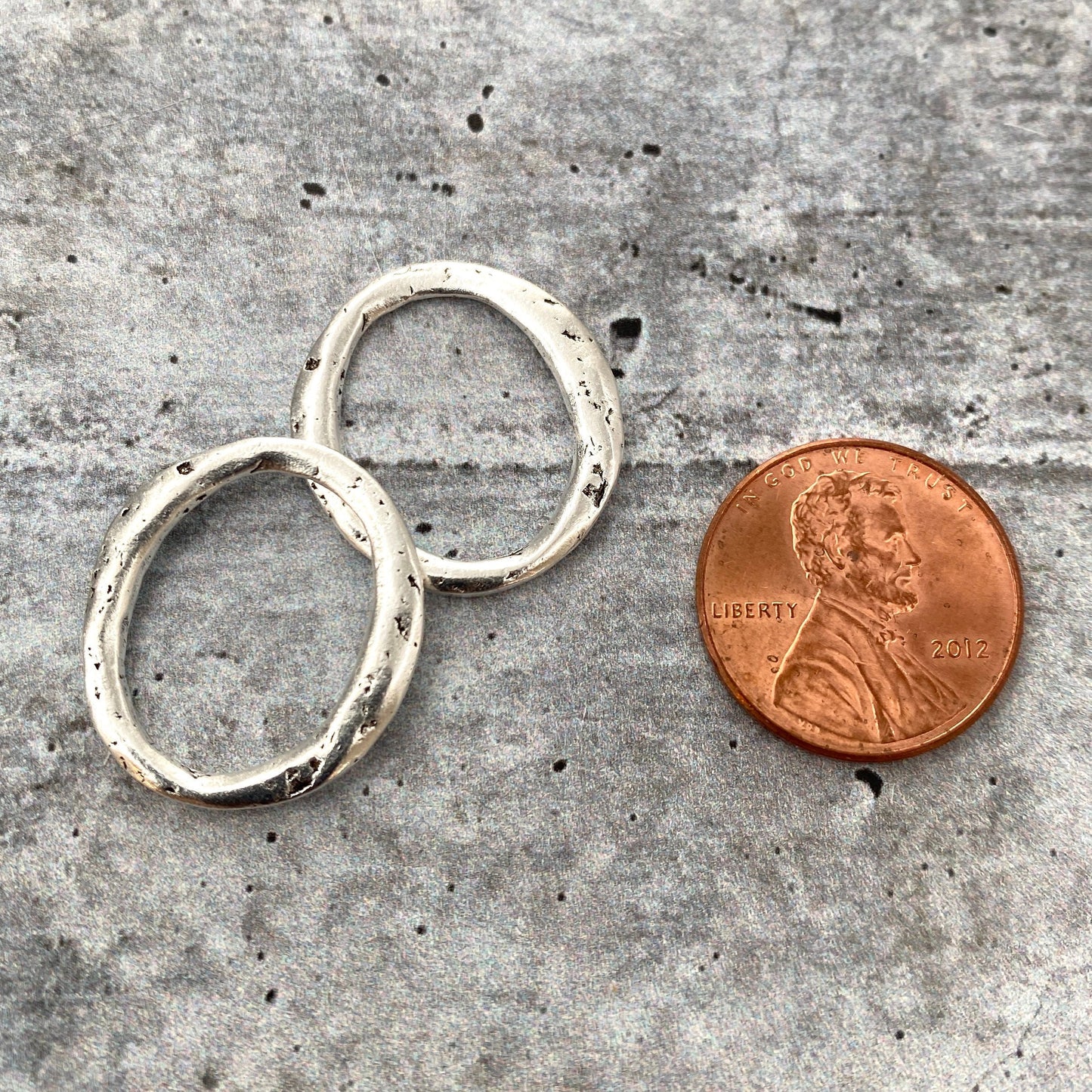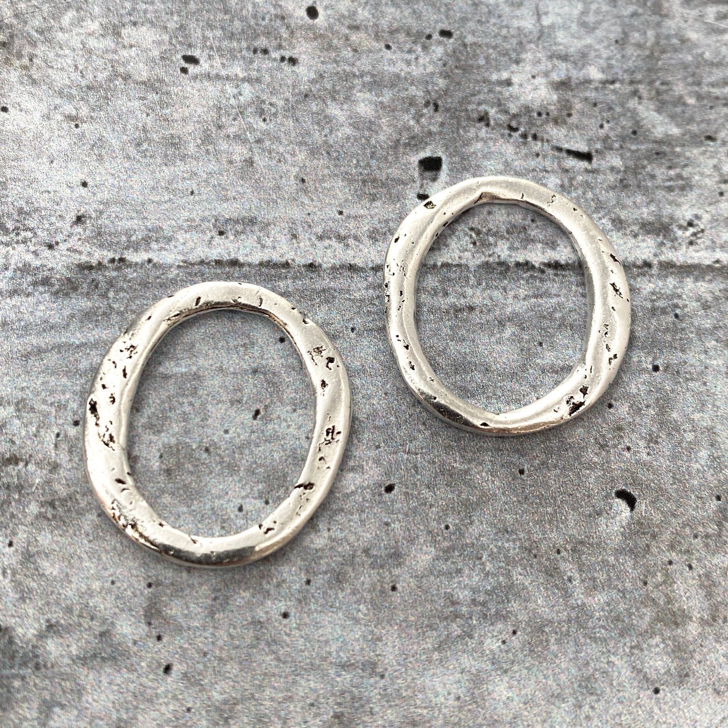 I love the addition of thoughtful findings in jewelry. Adding an unexpected connector hoop into a bracelet...using additional links and hoops and textured jump rings...These are all the things that help your designs stand out. These organic oval ring connectors will do just that for your creations. They are lightweight in order to work well for earrings.