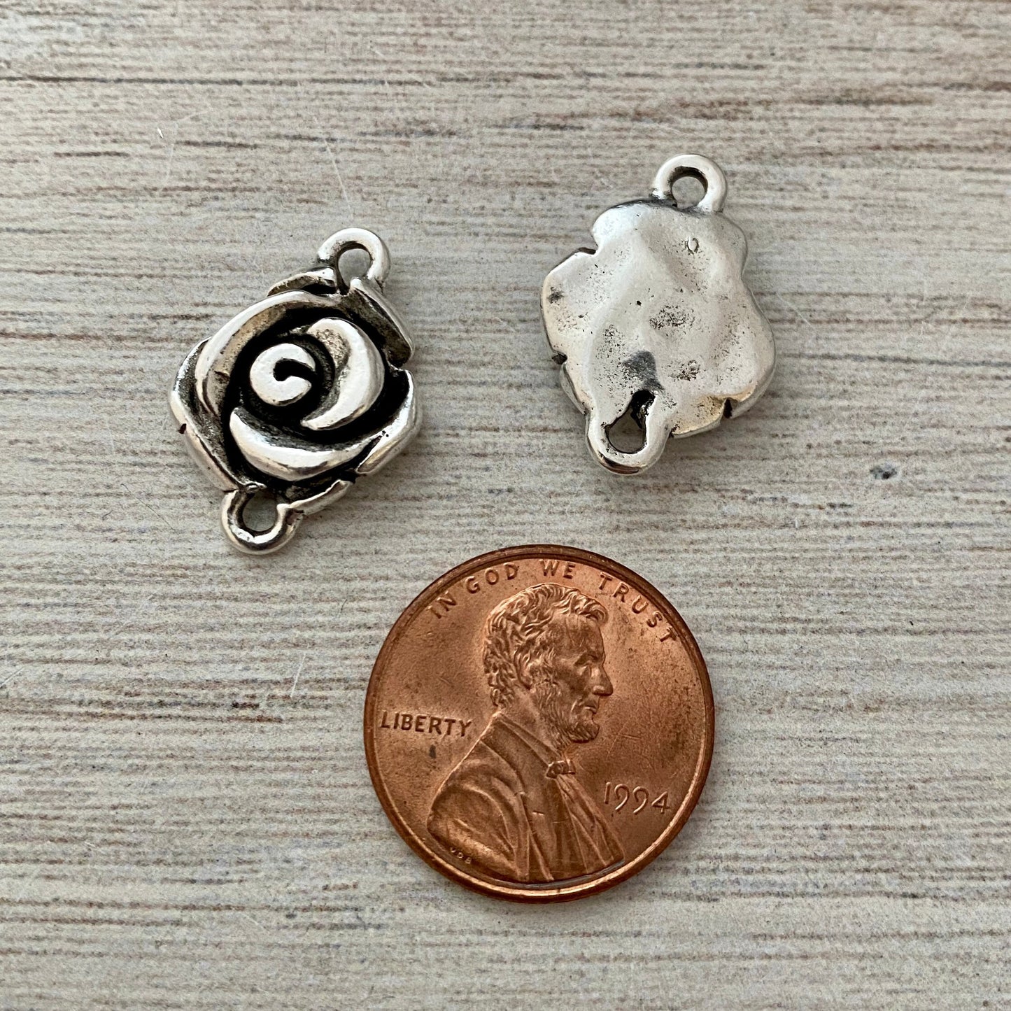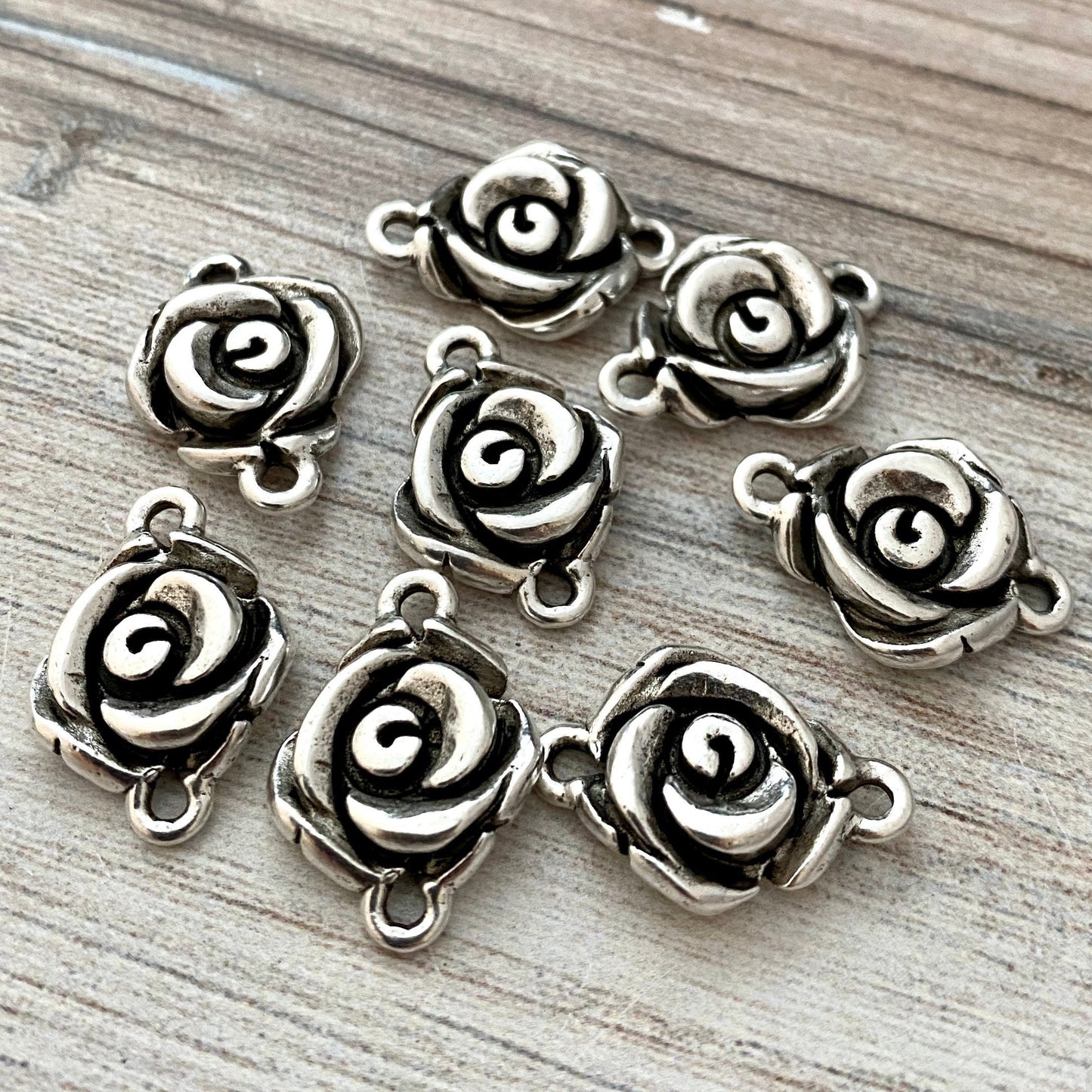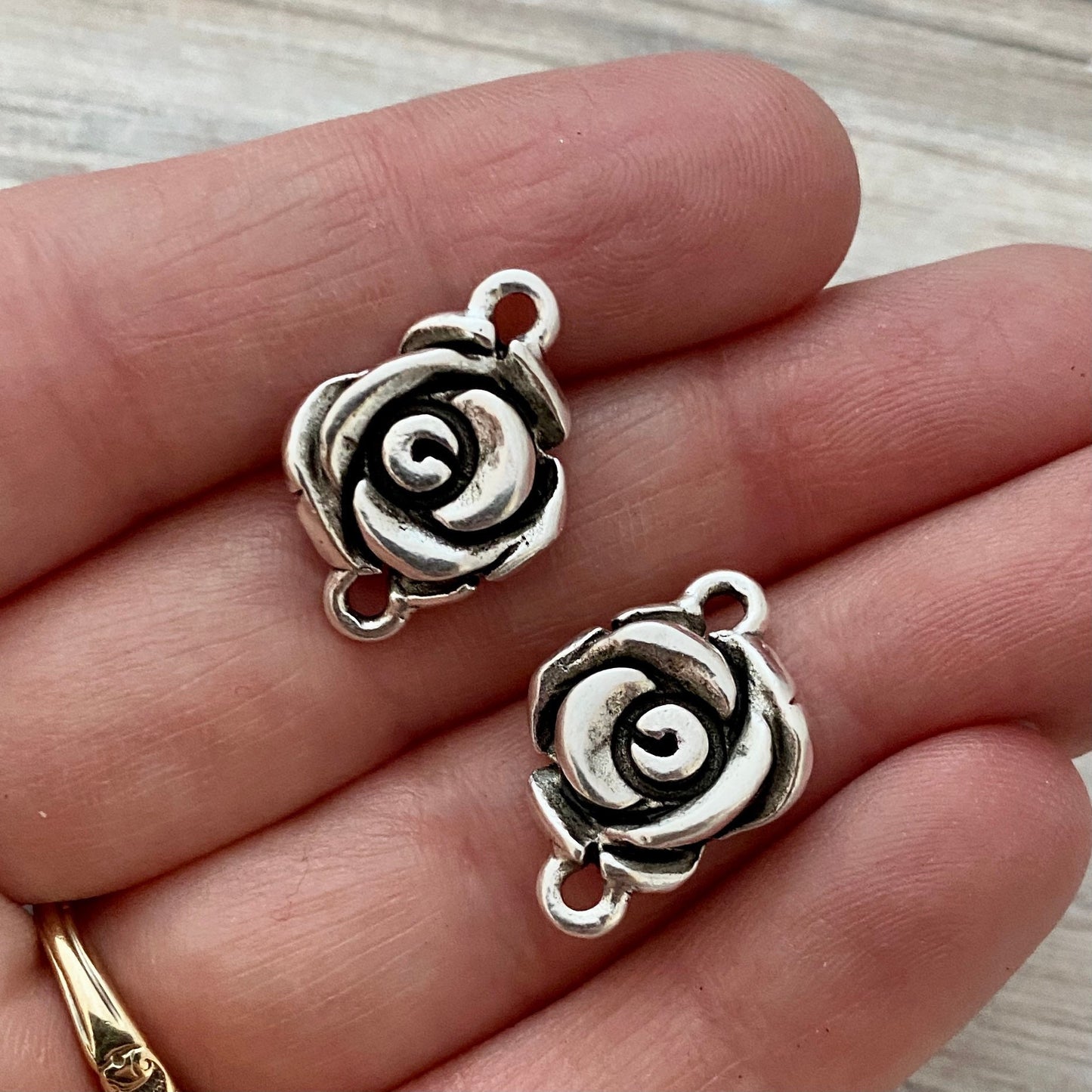This simple rose connector is great to have on hand because it can be used in any type of design. These have a substantial weight but are not too heavy for earrings.