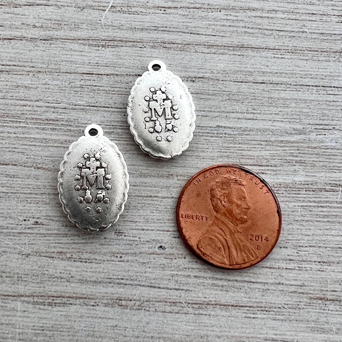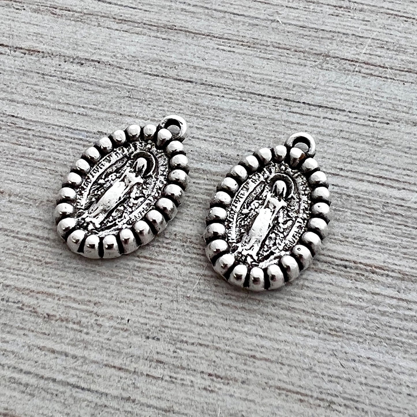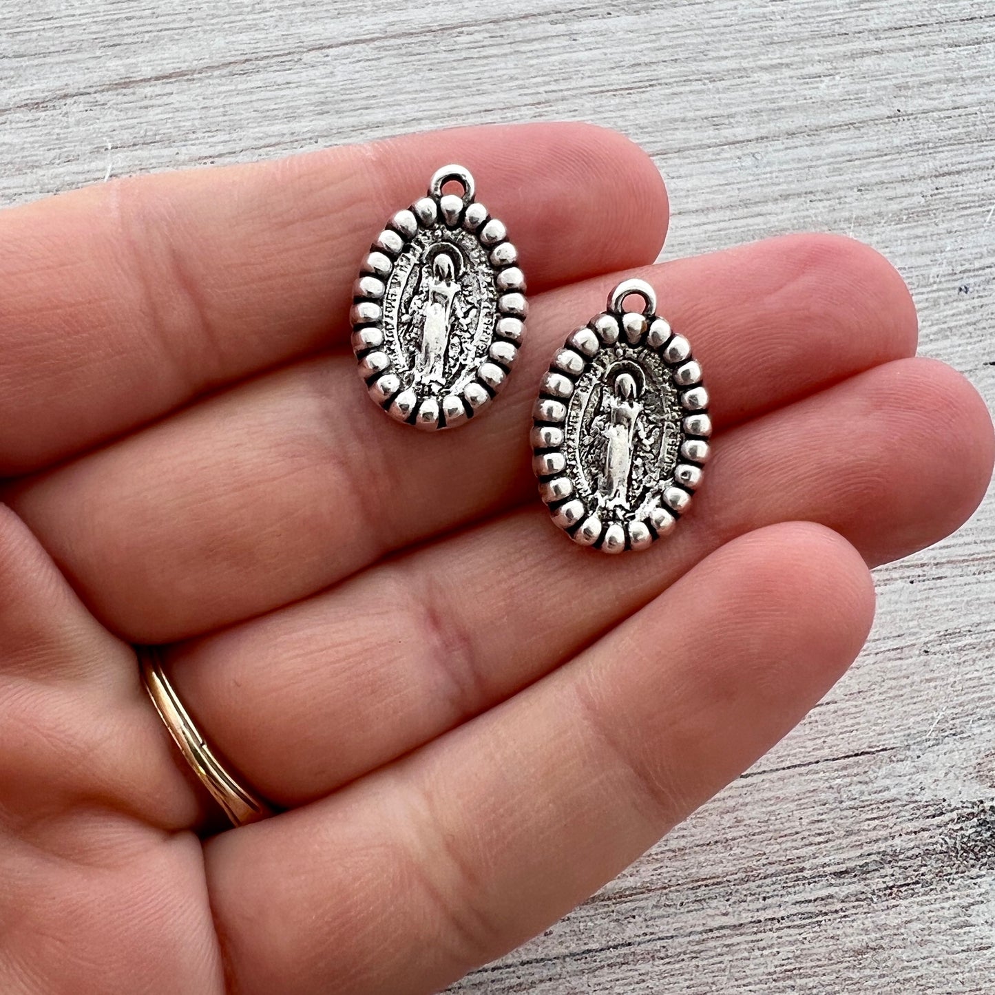 This lovely, small oval Miraculous Medal features Mary surrounded by a dotted frame. It's ideal for all types of jewelry.