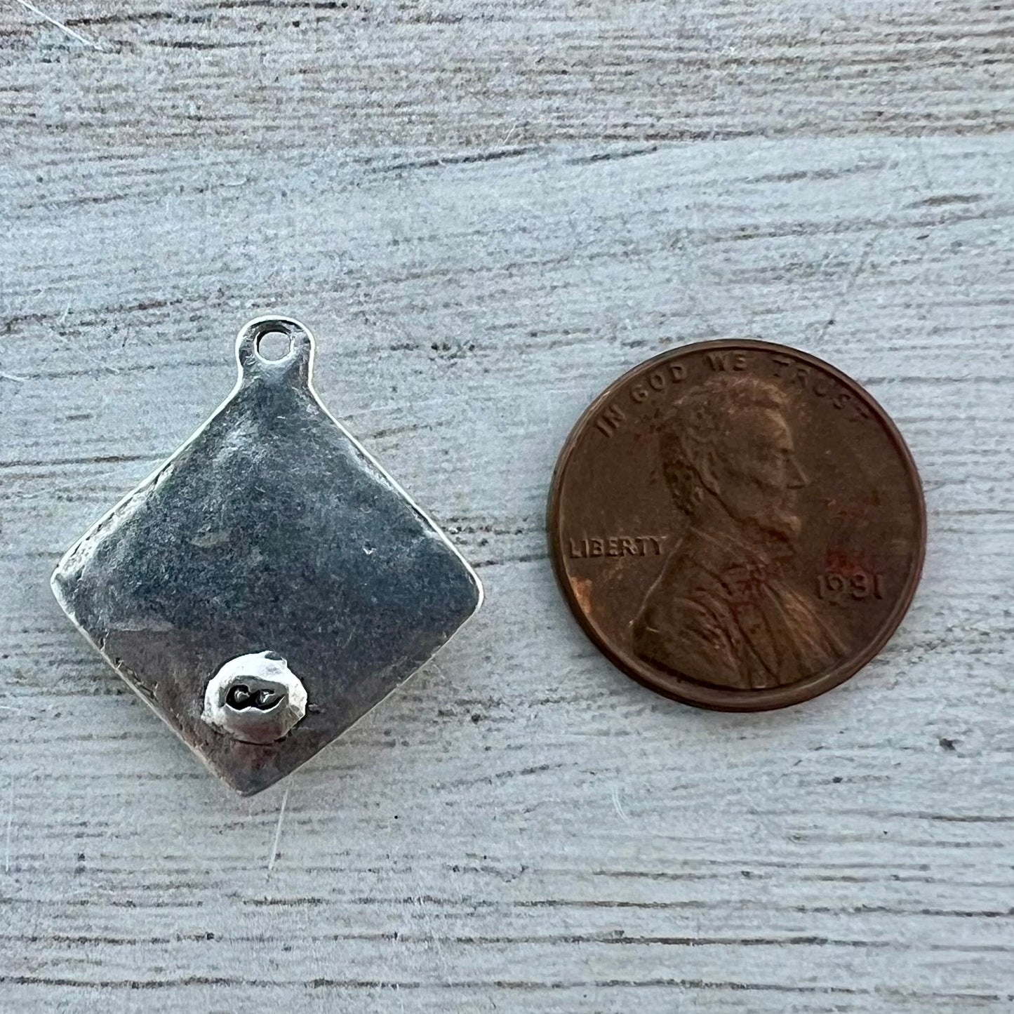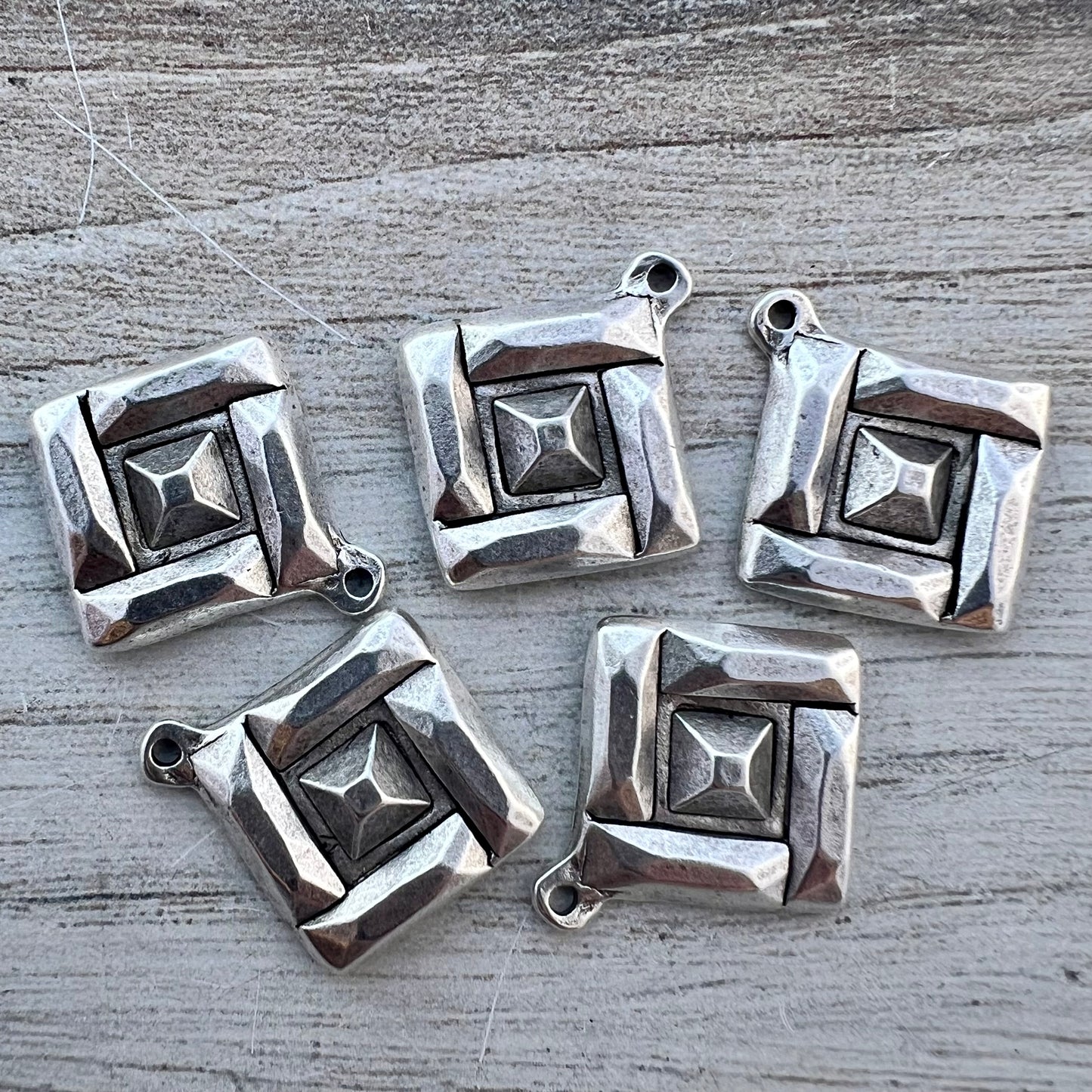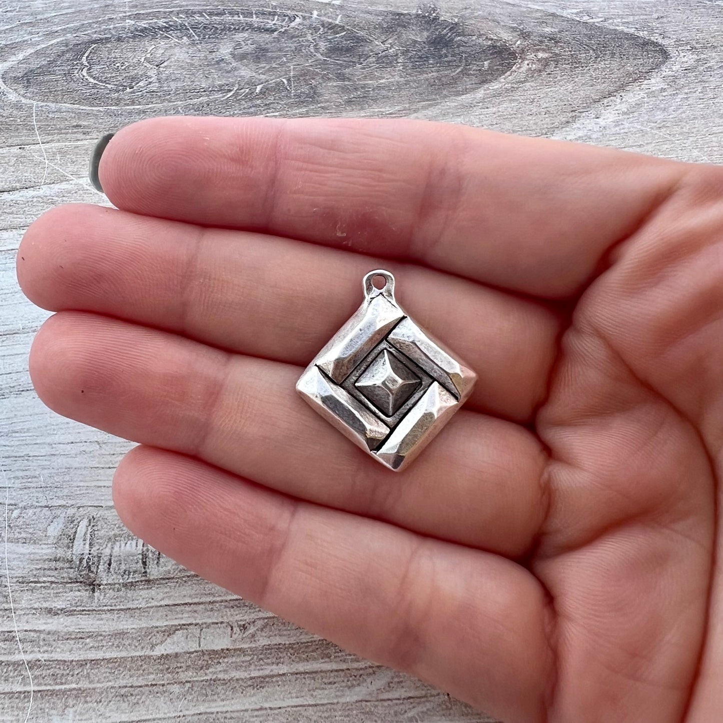 This abstract, diamond-shaped pendant boasts a sleek design that is ideal for earrings, bracelets, or necklaces.