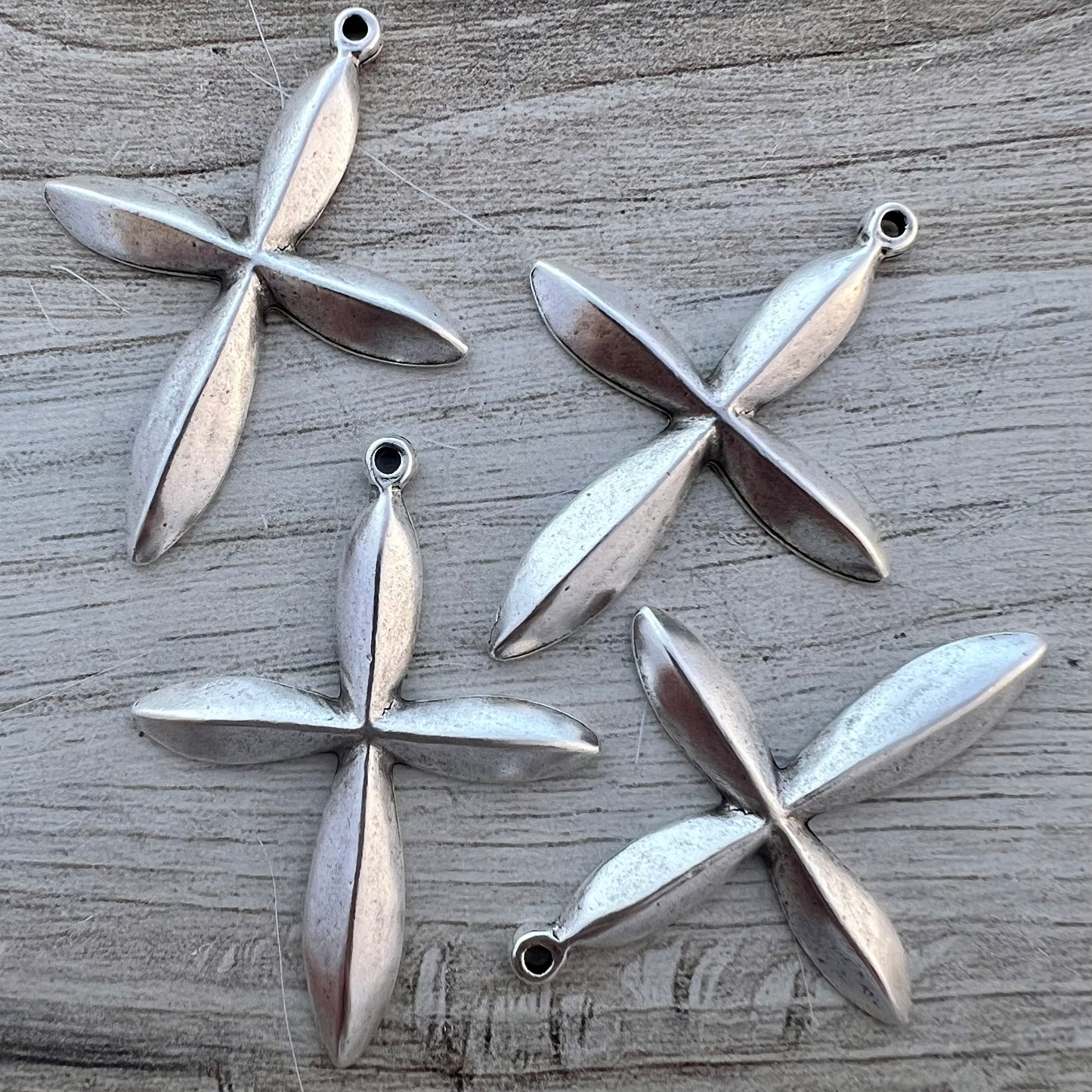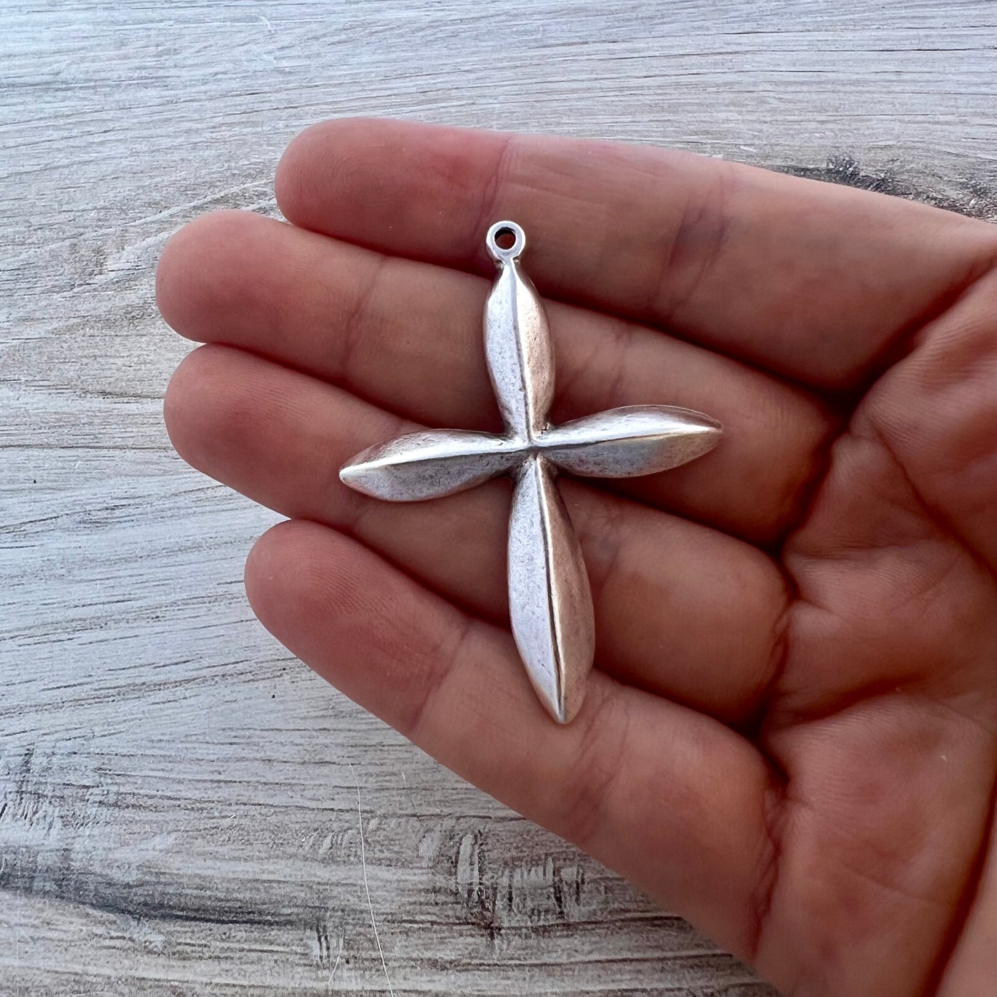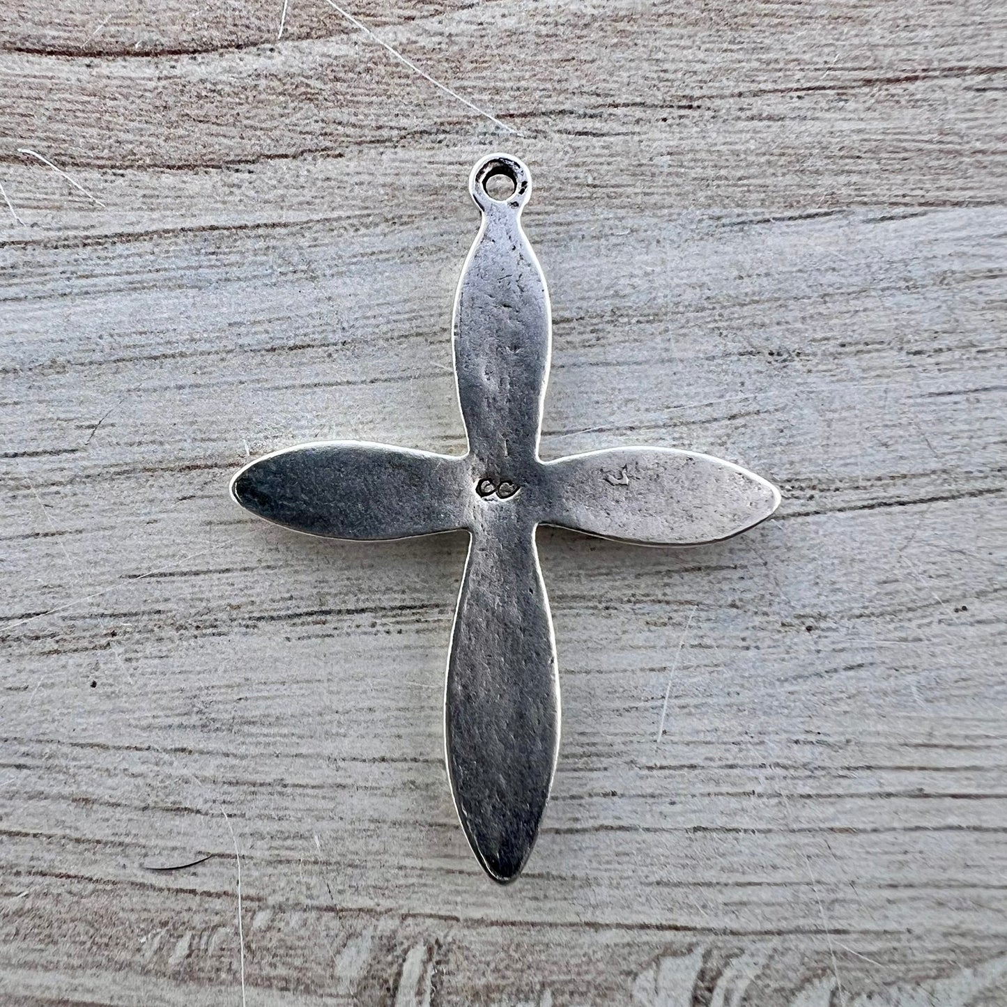 This charming, contemporary cross is reminiscent of flower petals. It can be used for a beautiful necklace or bracelet.