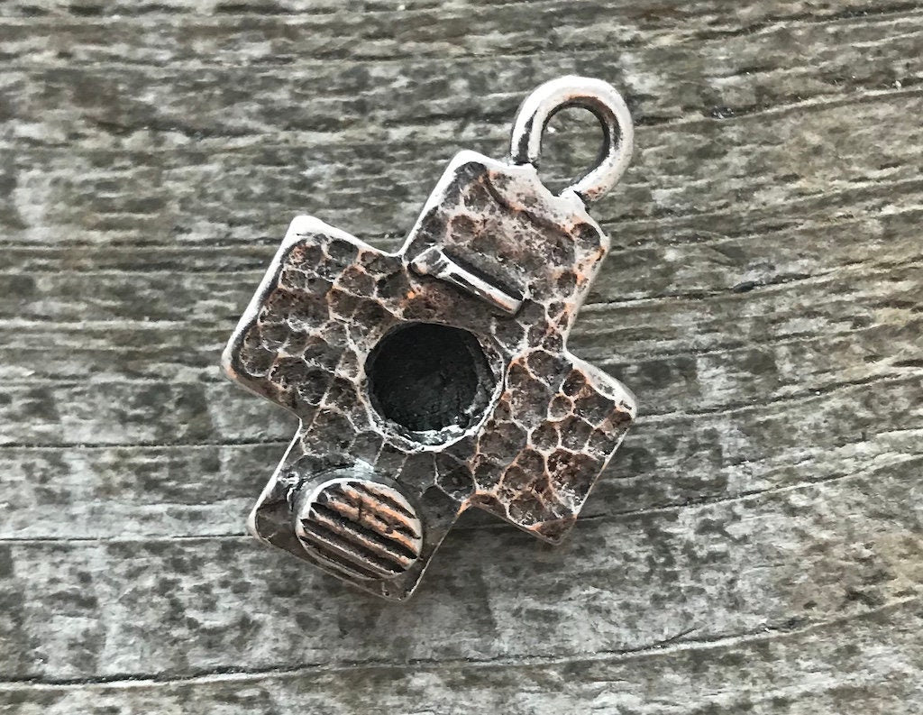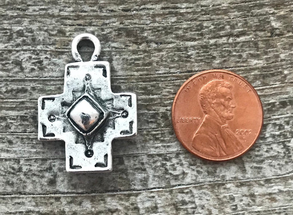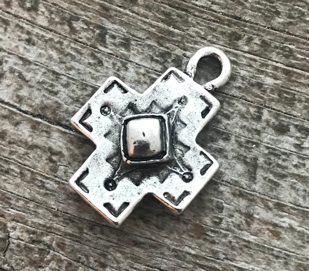 This cross is a great size and weight for a necklace or earrings. It has a wonderful design with a touch of a southwest flair.