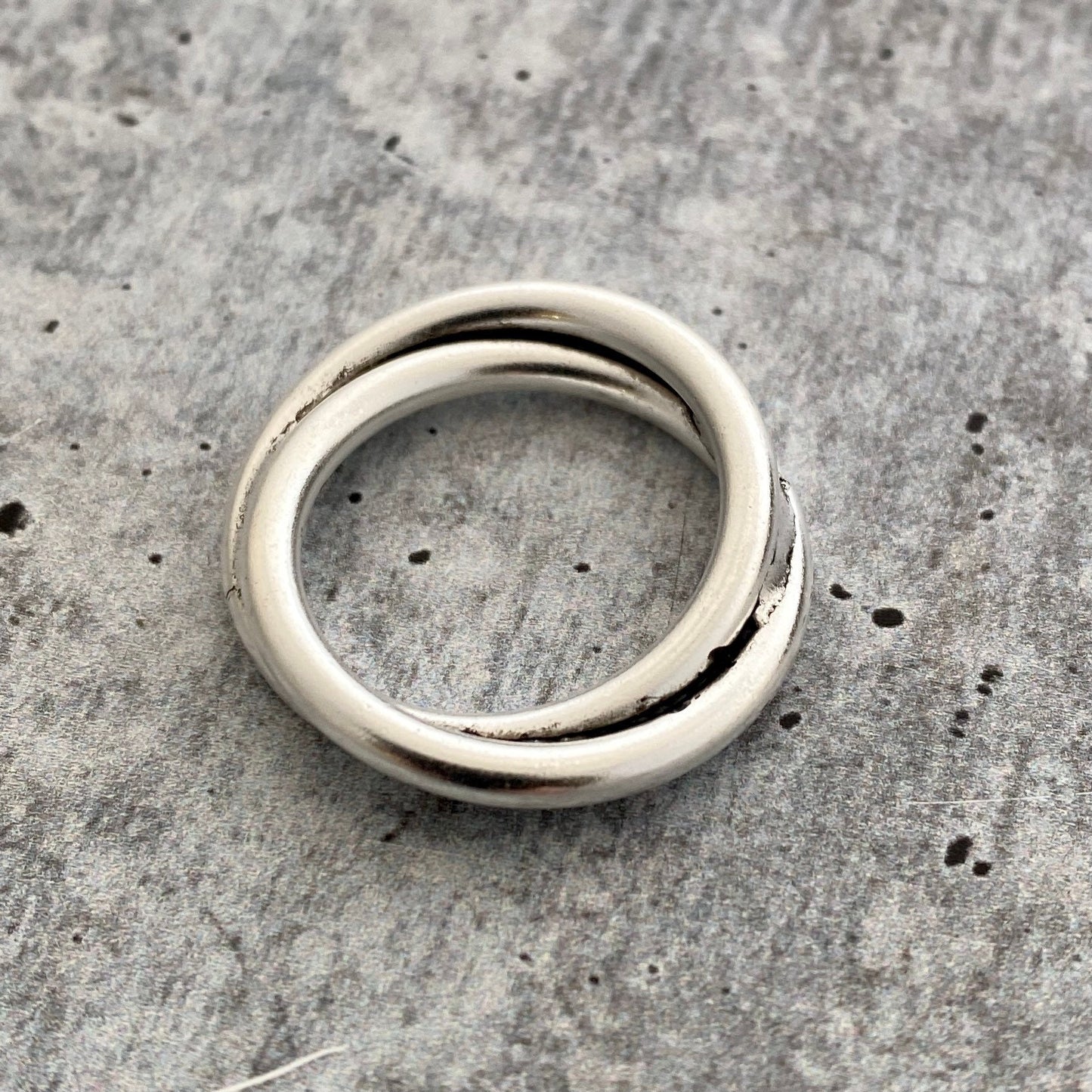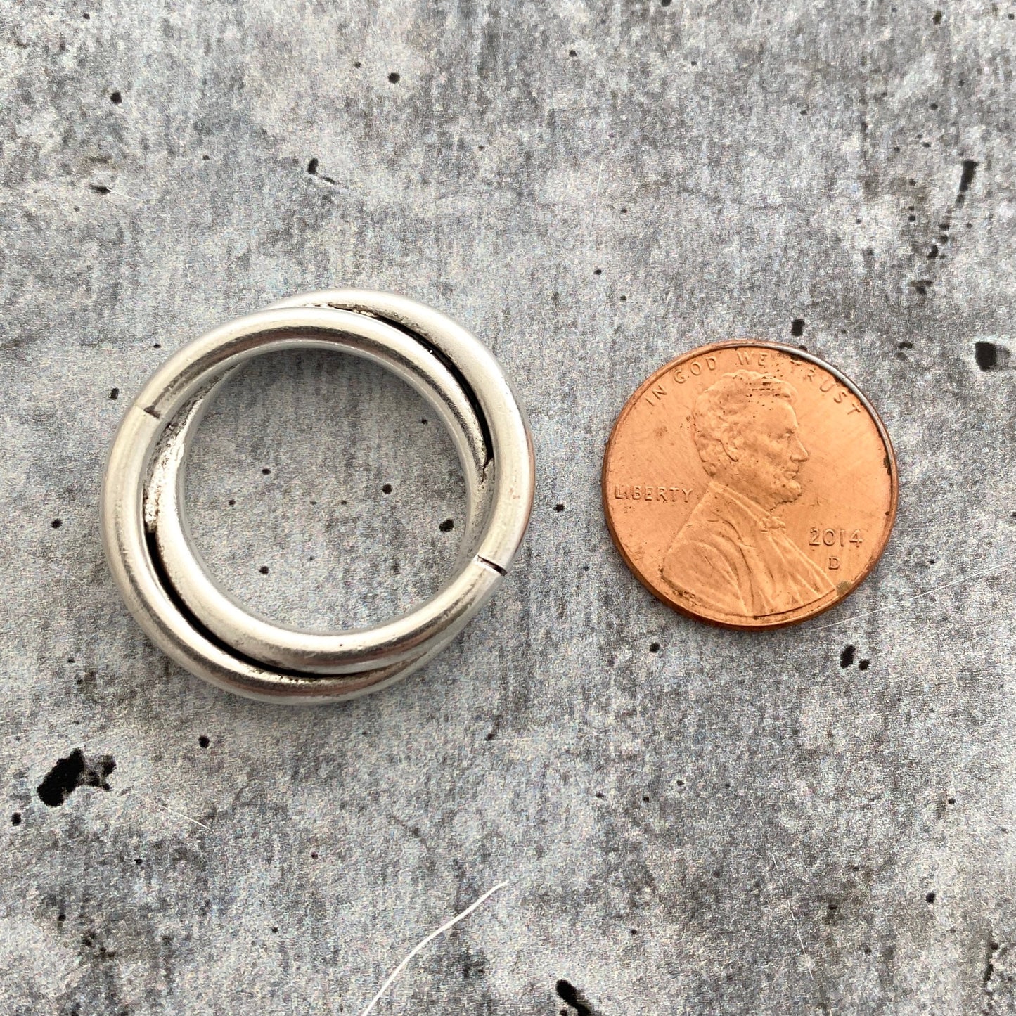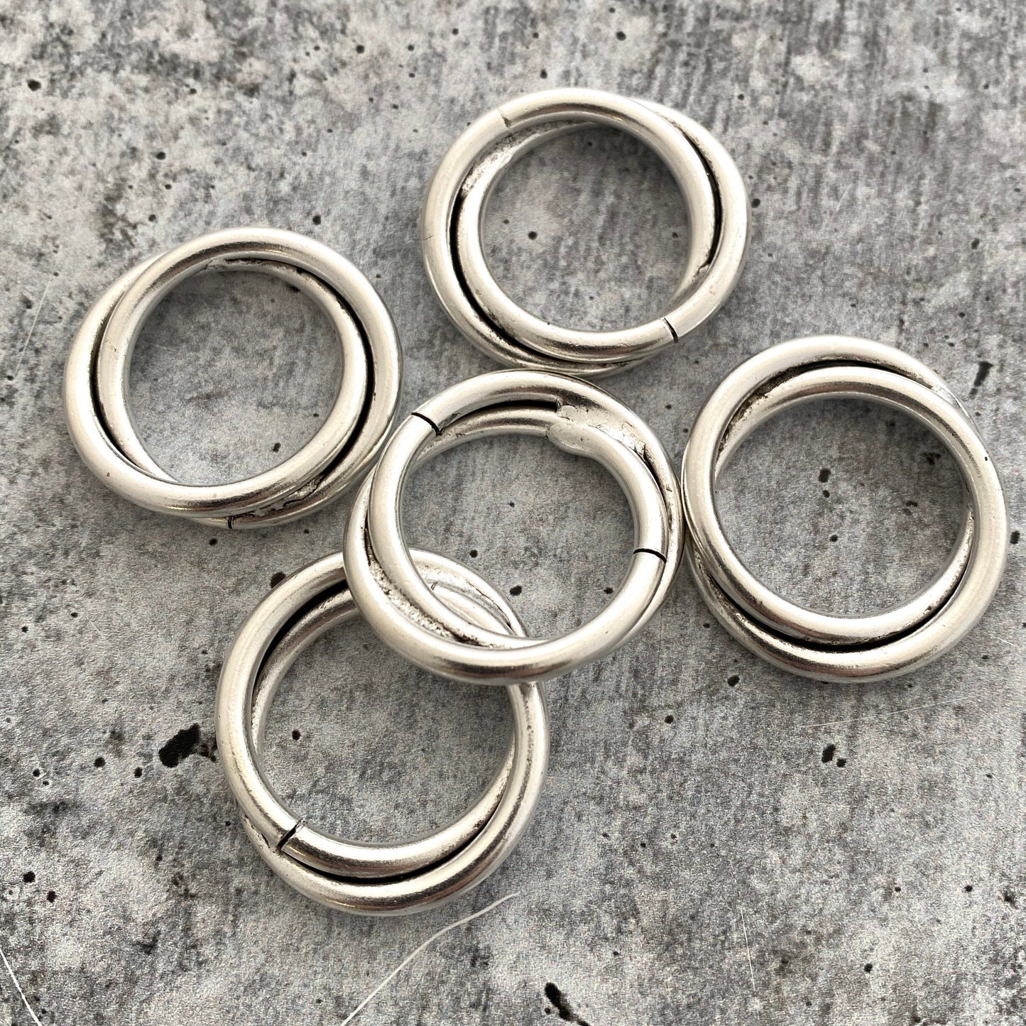 This double link ring is made from two soldered brass rings. This makes a great focal point by itself, or use it as a connector. (This does not open like a jump ring.)