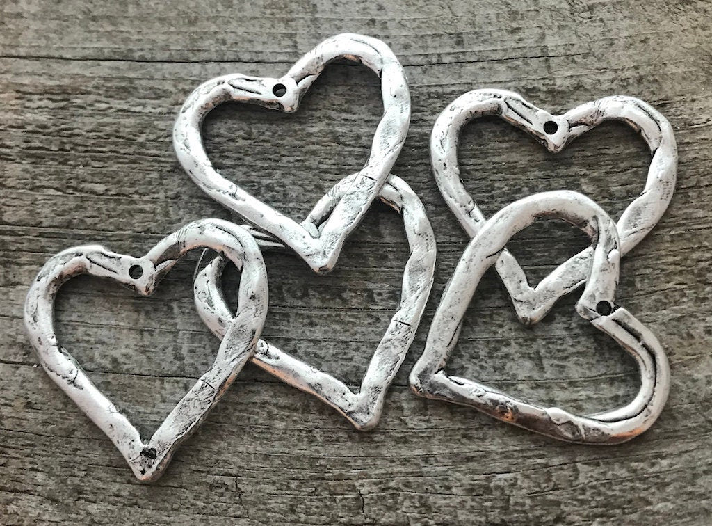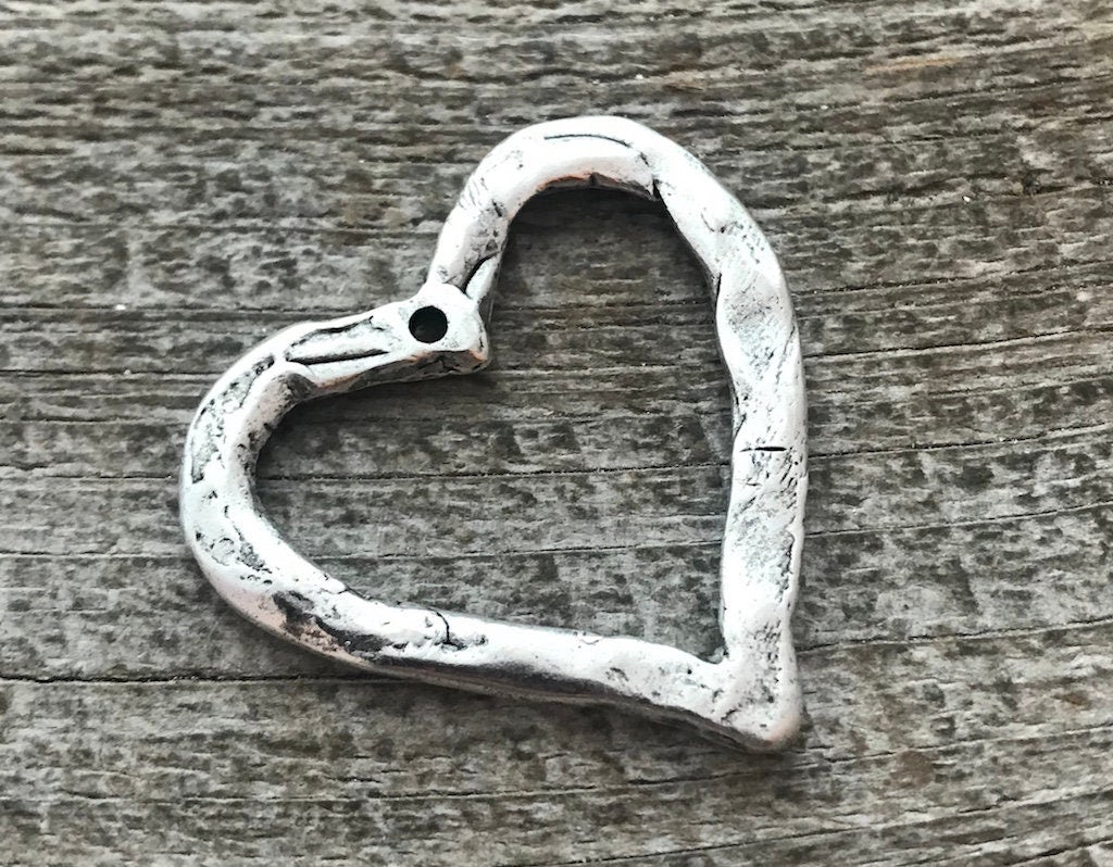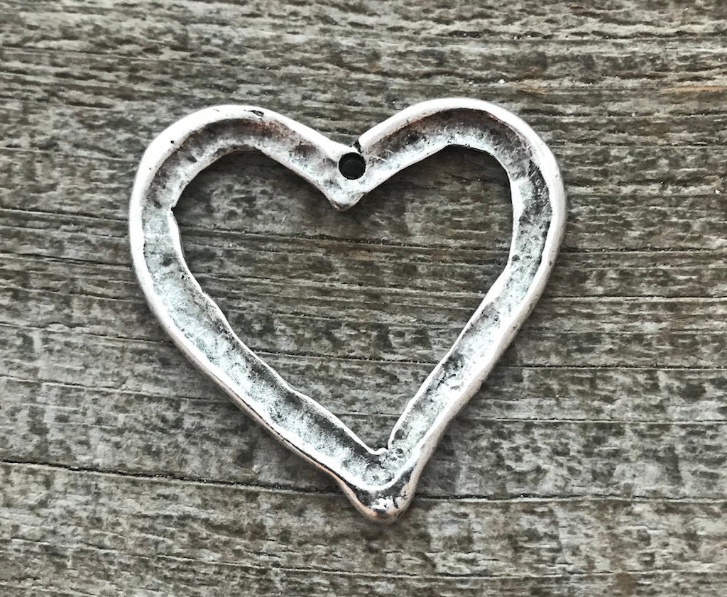 Heart Pendant, Silver Large Open Heart, Heart Love Charm, Ornament, Hammered, Jewelry Supplies, Carson's Cove, SL-6024