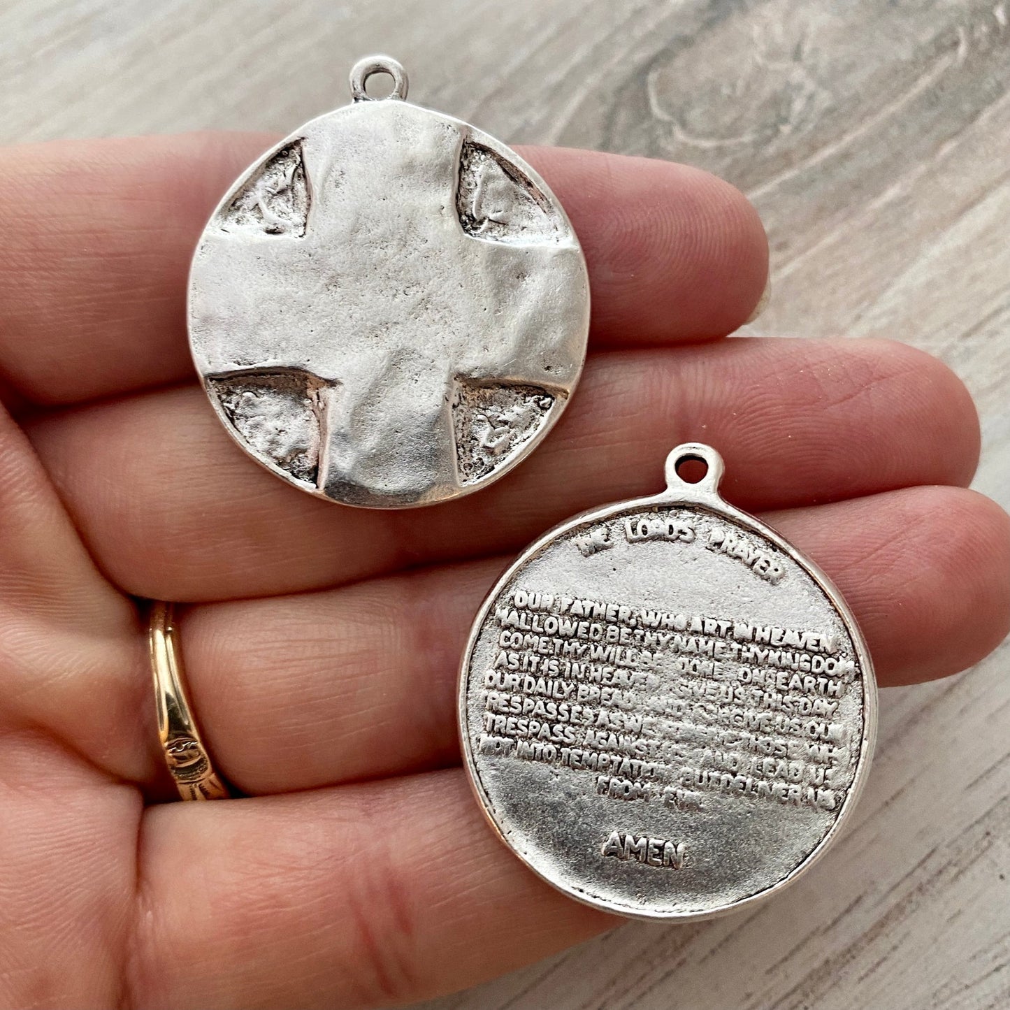 Lord's Prayer Religious Silver Medal, Jewelry Making, Communion, SL-6175
