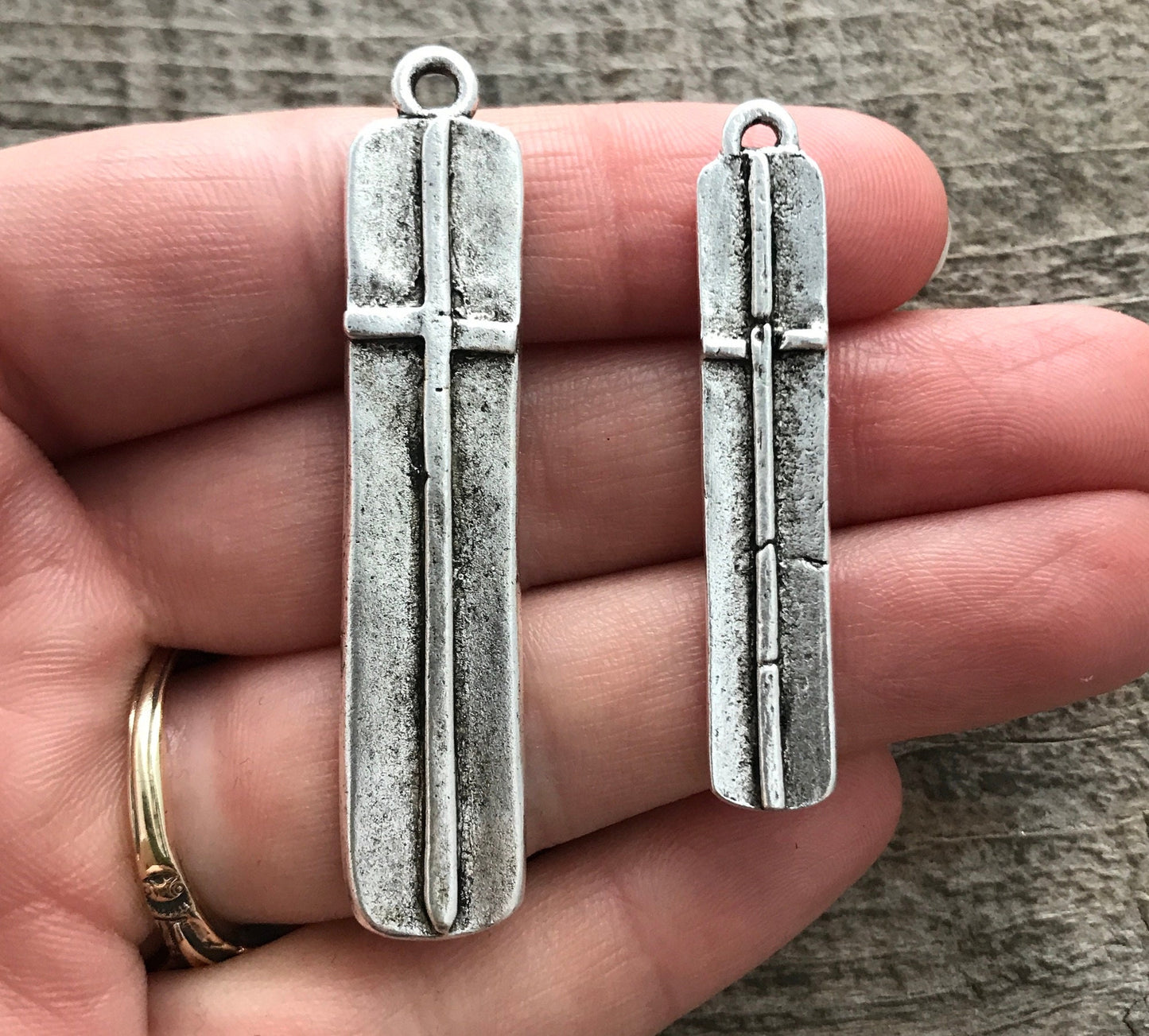 This is the smaller version of the beloved cross bar. This lovely simple cross is modern, with an artisan touch. These make wonderful earrings, as well a gorgeous necklace pendants. The last picture shows the size comparison to the larger cross bar.