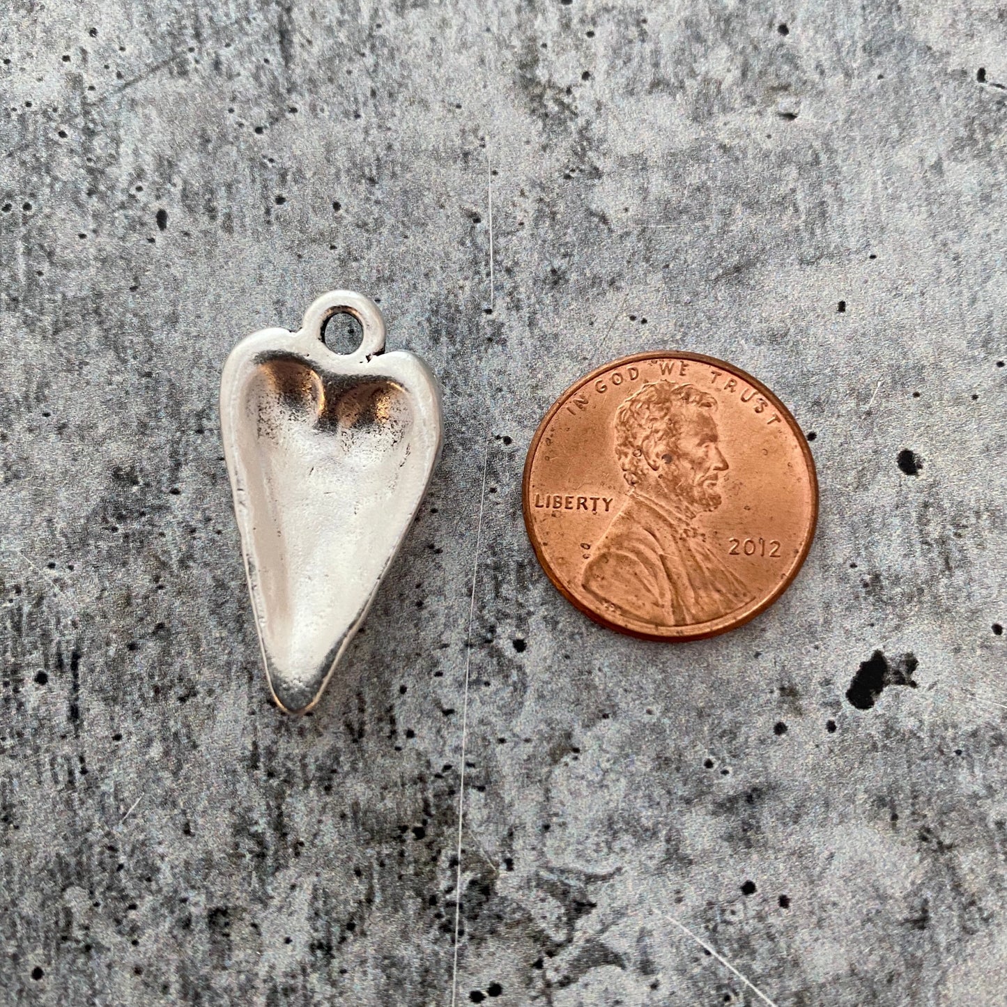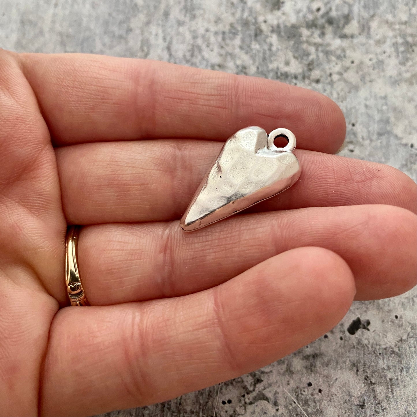 This little hammered heart charm is quite simple, but it really stands out. The texture, shape, and size make it perfect for earrings, bracelets, or necklaces.