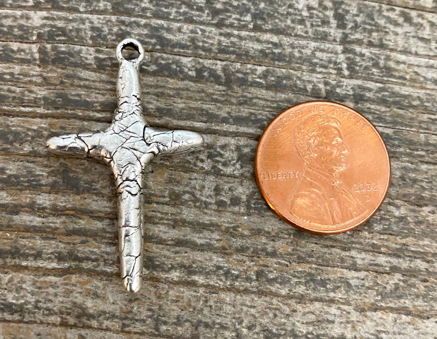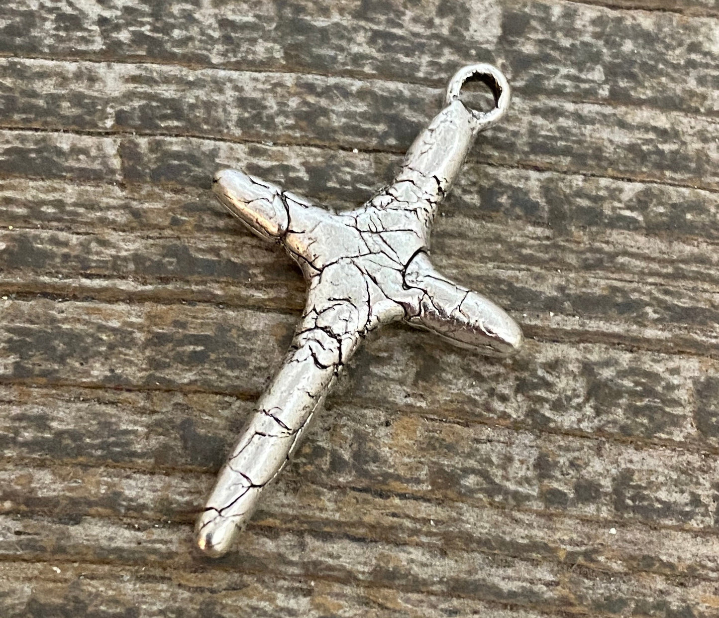 This crackled cross is gorgeous! Either side can be worn facing front. These make wonderful earrings, as well a gorgeous necklace pendant or bracelet charm.