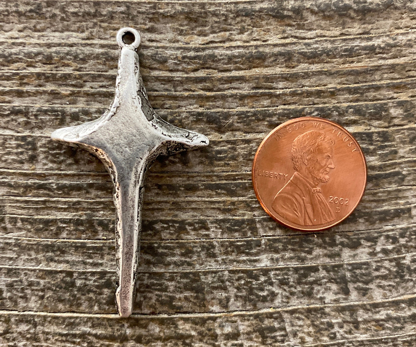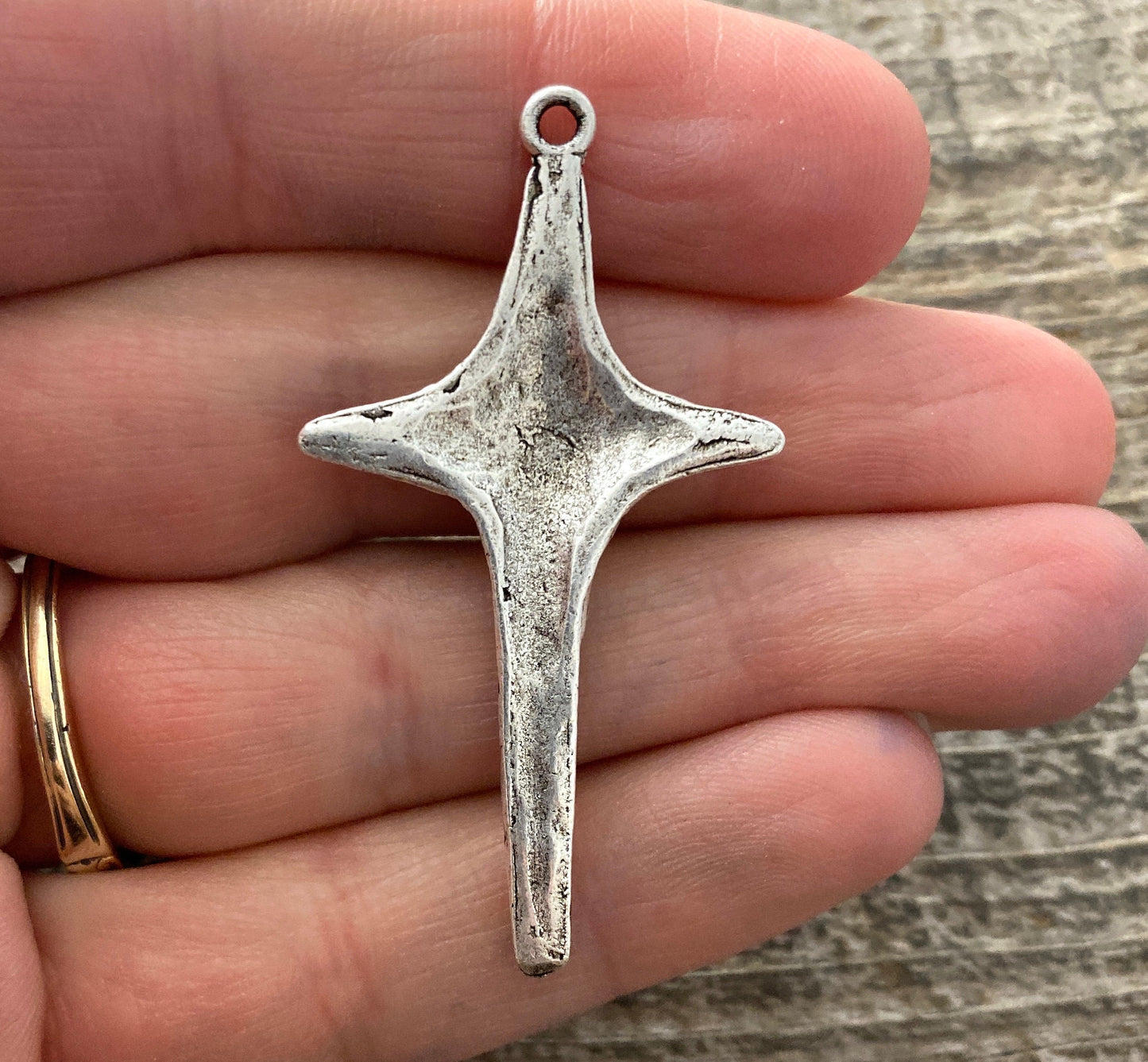 This lovely simple cross is modern, as well as whimsical. The middle is reminiscent of a star. These make wonderful earrings, as well a gorgeous necklace pendant.