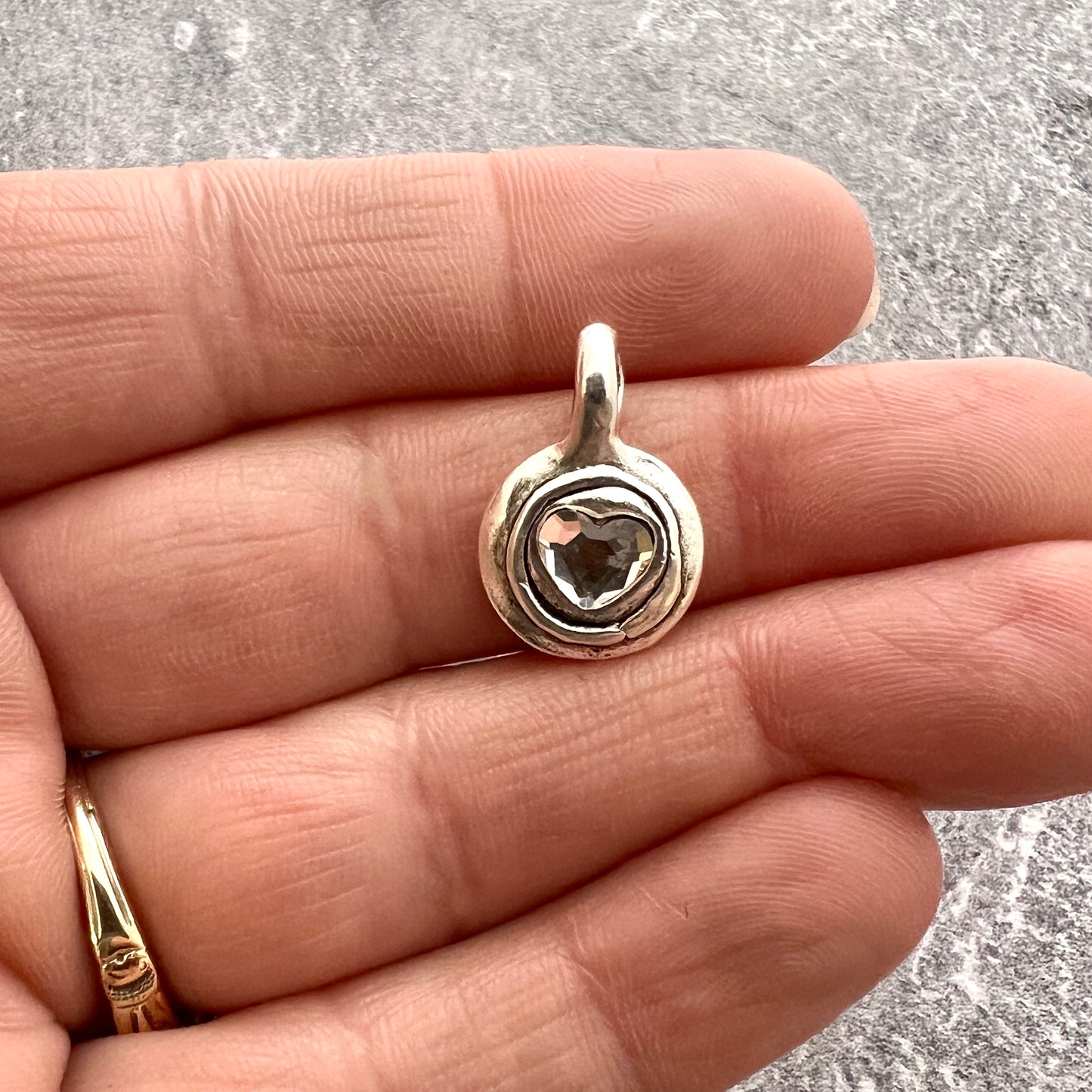 The small rhinestone / crystal heart in this setting provides a modest touch of sparkle to your creations. It slides on perfectly when making a beaded stretch bracelet; or use a jump ring to connect it to larger chain.