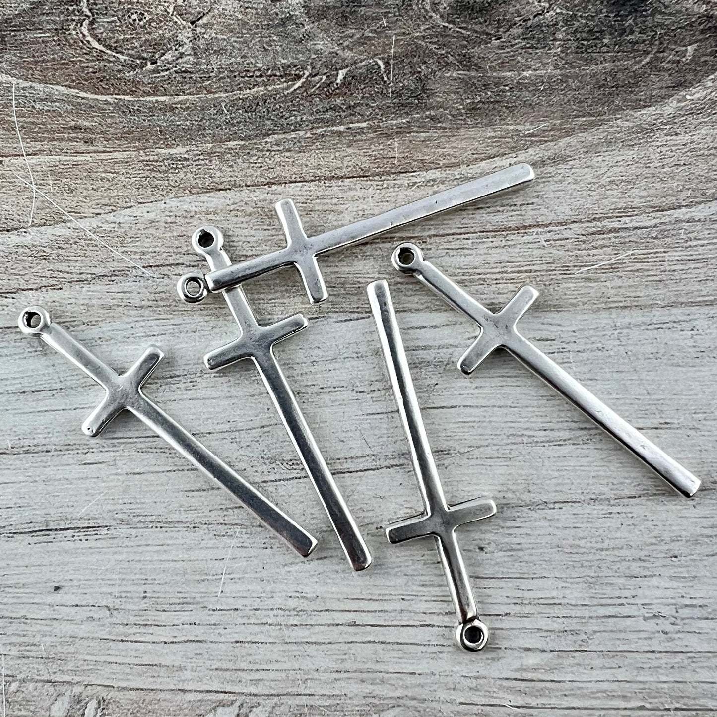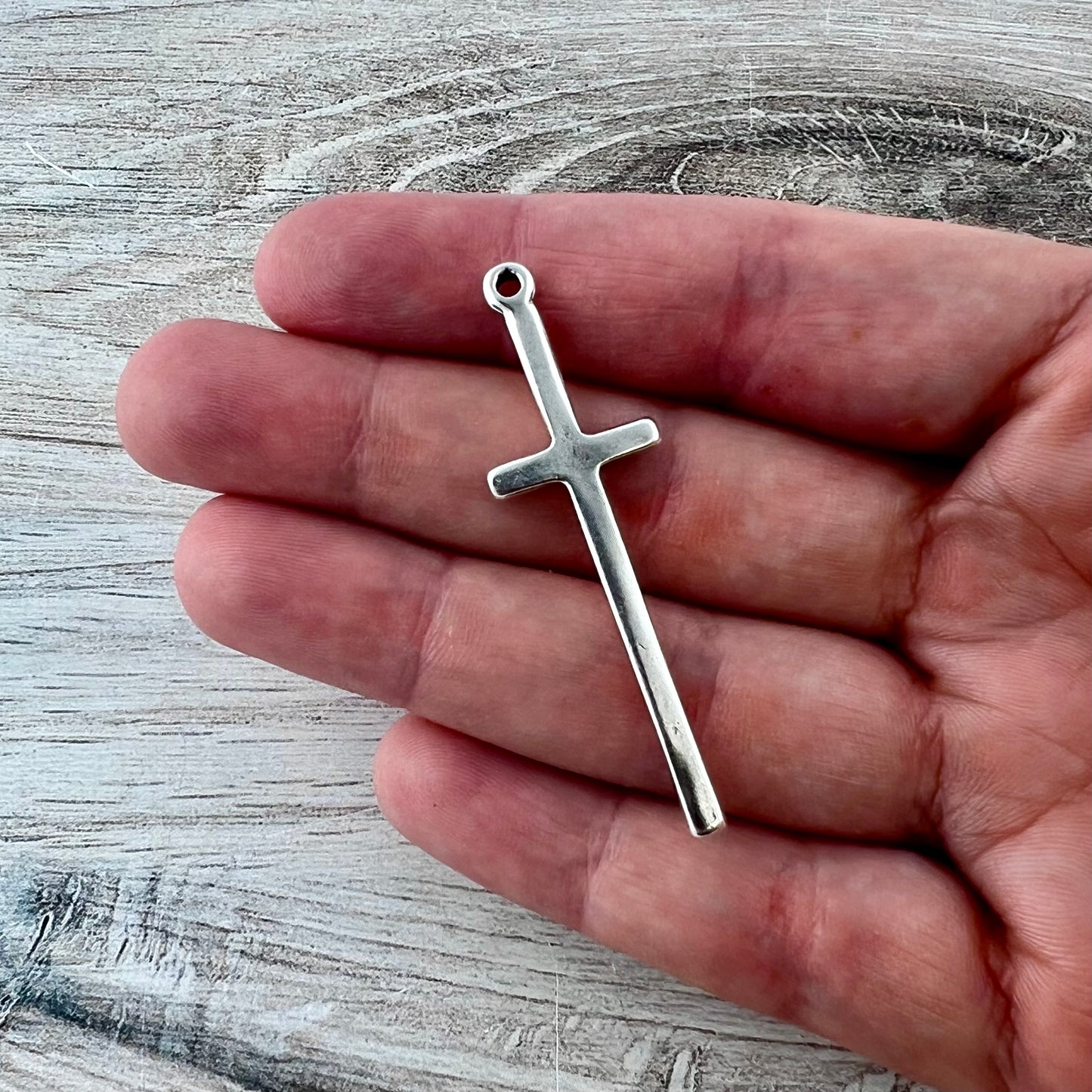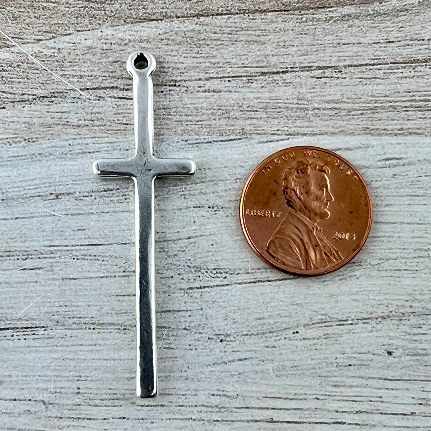 Cross Pendant, Silver Skinny Stick Cross, Modern Thin Artisan Charm, Carson's Cove, SL-6302