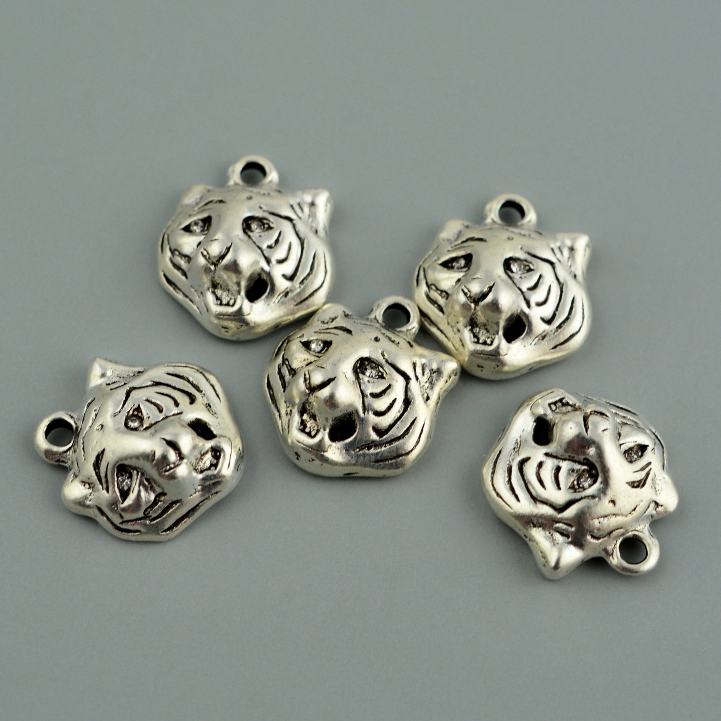 Let this tiger charm, accented with sparkling rhinestone eyes, add some wild elegance to any jewelry project. Perfect as a mascot or a unique animal-themed accessory, it offers a charming detail that enhances bracelets, necklaces, or keychains. Crafted for jewelry makers seeking a distinctive and optimistic design element.