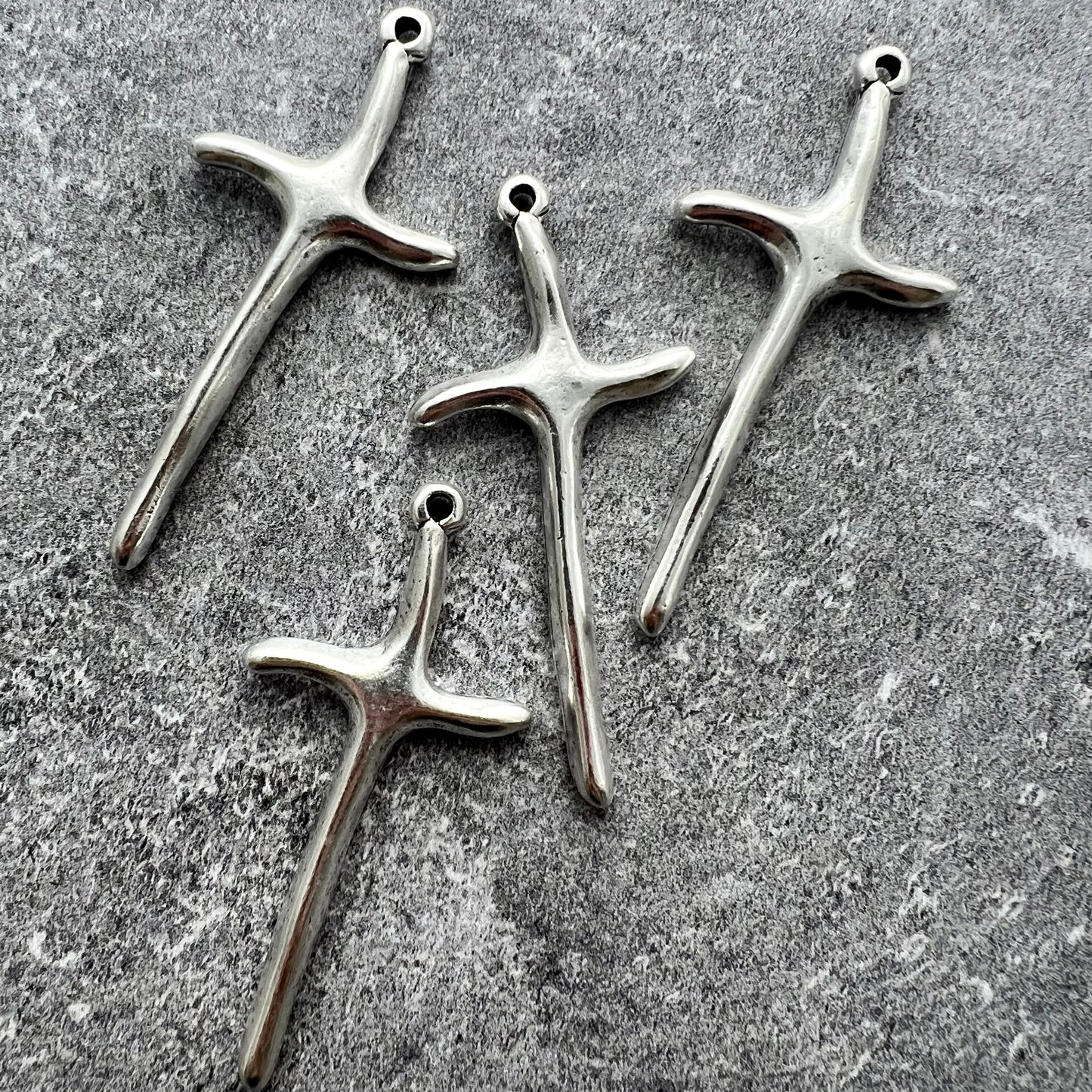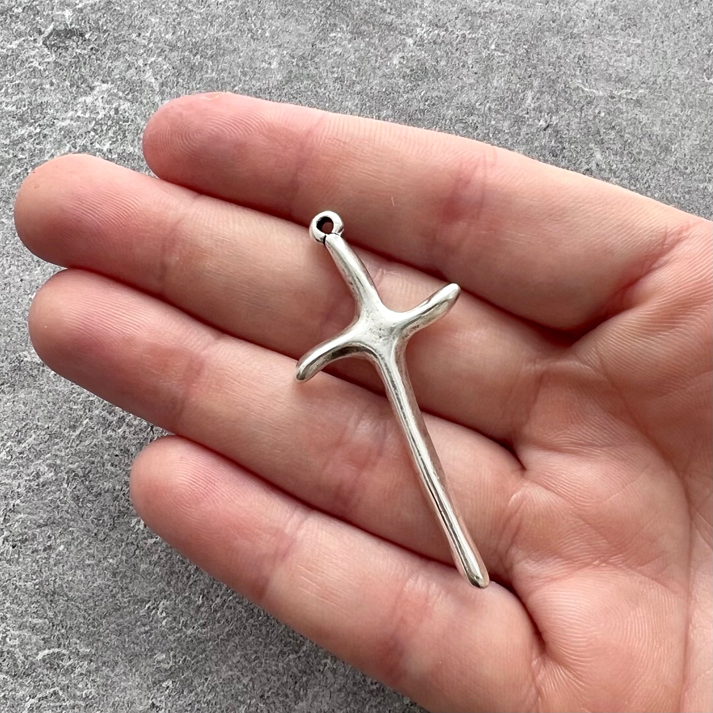 This wavy cross is modern, as well as whimsical. These make wonderful earrings, as well a gorgeous necklace pendant.