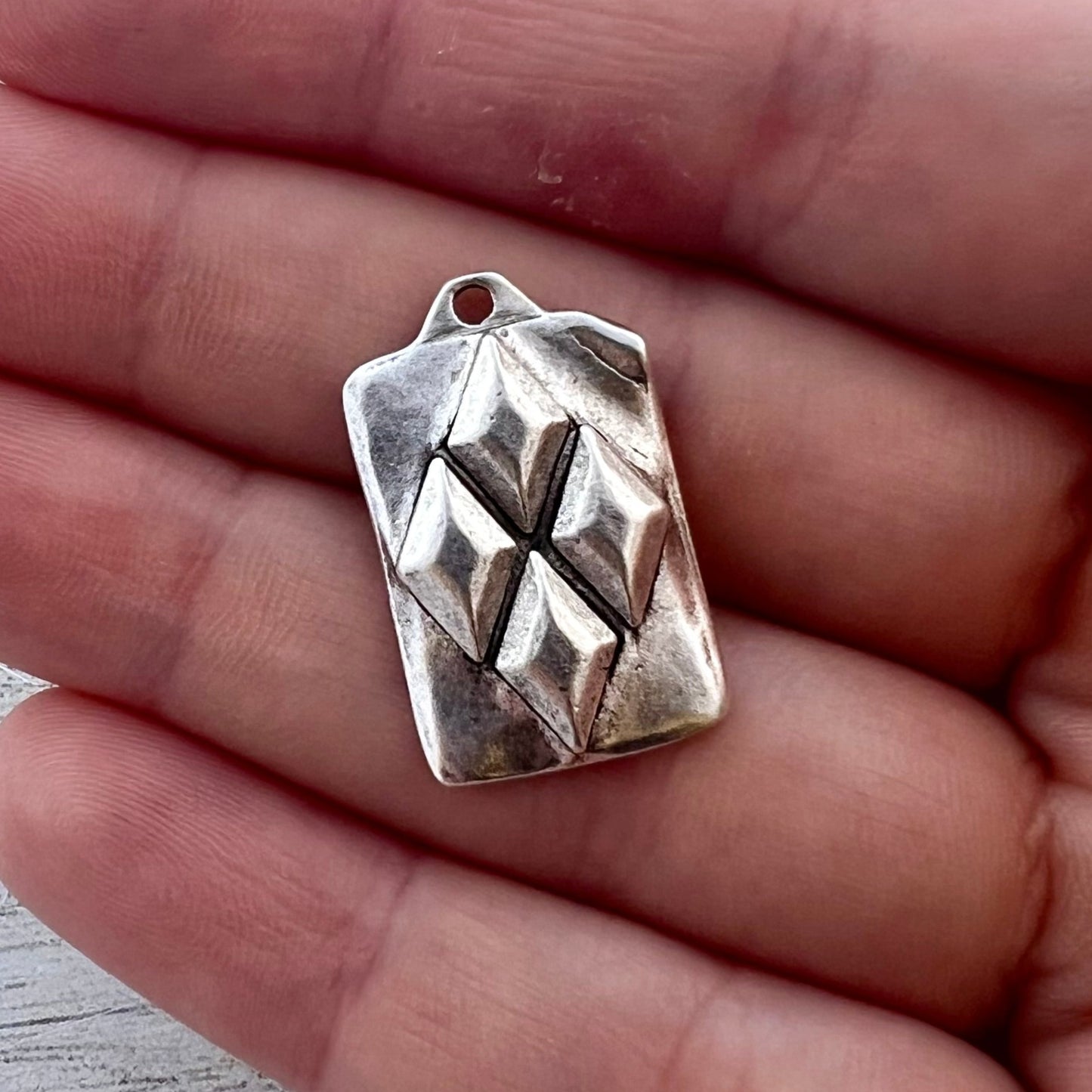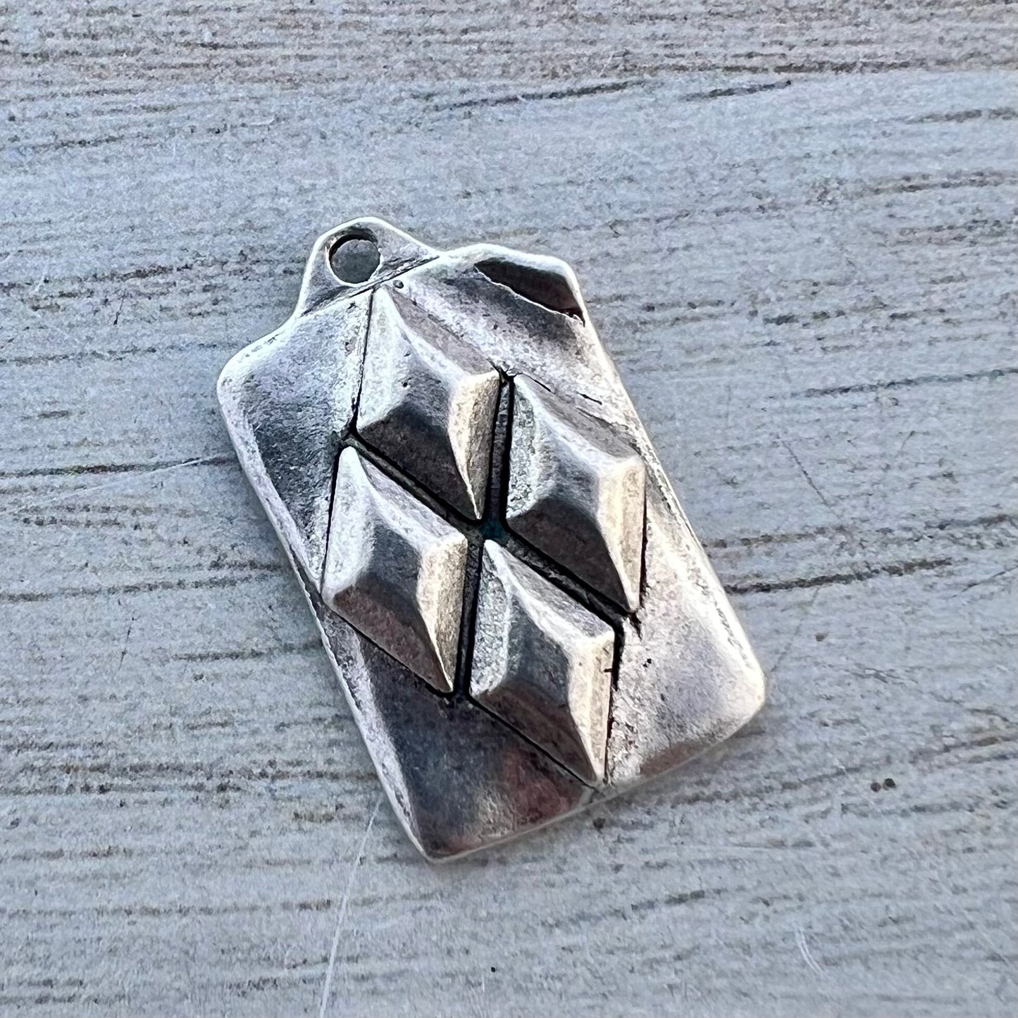 Diamond Pattern Charm, Geometrical Pendant, Antiqued Silver Abstract Pendant, Artisan Jewelry Components Supplies, SL-6291