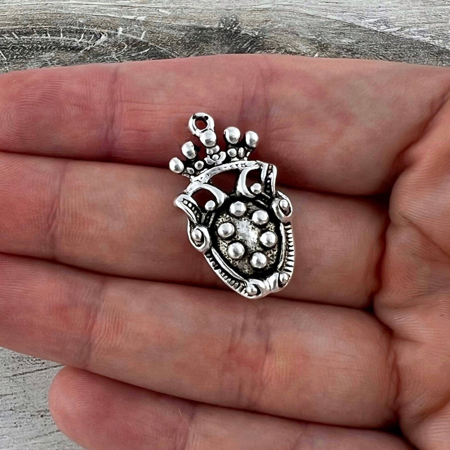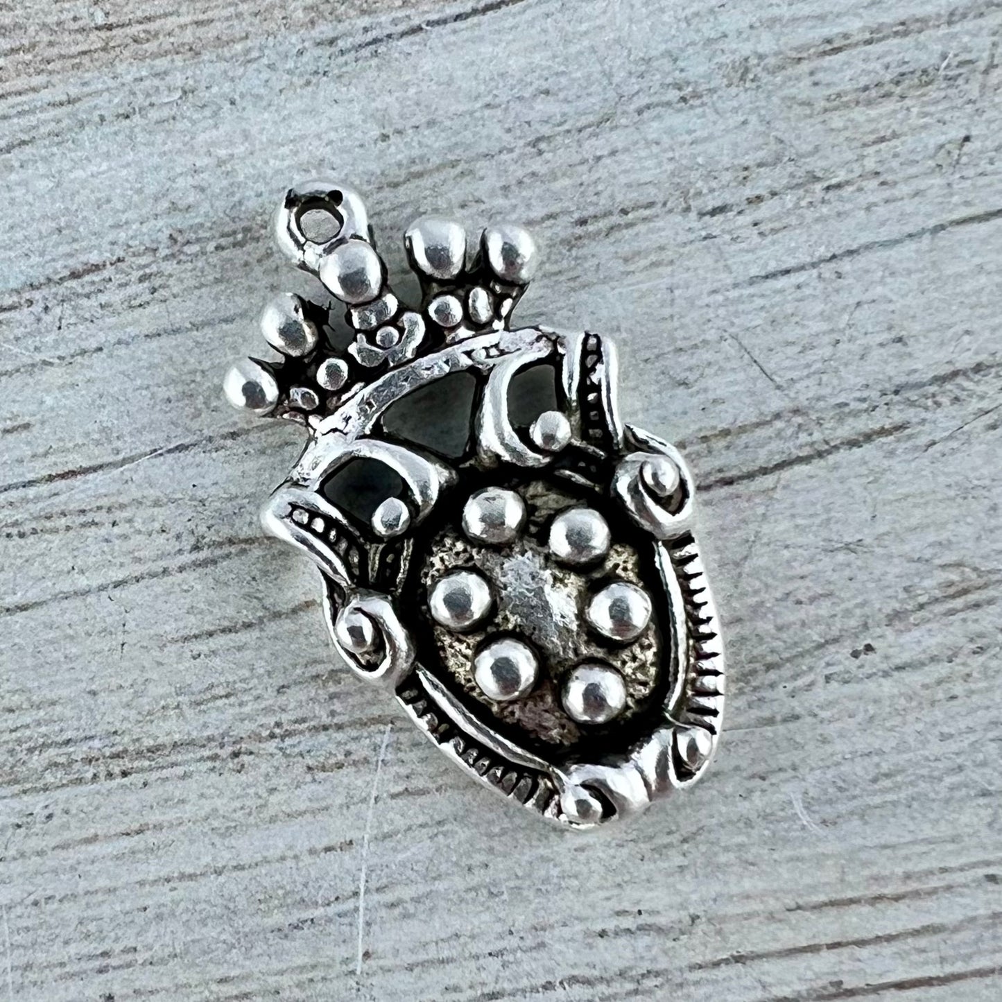 Old World Dotted Shield Medallion Charm, Antiqued Silver Crown Pendant, Jewelry Findings, SL-6300