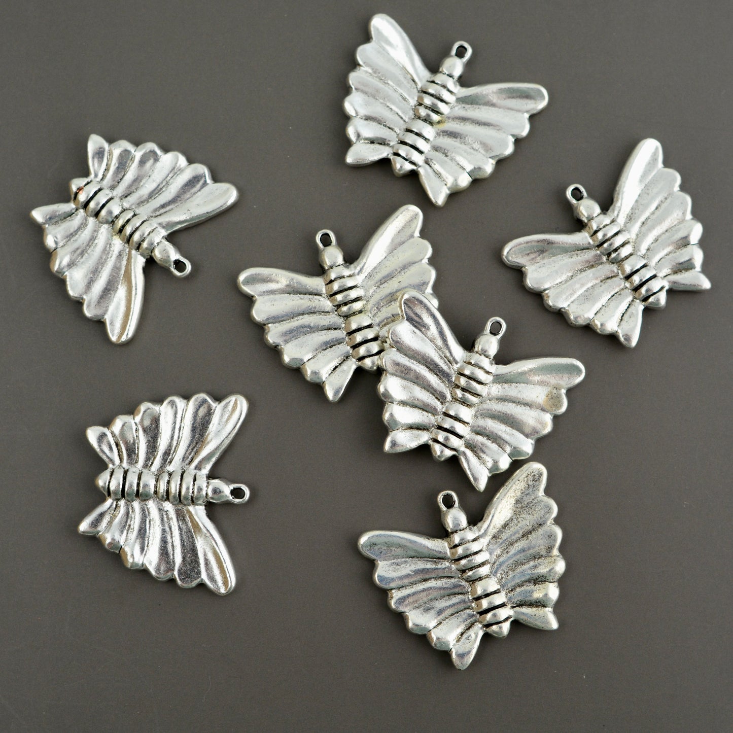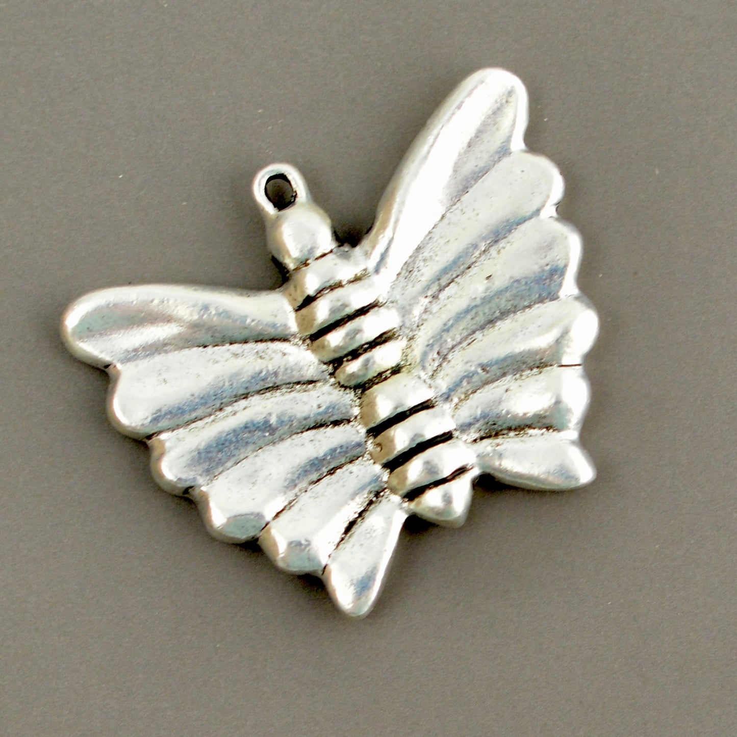 Large Textured Butterfly Pendant, Silver Artisan Jewelry Making Charm, Components Supplies, SL-6369